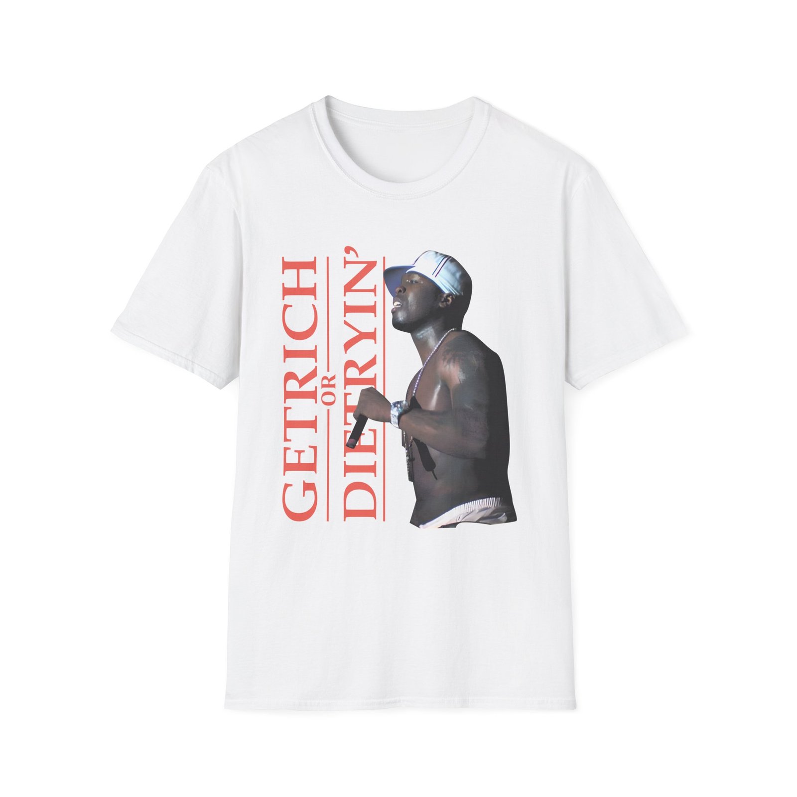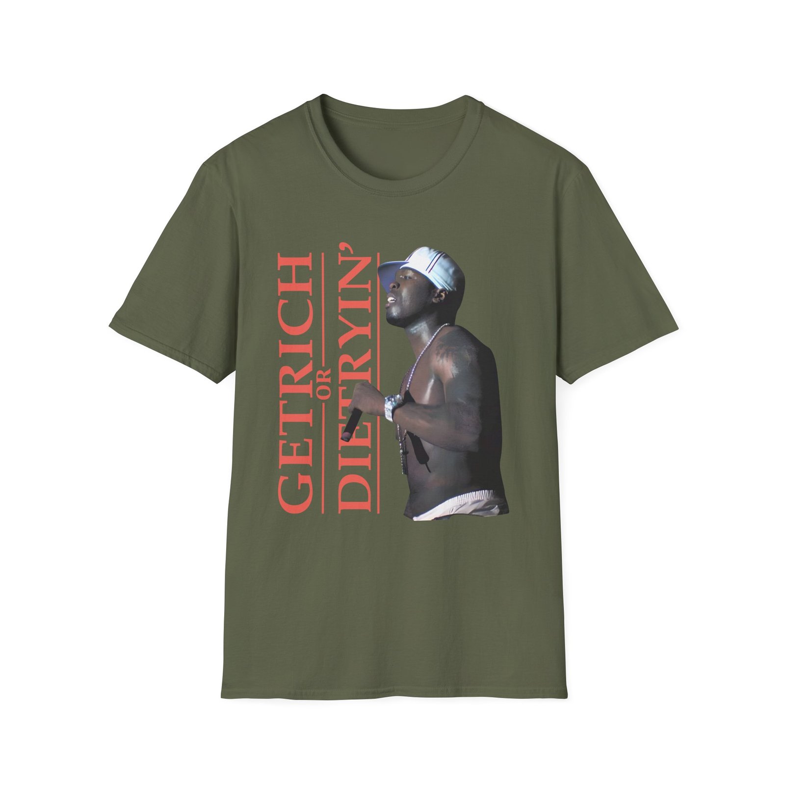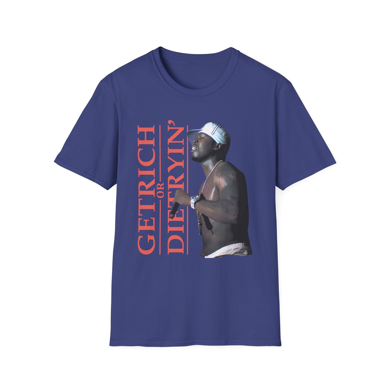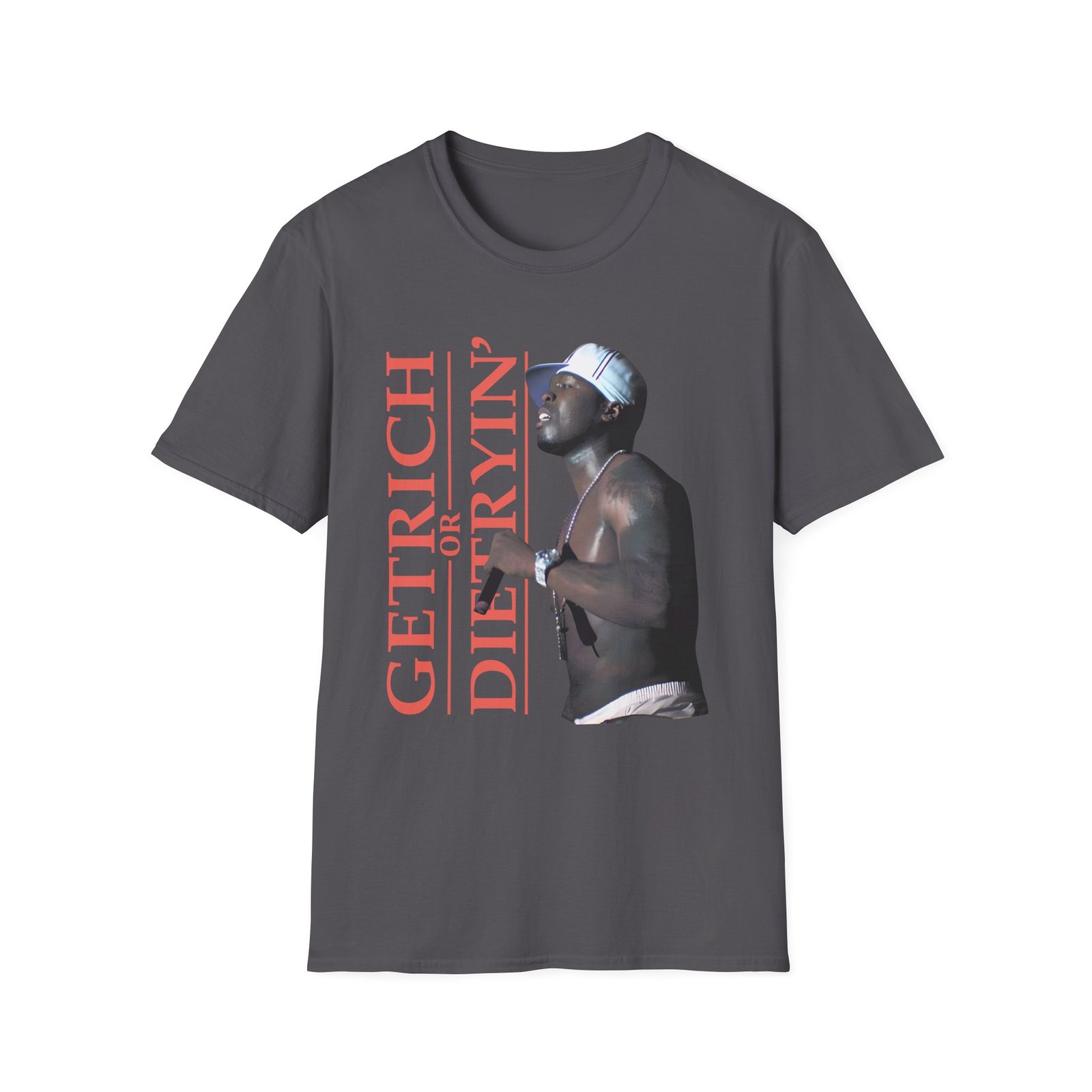 The 50 Cent Get Rich Logo unisex soft-style t-shirt puts a new spin on casual comfort. Made from very soft materials, this tee is 100% cotton for solid colors. Heather colors and sports grey include polyester. The shoulders have twill tape for improved durability. There are no side seams. The collar is made with ribbed knitting to prevent curling damage.
