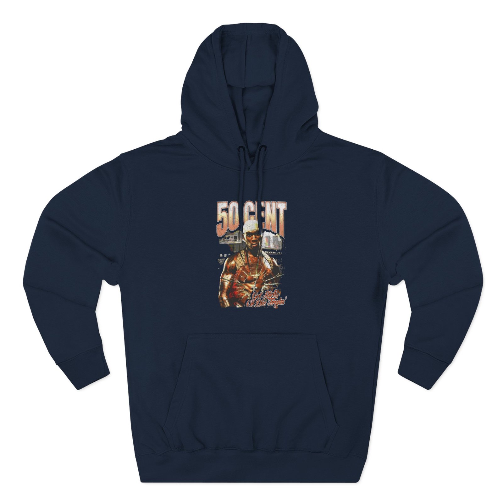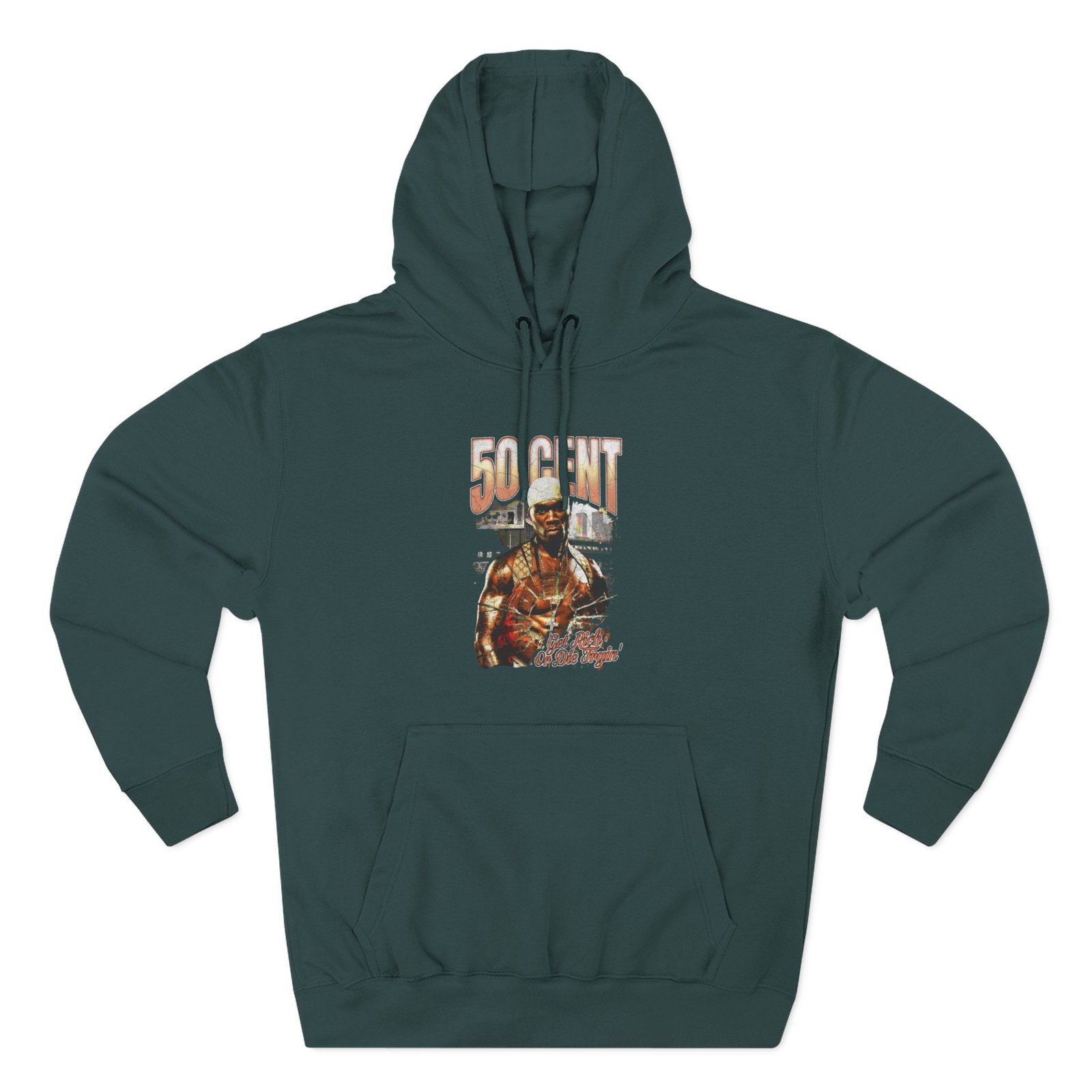 Beat the cold with this 50 Cent Get Rich or Die Tryin premium pullover hoodie that’s just the right layer of warm and cozy. Made with three-panel fleece lining, this pullover is double stitched for durability and roomy. Pick one in your favorite color to match your style.