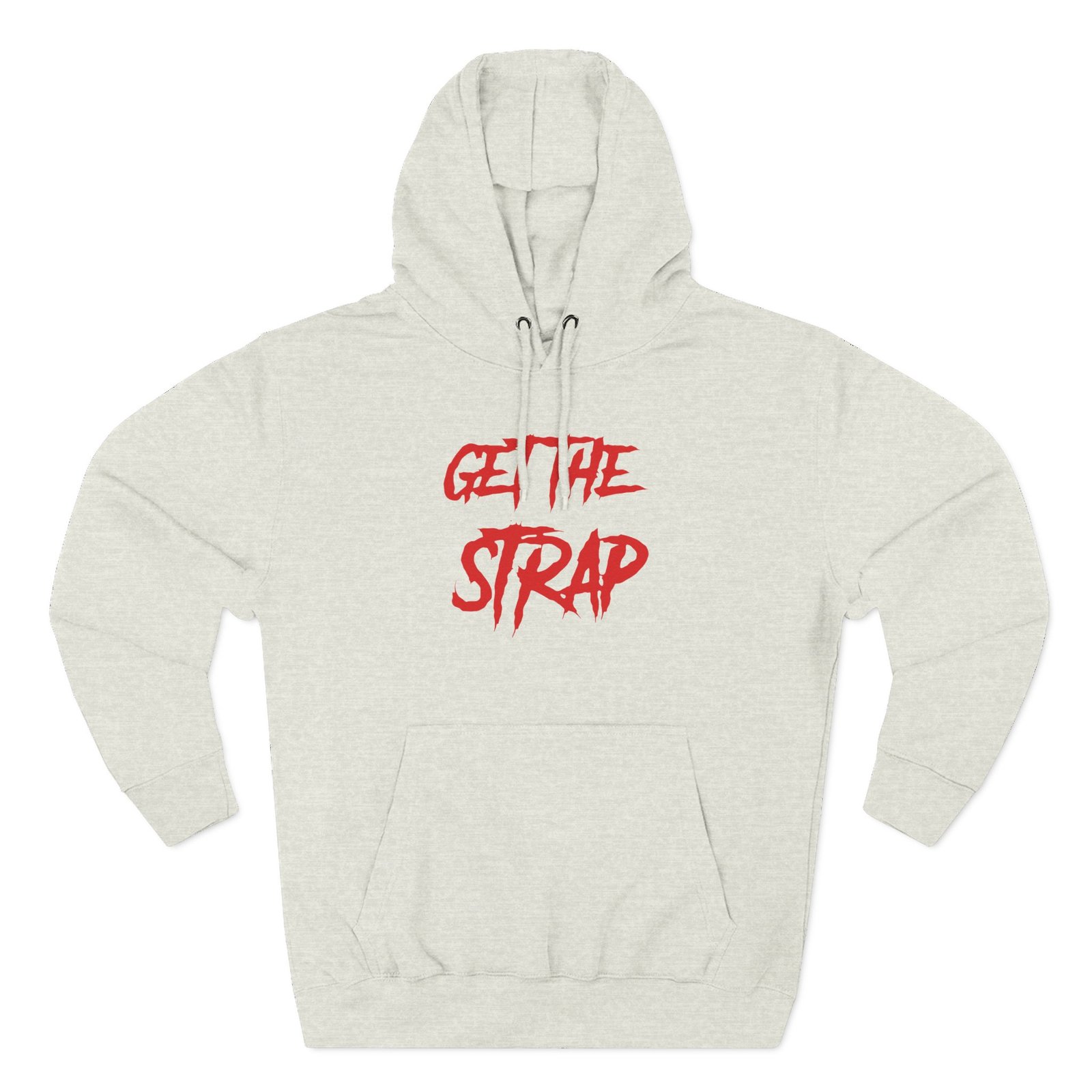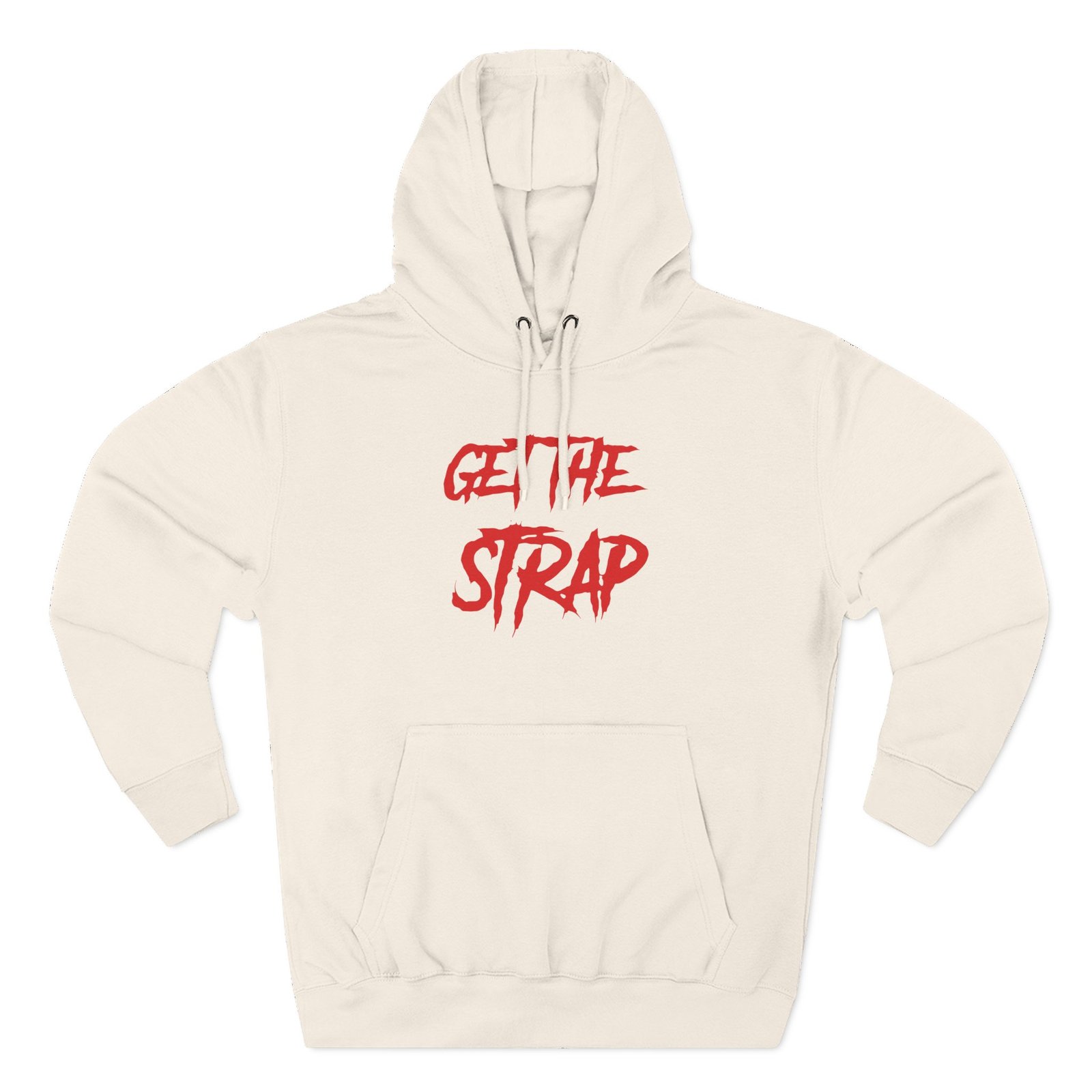 Beat the cold with this 50 Cent Get the Strap premium pullover hoodie that’s just the right layer of warm and cozy. Made with three-panel fleece lining, this pullover is double stitched for durability and roomy. Pick one in your favorite color to match your style.
