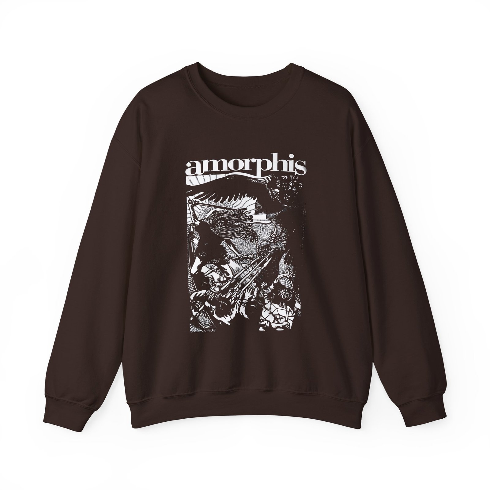 Ideal for any situation, a Amorphis Kalevala unisex heavy blend crewneck sweatshirt is pure comfort. These garments are made from polyester and cotton. This combination helps designs come out looking fresh and beautiful. The collar is ribbed knit, so it retains its shape even after washing. There are no itchy side seams on these sweaters.