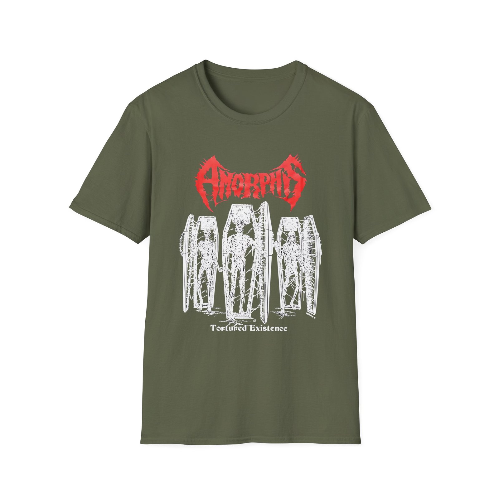 The Amorphis Tortured Existence unisex soft-style t-shirt puts a new spin on casual comfort. Made from very soft materials, this tee is 100% cotton for solid colors. Heather colors and sports grey include polyester. The shoulders have twill tape for improved durability. There are no side seams. The collar is made with ribbed knitting to prevent curling damage.
