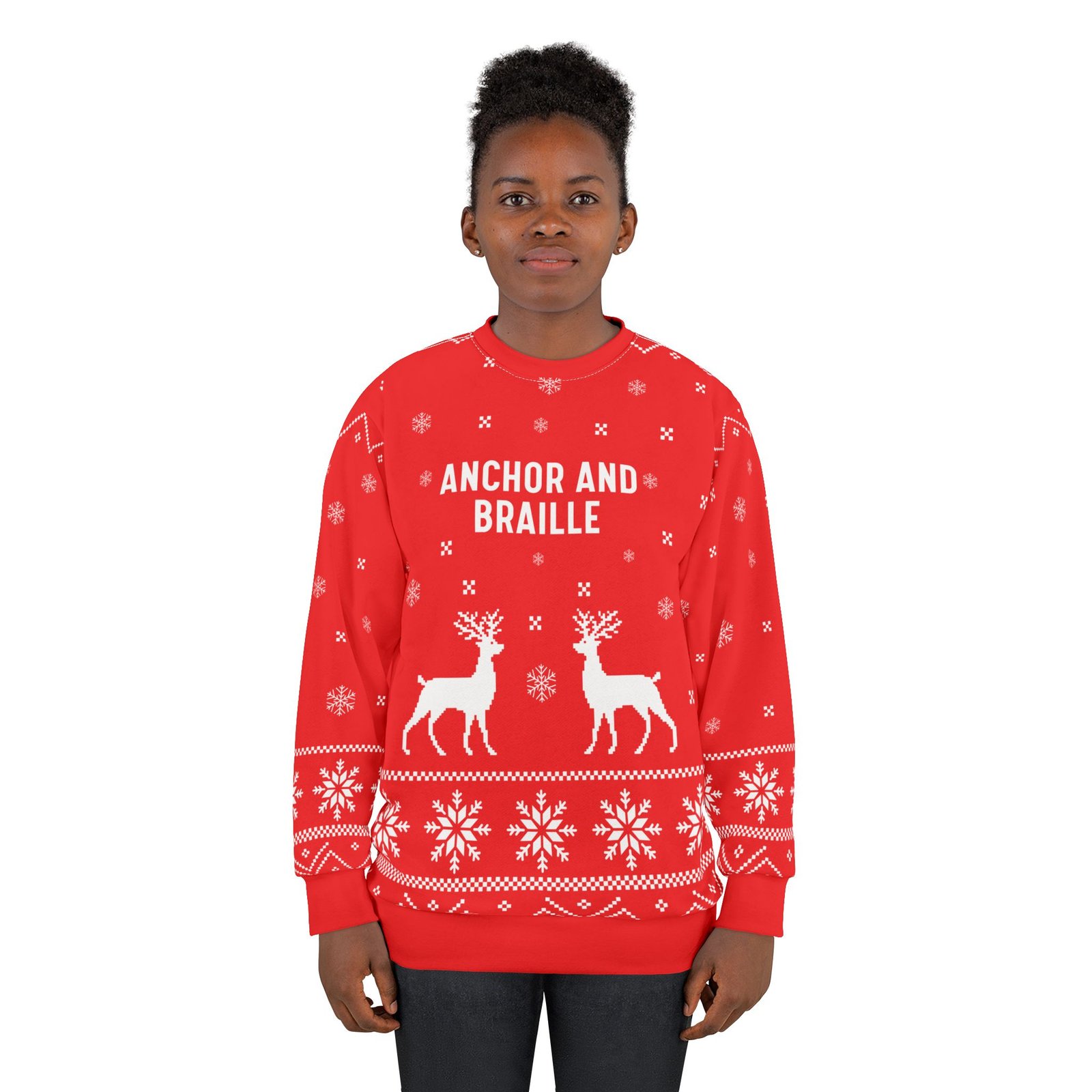 This all over print Anchor and Braille crewneck sweatshirt is the perfect example of cool. With quality all-over printing capabilities, you won’t be worried about white lines at the seams. This fleece is custom cut and sewn, featuring a crew neck and set-in sleeves to keep you warm.