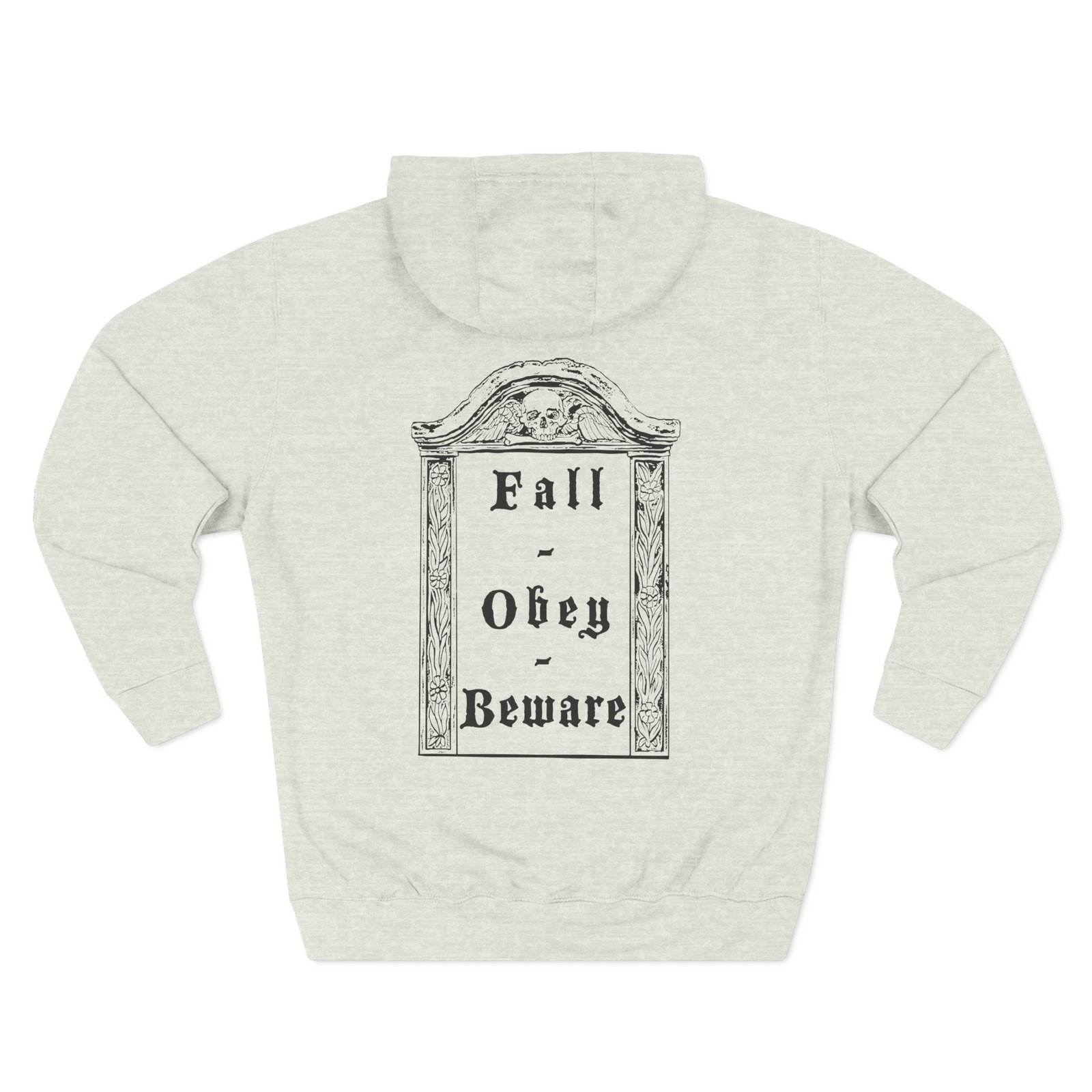 Beat the cold with this Bewitcher Fall. Obey. Beware. premium pullover hoodie that’s just the right layer of warm and cozy. Made with three-panel fleece lining, this pullover is double stitched for durability and roomy. Pick one in your favorite color to match your style.