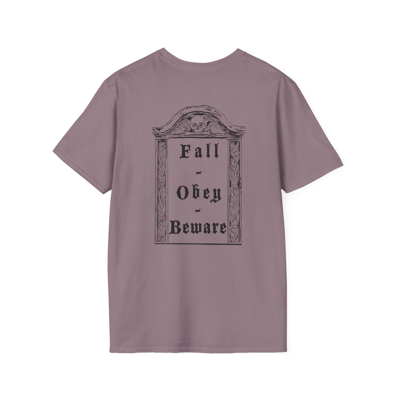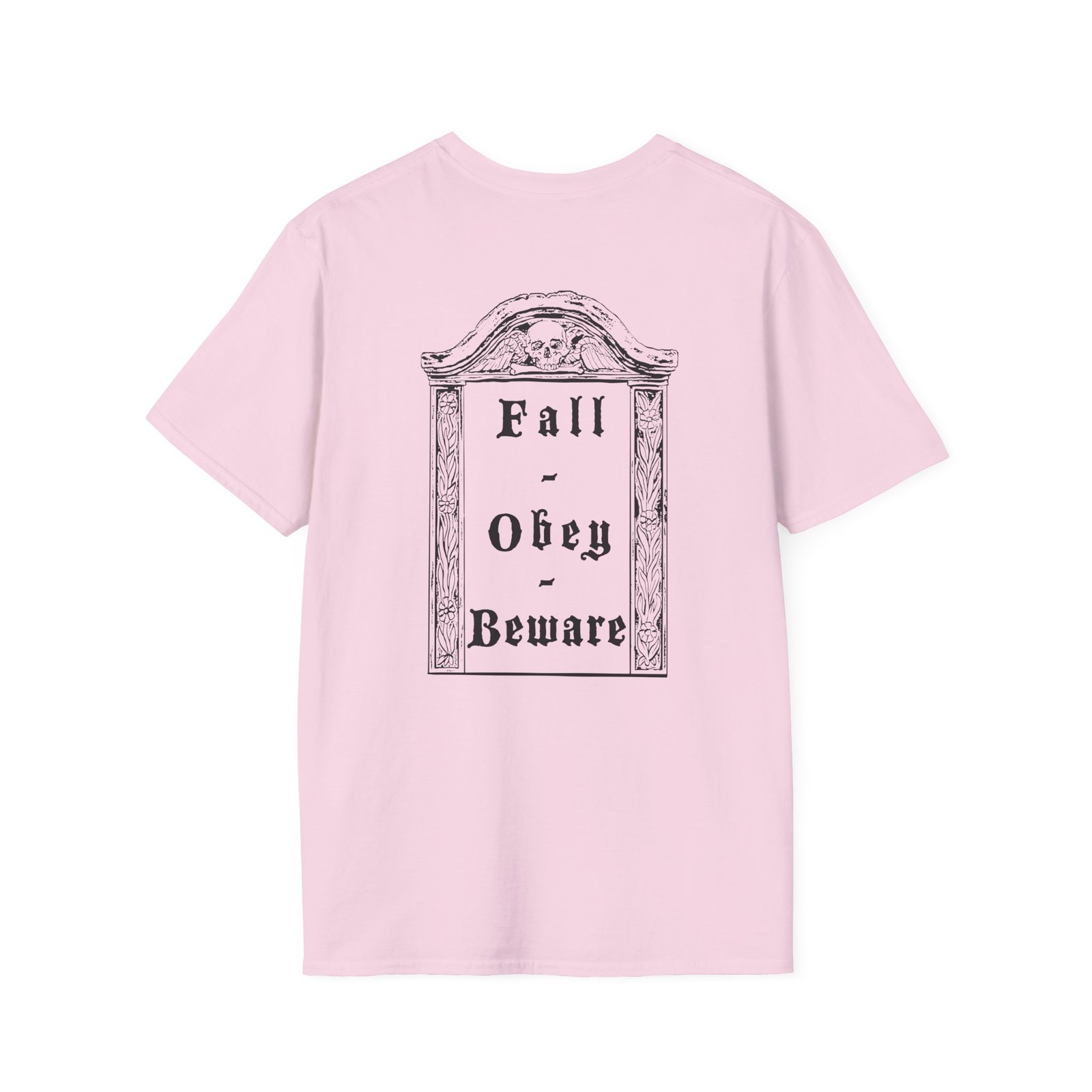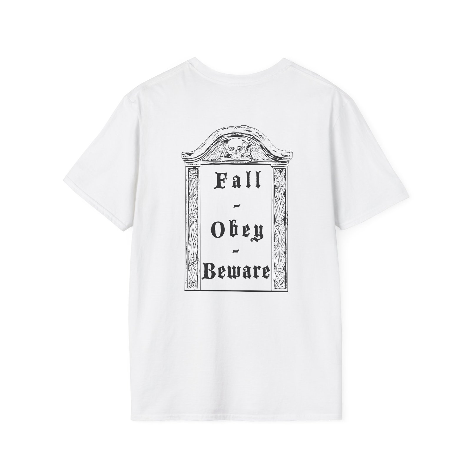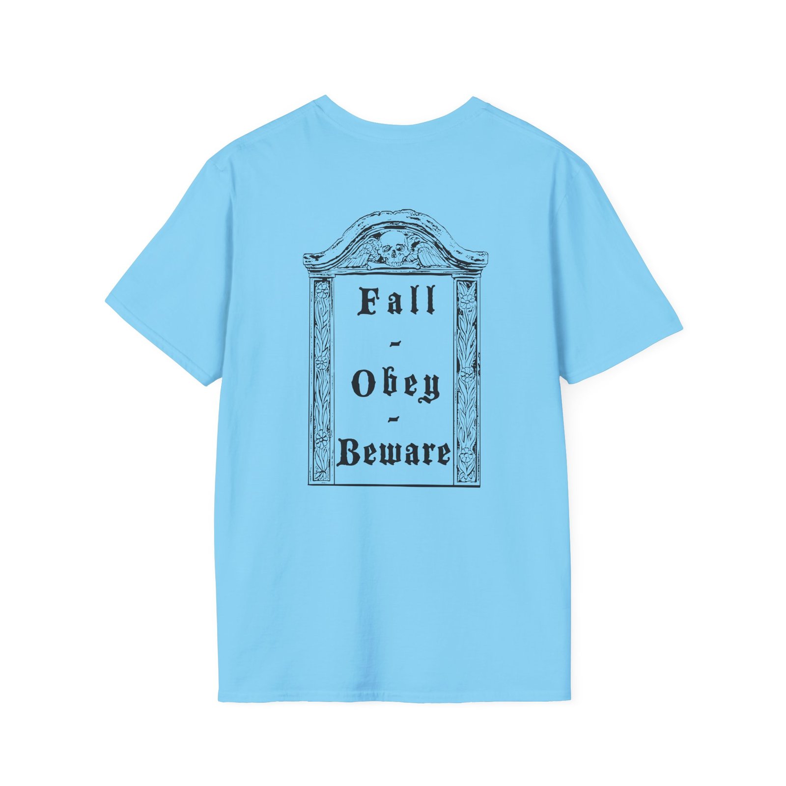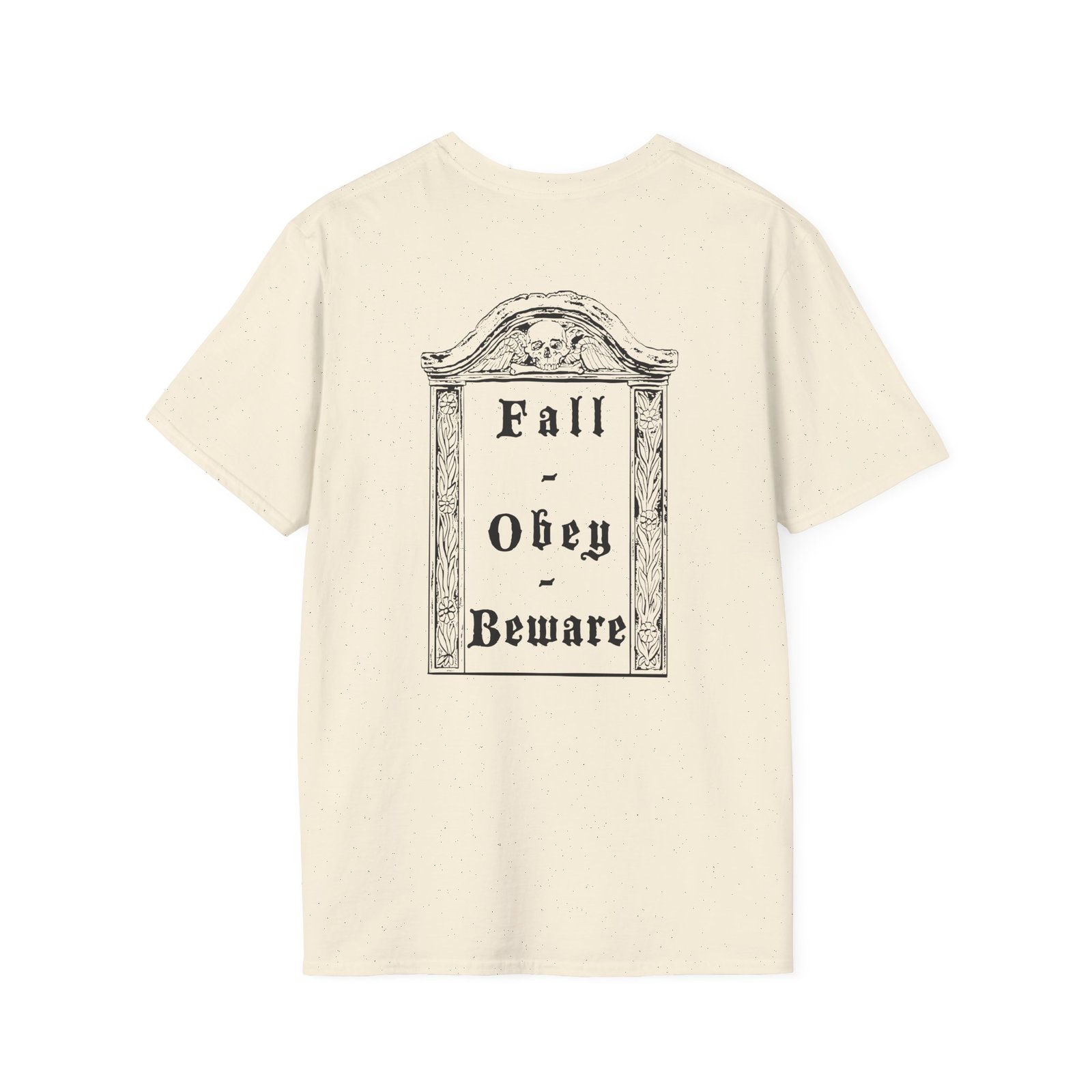 The Bewitcher Fall. Obey. Beware. unisex soft-style t-shirt puts a new spin on casual comfort. Made from very soft materials, this tee is 100% cotton for solid colors. Heather colors and sports grey include polyester. The shoulders have twill tape for improved durability. There are no side seams. The collar is made with ribbed knitting to prevent curling damage.