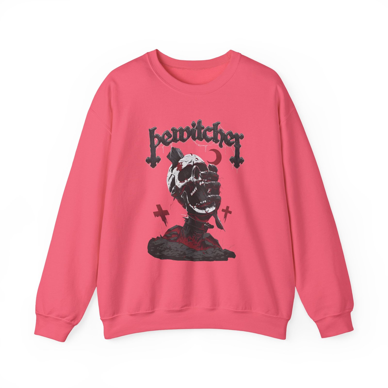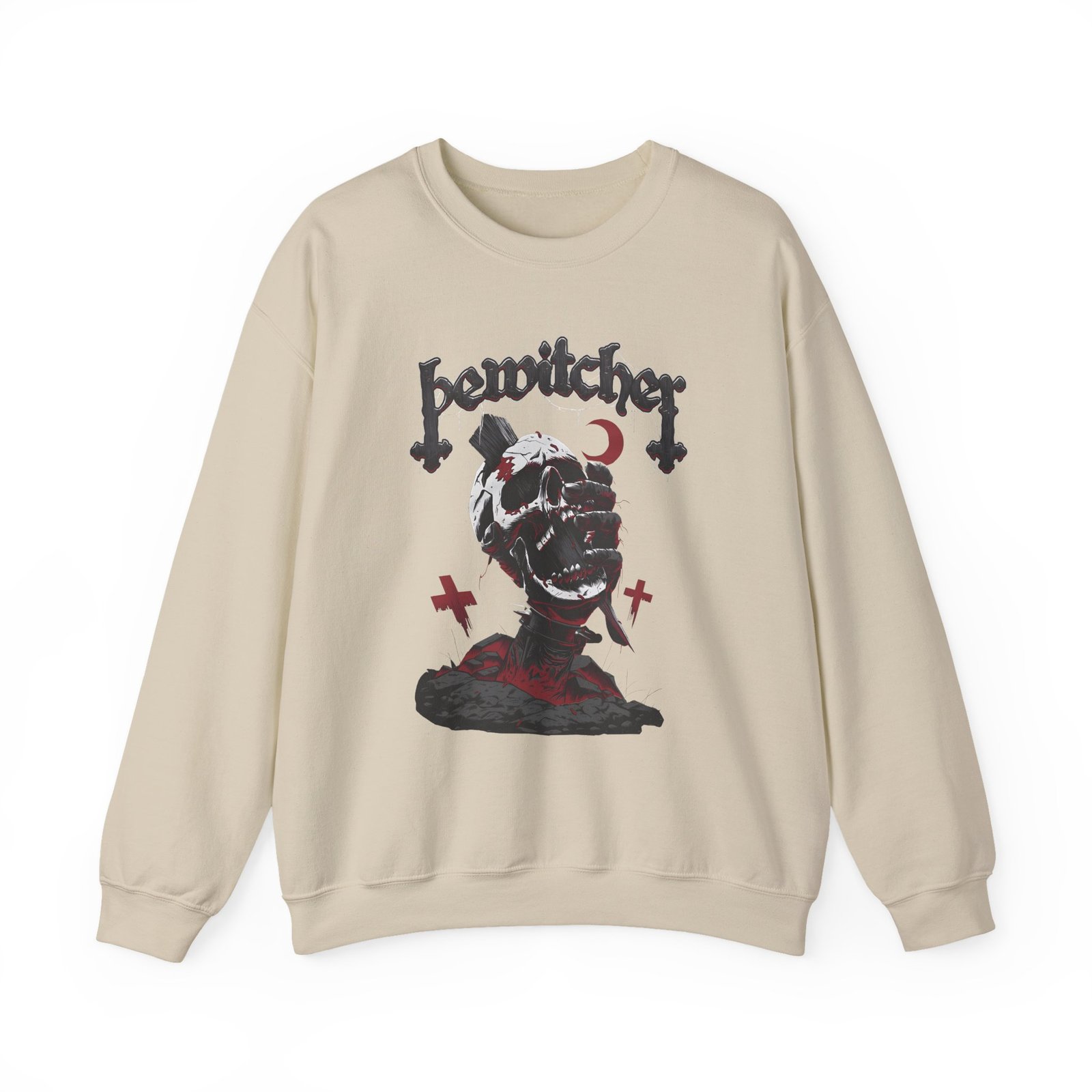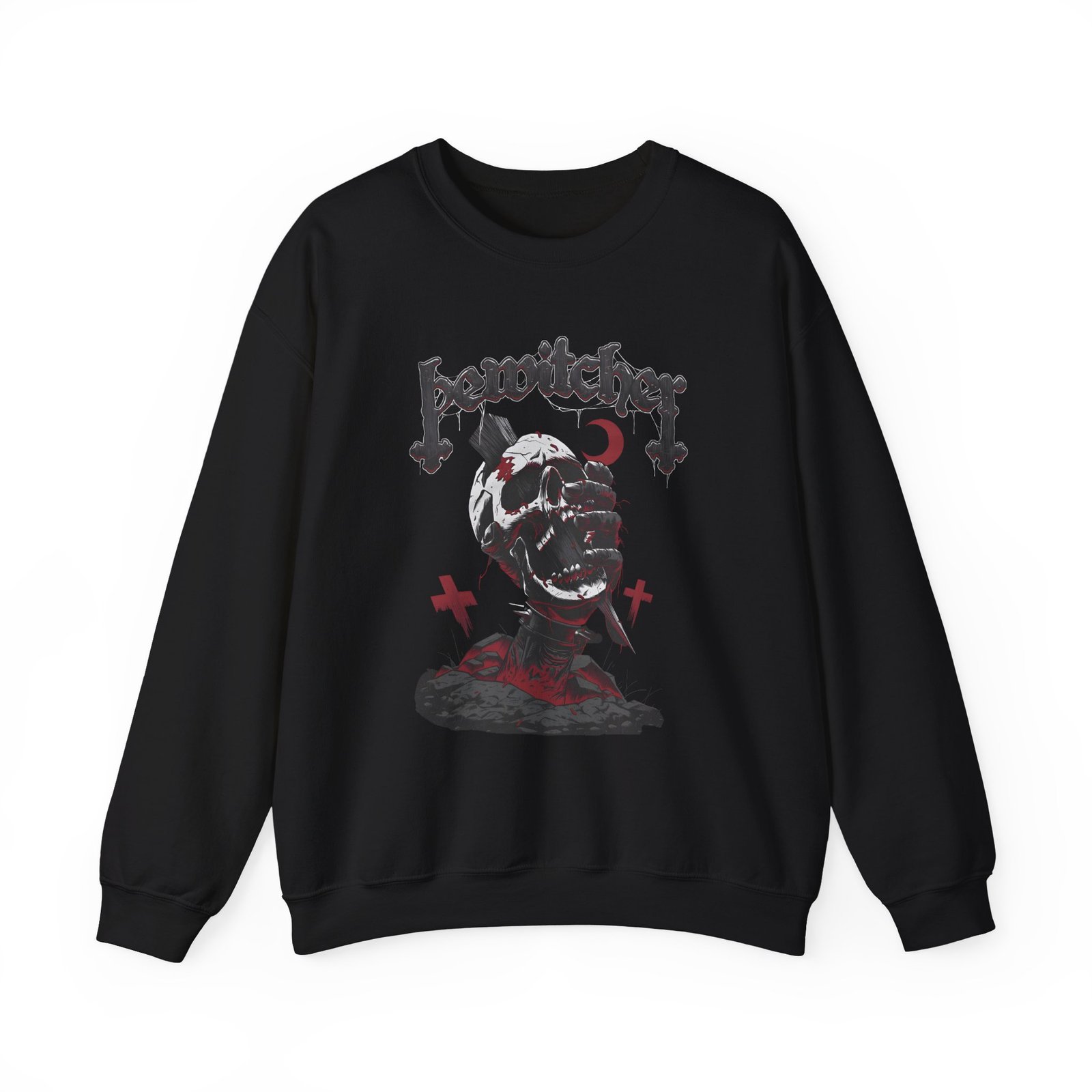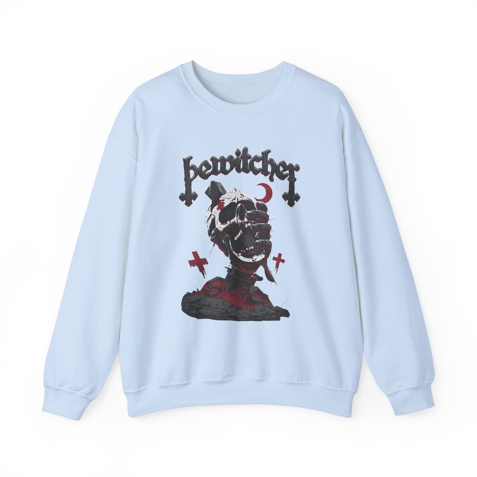 Ideal for any situation, a Bewitcher Skull unisex heavy blend crewneck sweatshirt is pure comfort. These garments are made from polyester and cotton. This combination helps designs come out looking fresh and beautiful. The collar is ribbed knit, so it retains its shape even after washing. There are no itchy side seams on these sweaters.