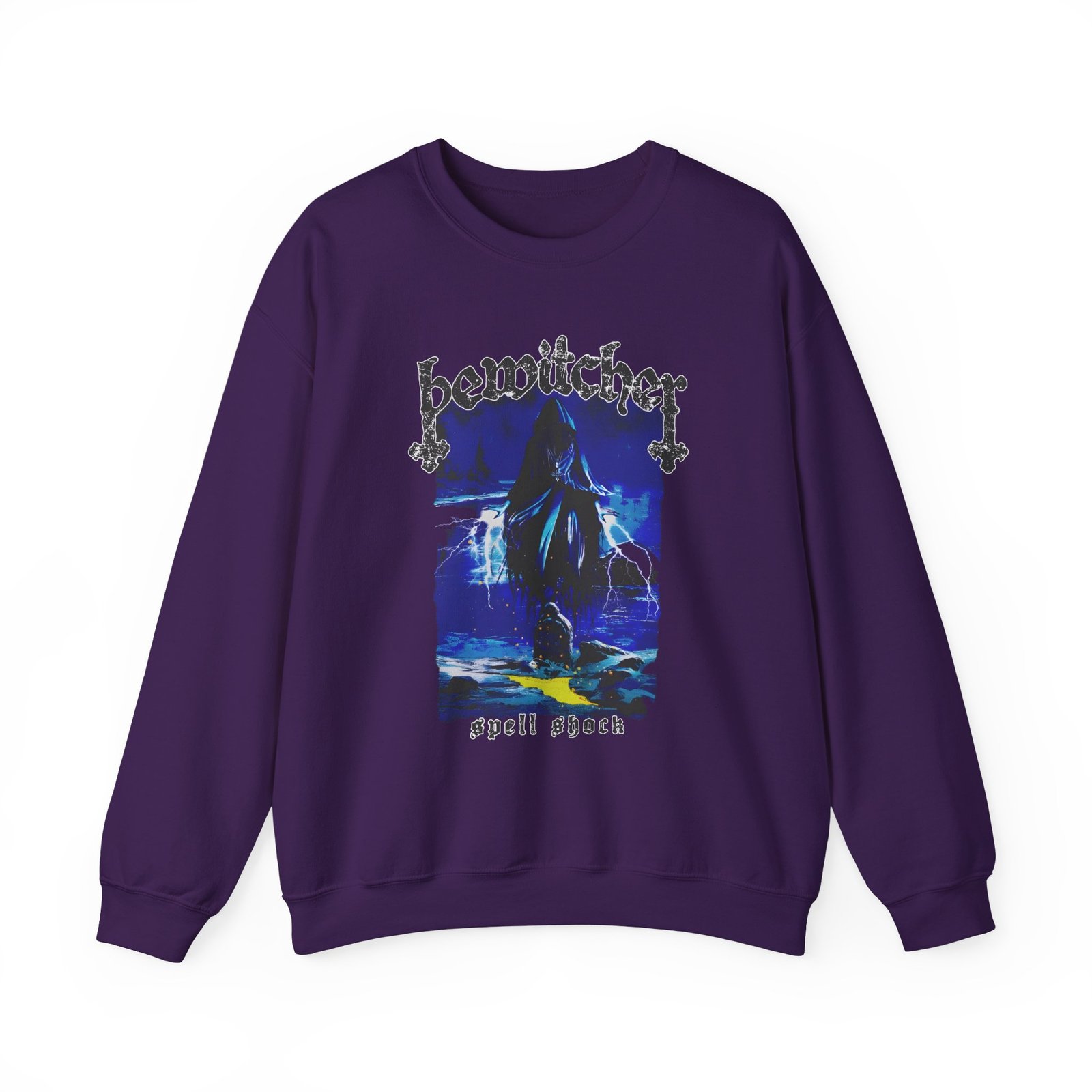Ideal for any situation, a Bewitcher unisex heavy blend crewneck sweatshirt is pure comfort. These garments are made from polyester and cotton. This combination helps designs come out looking fresh and beautiful. The collar is ribbed knit, so it retains its shape even after washing. There are no itchy side seams on these sweaters.