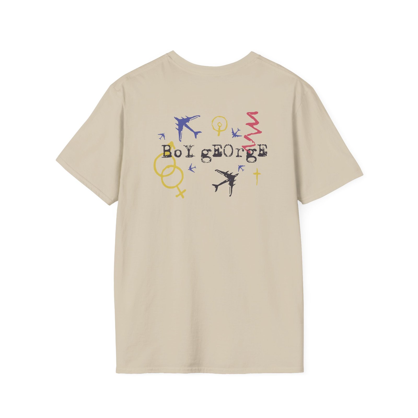 The Boy George Sketchy Symbols unisex soft-style t-shirt puts a new spin on casual comfort. Made from very soft materials, this tee is 100% cotton for solid colors. Heather colors and sports grey include polyester. The shoulders have twill tape for improved durability. There are no side seams. The collar is made with ribbed knitting to prevent curling damage.