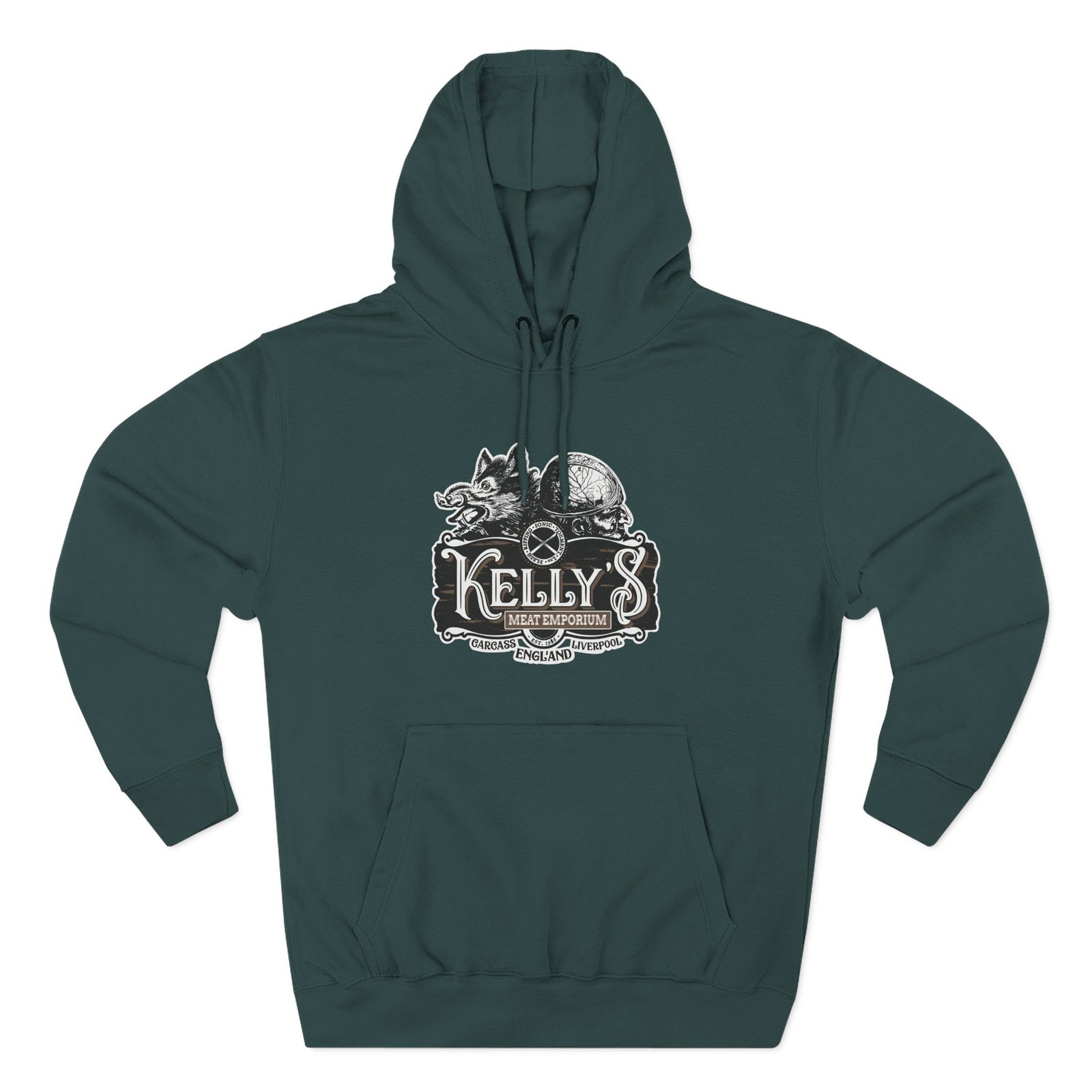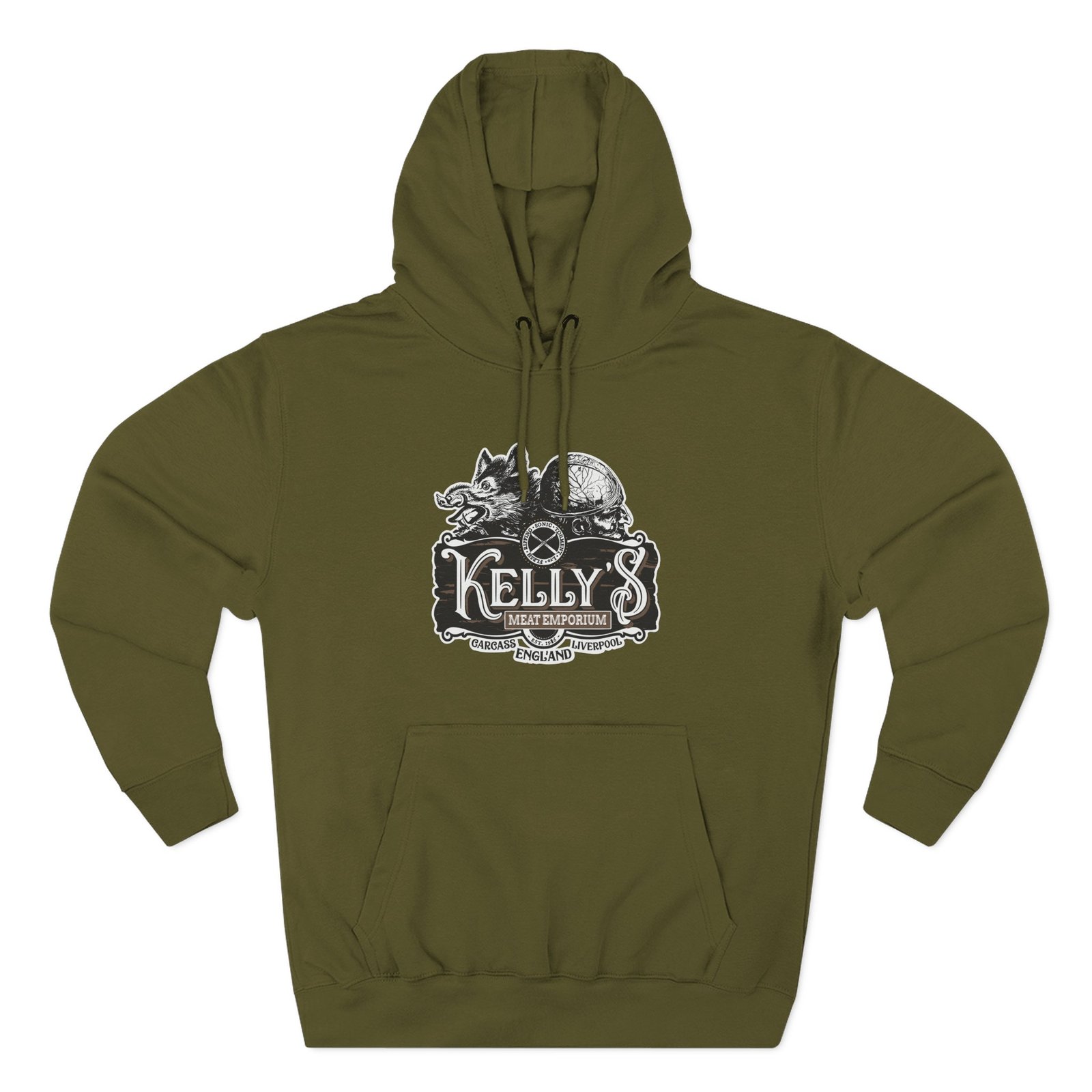 Be the first to review “Carcass Kelly’s Meat Emporium Three-Panel Fleece Hoodie”