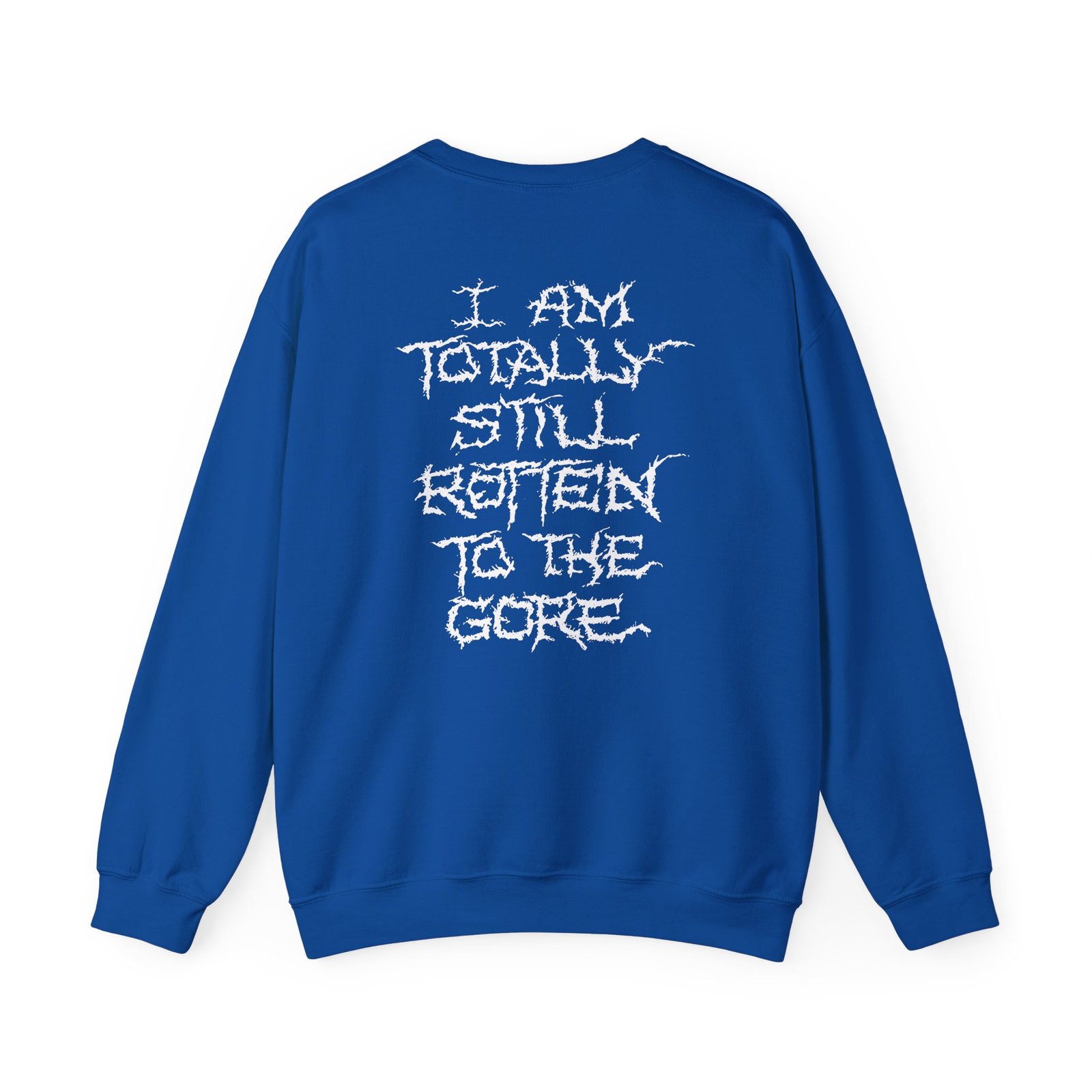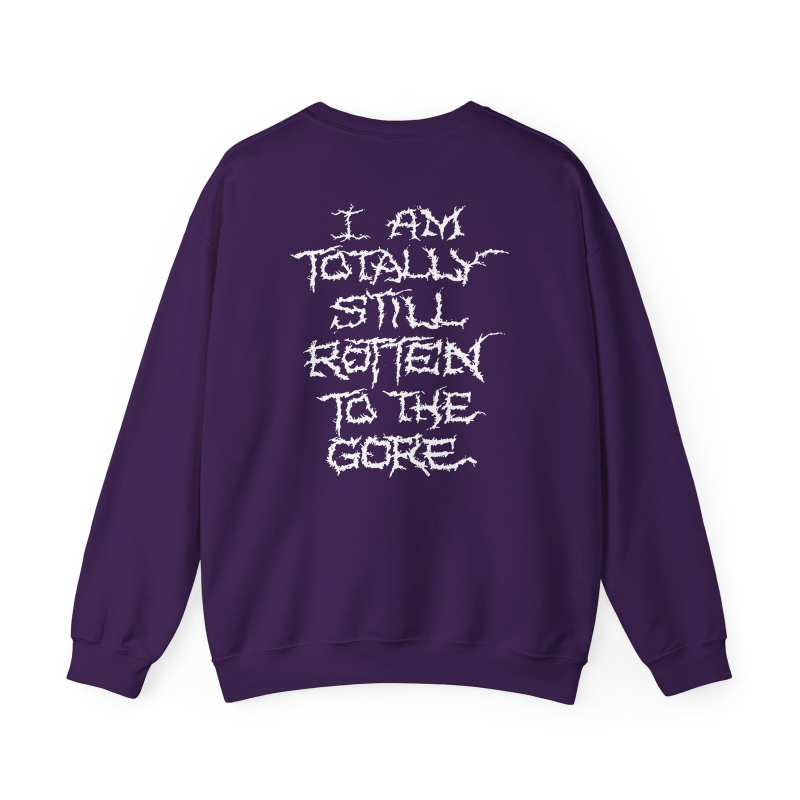 Ideal for any situation, a Carcass Rotten to the Gore unisex heavy blend crewneck sweatshirt is pure comfort. These garments are made from polyester and cotton. This combination helps designs come out looking fresh and beautiful. The collar is ribbed knit, so it retains its shape even after washing. There are no itchy side seams on these sweaters.