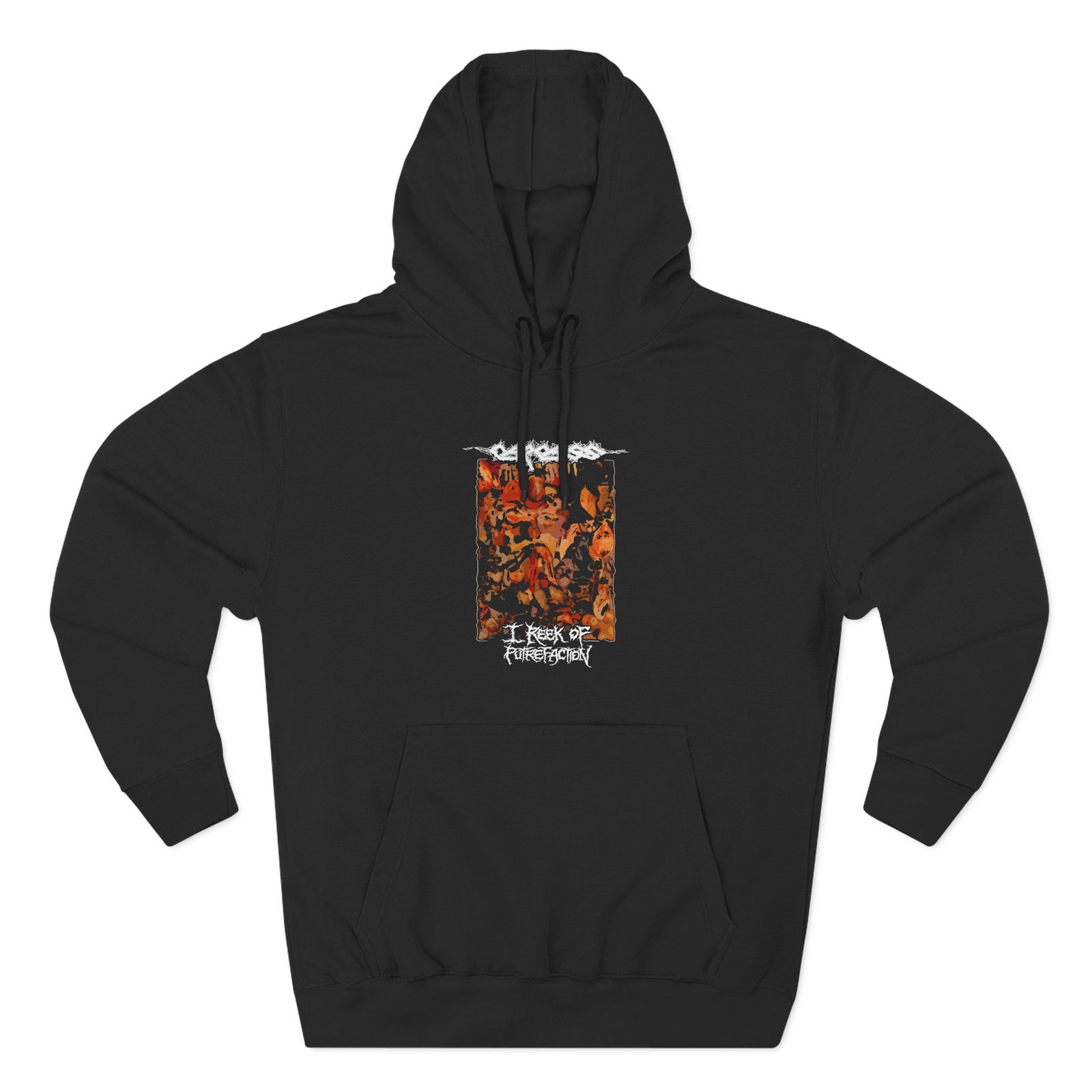 Beat the cold with this Carcass premium pullover hoodie that’s just the right layer of warm and cozy. Made with three-panel fleece lining, this pullover is double stitched for durability and roomy. Pick one in your favorite color to match your style.