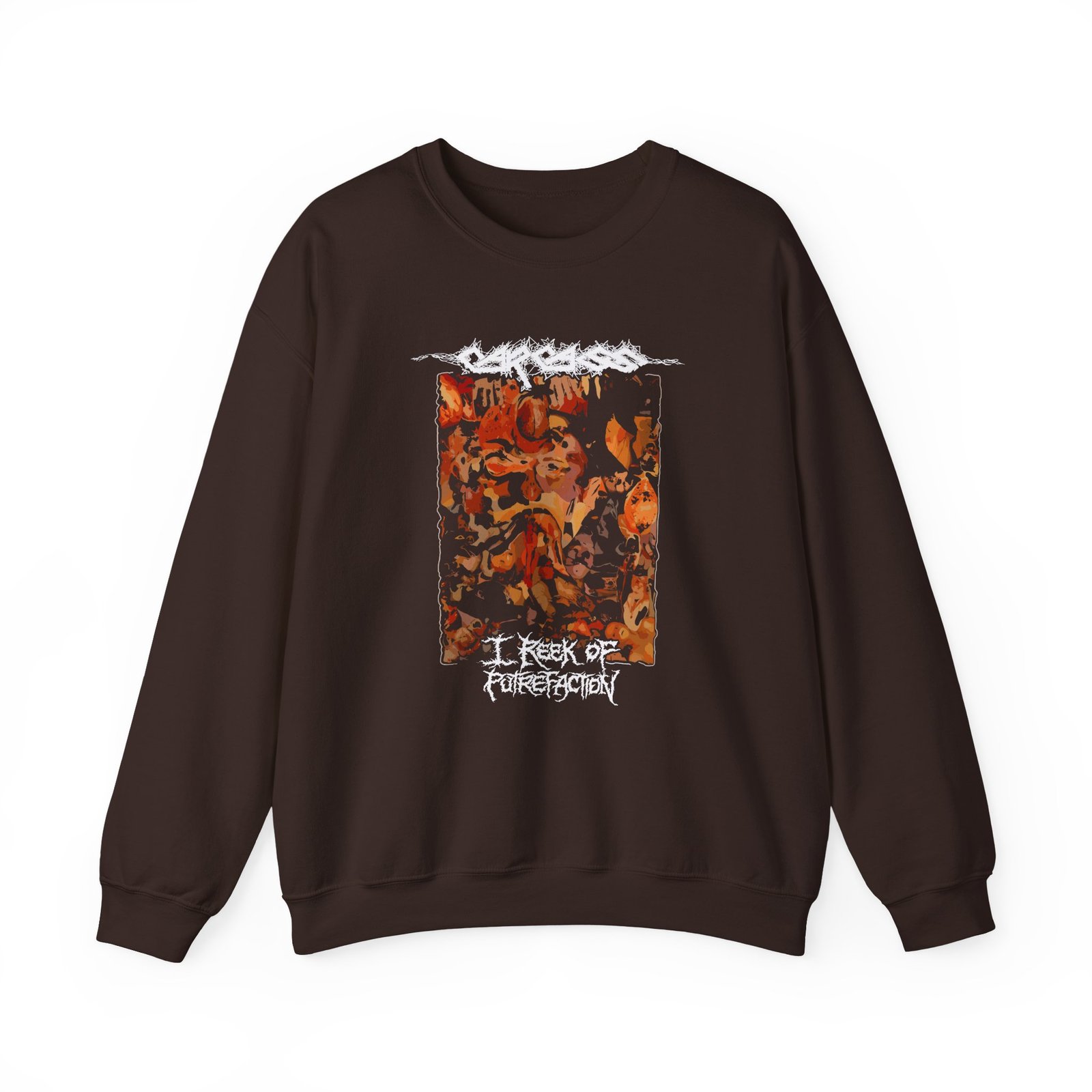 Ideal for any situation, a Carcass unisex heavy blend crewneck sweatshirt is pure comfort. These garments are made from polyester and cotton. This combination helps designs come out looking fresh and beautiful. The collar is ribbed knit, so it retains its shape even after washing. There are no itchy side seams on these sweaters.