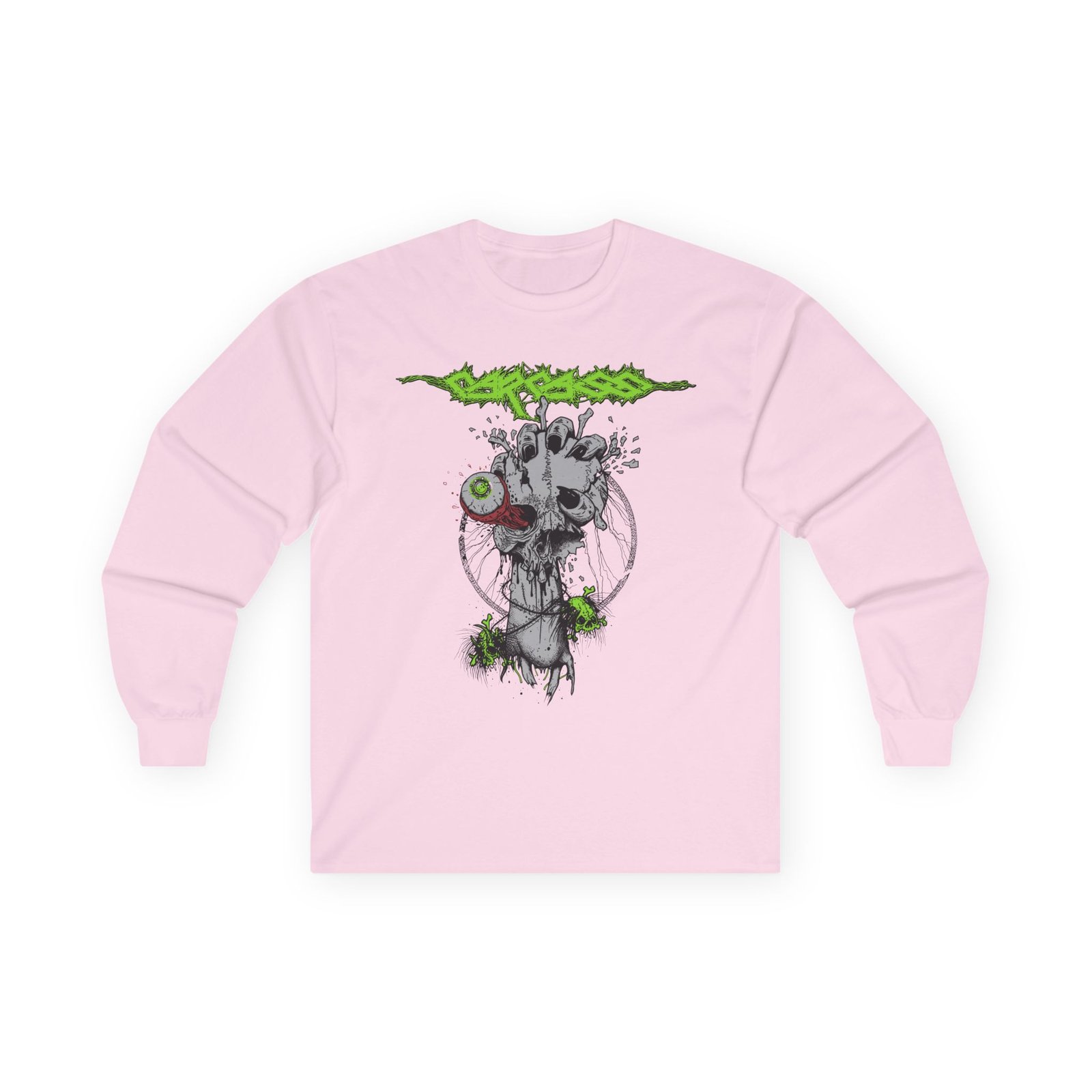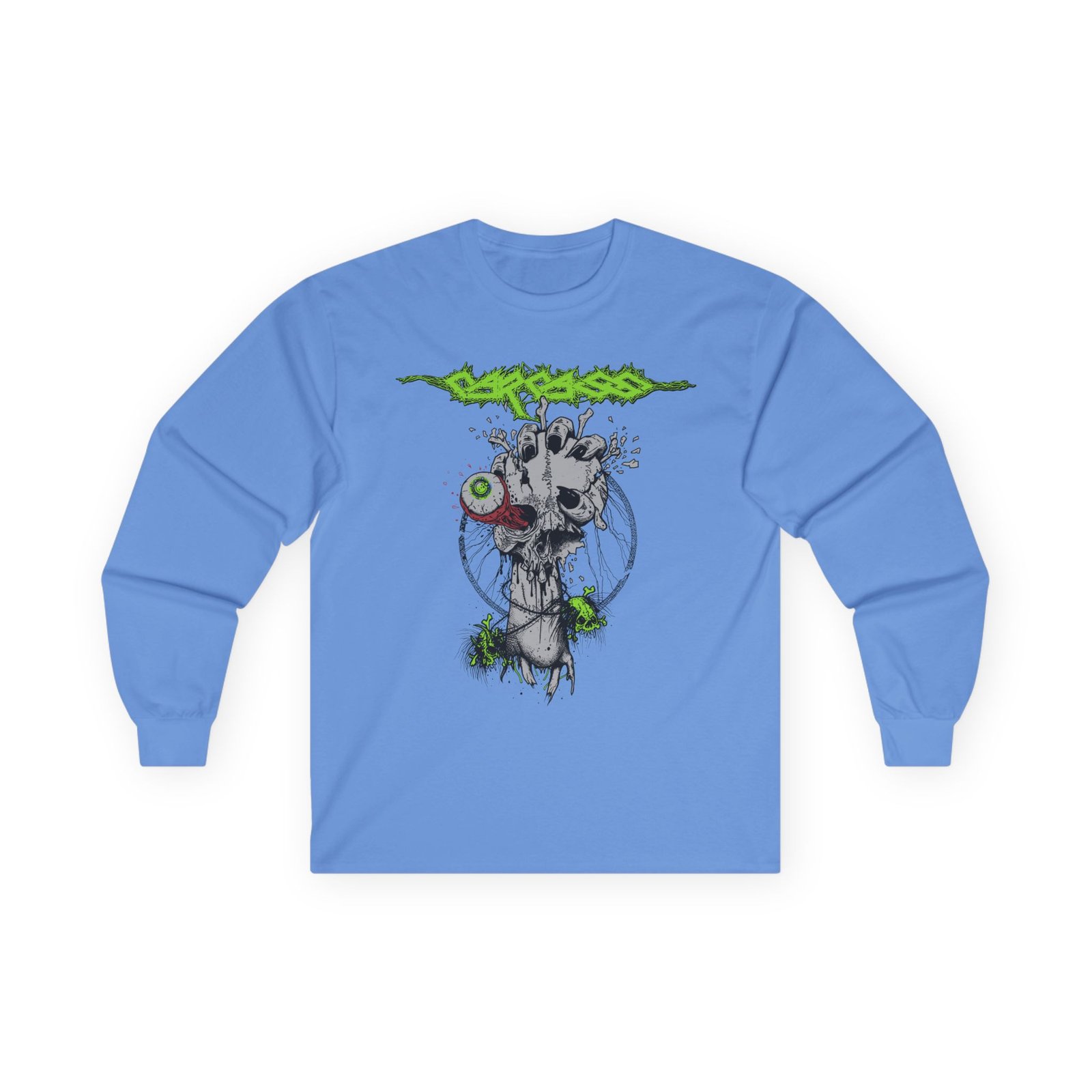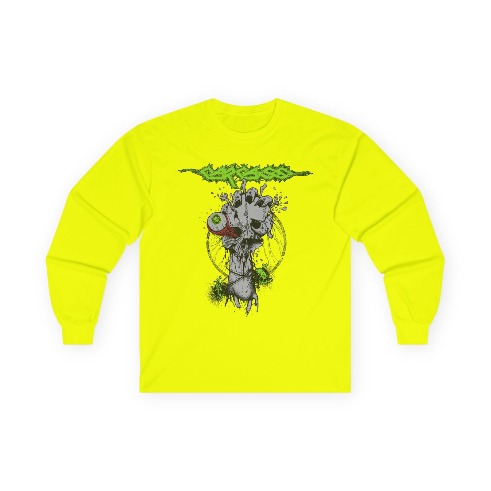 A bit more formal than a standard-issue t-shirt, the Carcass ultra cotton long sleeve tee is a clear comfort winner. The sleeves also act as a nice frame. There are no side seams. The shoulders are taped for improved durability. This makes for a good fitting around the shoulders and neck. The cotton used for these shirts is environmentally friendly.