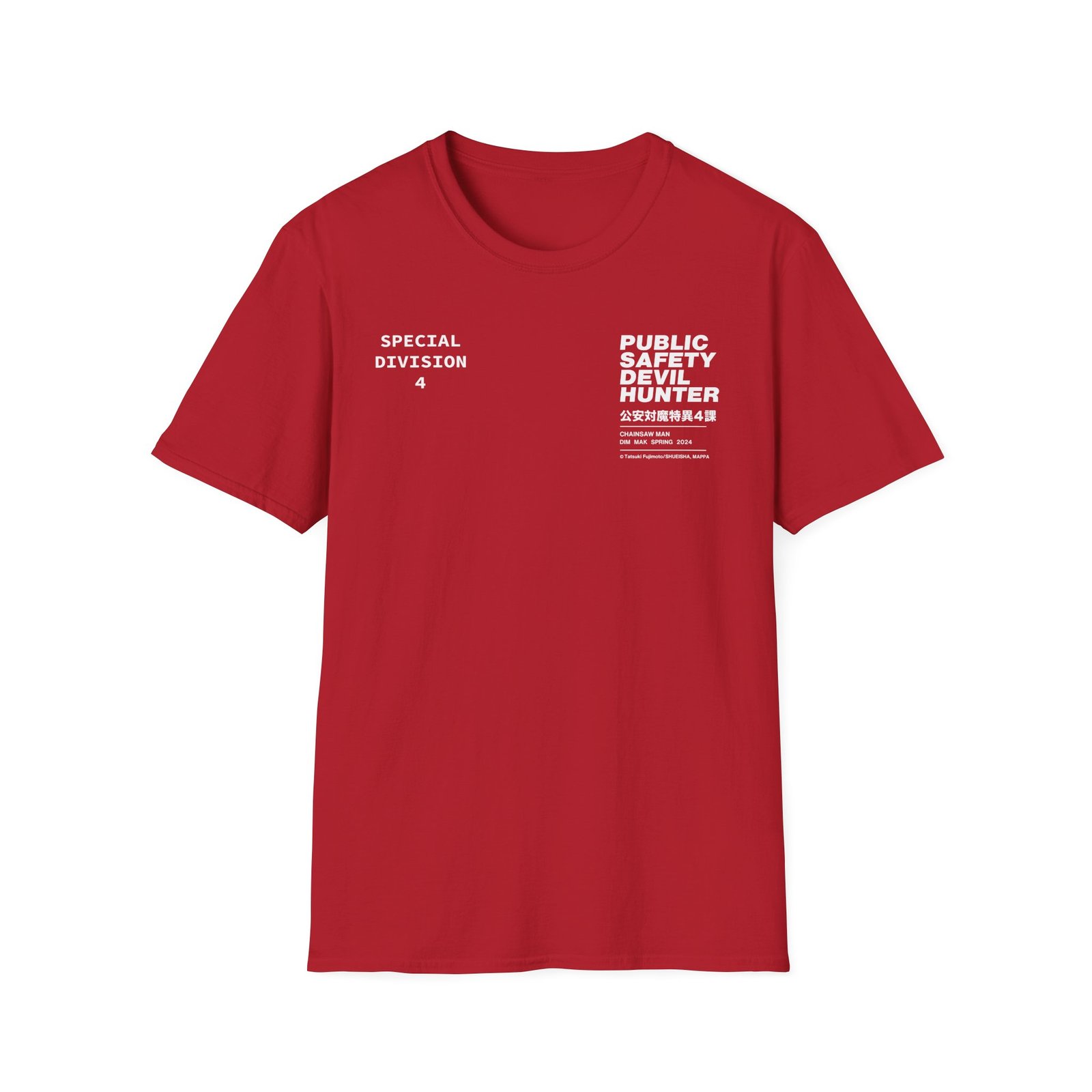 The Chainsaw Man X Dim Mak Public Safety unisex soft-style t-shirt puts a new spin on casual comfort. Made from very soft materials, this tee is 100% cotton for solid colors. Heather colors and sports grey include polyester. The shoulders have twill tape for improved durability. There are no side seams. The collar is made with ribbed knitting to prevent curling damage.