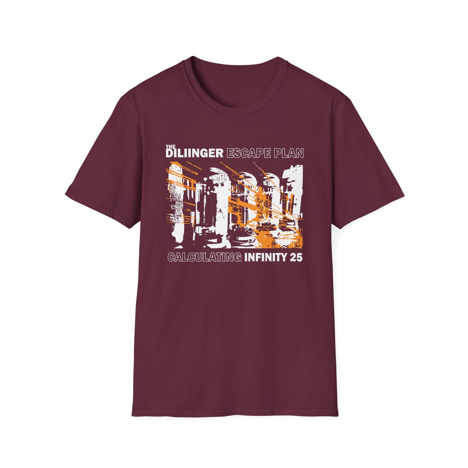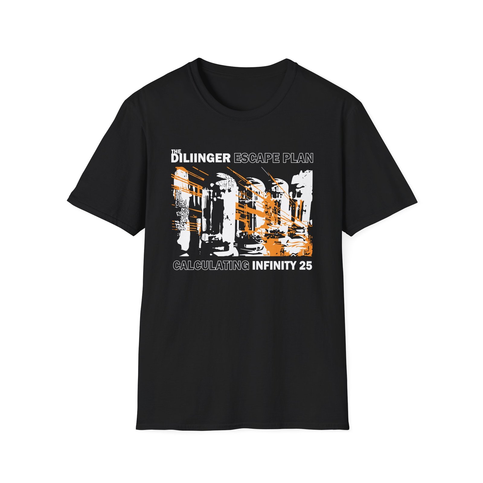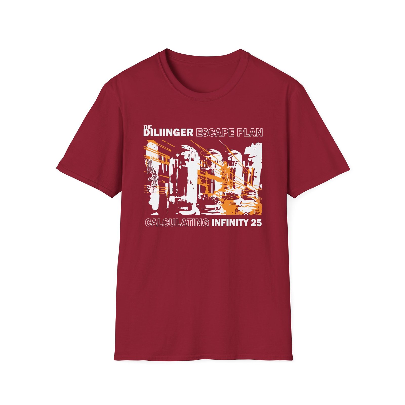 The Dillinger Escape Plan 25th Anniversary unisex soft-style t-shirt puts a new spin on casual comfort. Made from very soft materials, this tee is 100% cotton for solid colors. Heather colors and sports grey include polyester. The shoulders have twill tape for improved durability. There are no side seams. The collar is made with ribbed knitting to prevent curling damage.