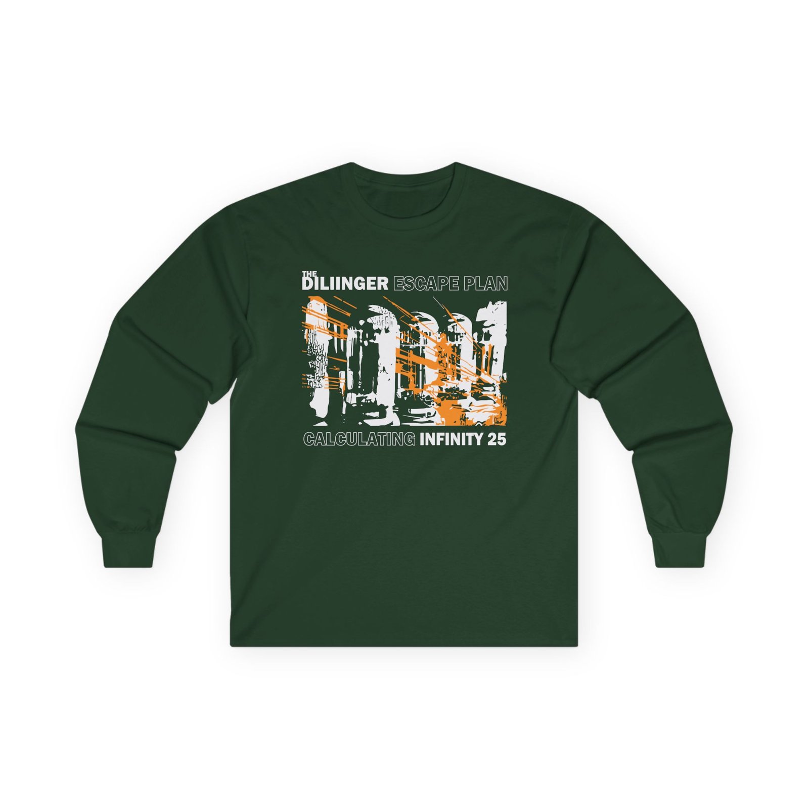 A bit more formal than a standard-issue t-shirt, the Dillinger Escape Plan 25th Anniversary ultra cotton long sleeve tee is a clear comfort winner. The sleeves also act as a nice frame. There are no side seams. The shoulders are taped for improved durability. This makes for a good fitting around the shoulders and neck. The cotton used for these shirts is environmentally friendly.