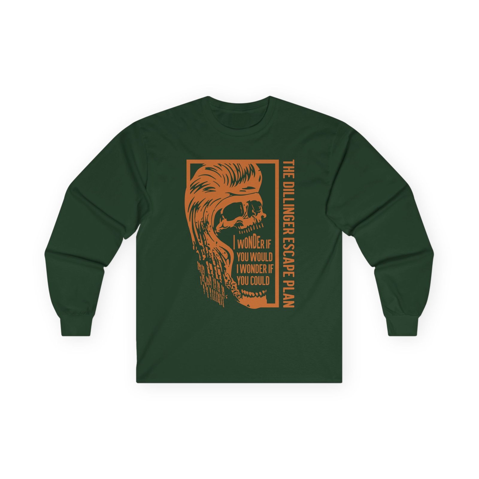 A bit more formal than a standard-issue t-shirt, the Dillinger Escape Plan I Wonder ultra cotton long sleeve tee is a clear comfort winner. The sleeves also act as a nice frame. There are no side seams. The shoulders are taped for improved durability. This makes for a good fitting around the shoulders and neck. The cotton used for these shirts is environmentally friendly.