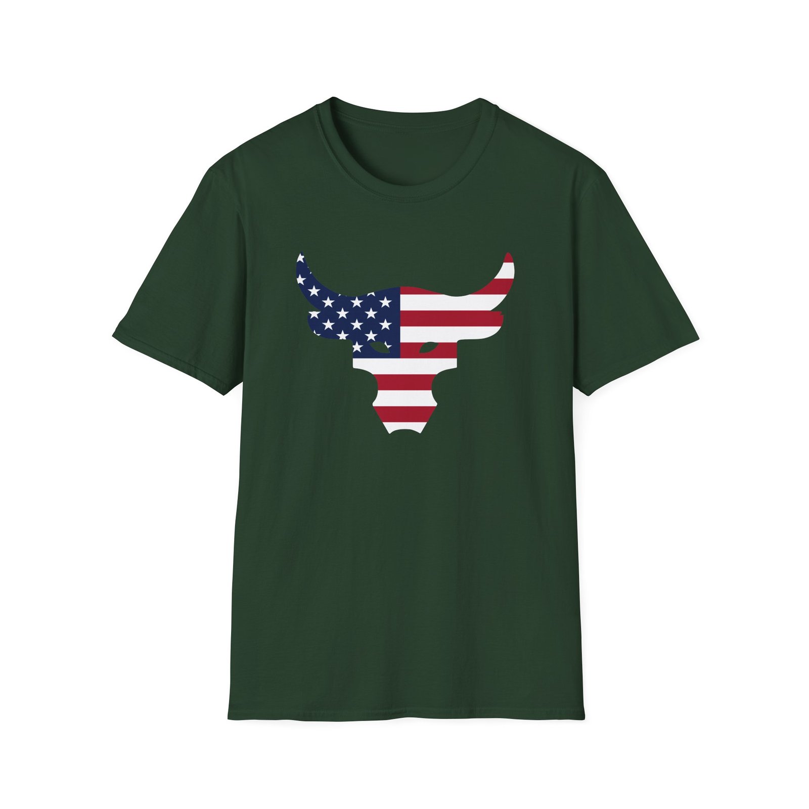 The Dwayne Johnson Project Rock Freedom Bull unisex soft-style t-shirt puts a new spin on casual comfort. Made from very soft materials, this tee is 100% cotton for solid colors. Heather colors and sports grey include polyester. The shoulders have twill tape for improved durability. There are no side seams. The collar is made with ribbed knitting to prevent curling damage.