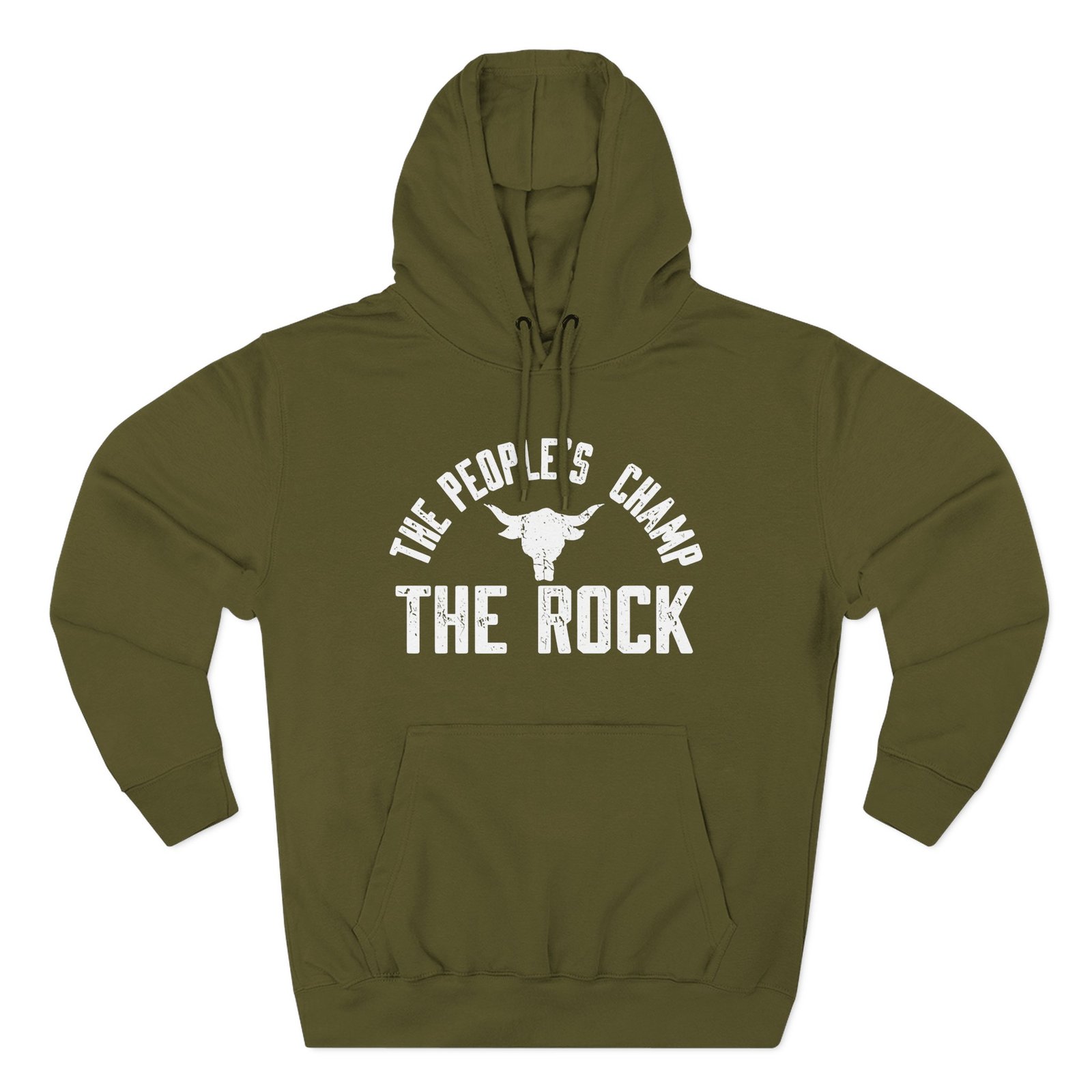 Beat the cold with this Dwayne Johnson The People's Champ premium pullover hoodie that’s just the right layer of warm and cozy. Made with three-panel fleece lining, this pullover is double stitched for durability and roomy. Pick one in your favorite color to match your style.