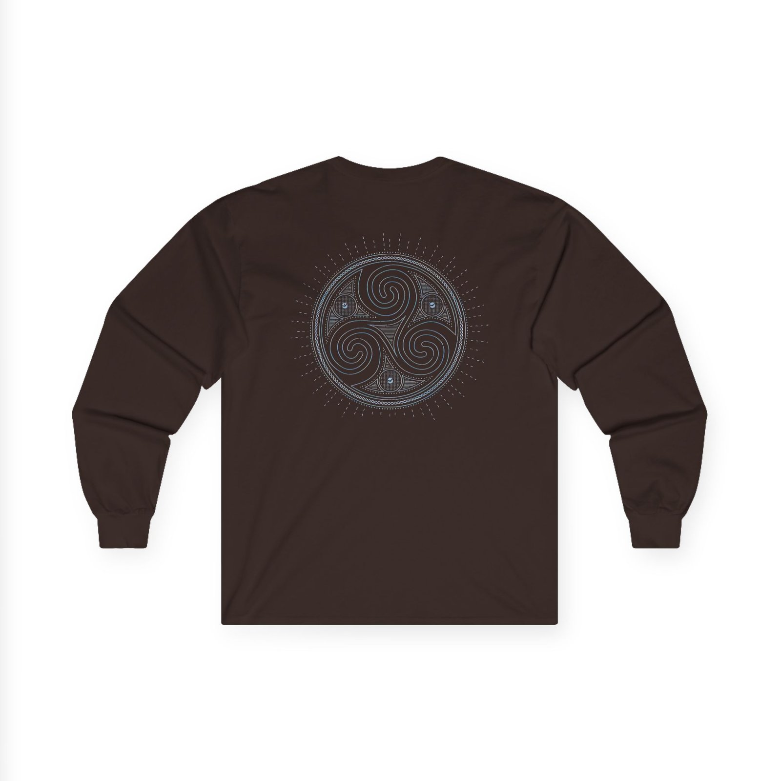 A bit more formal than a standard-issue t-shirt, the Eluveitie Triskel ultra cotton long sleeve tee is a clear comfort winner. The sleeves also act as a nice frame. There are no side seams. The shoulders are taped for improved durability. This makes for a good fitting around the shoulders and neck. The cotton used for these shirts is environmentally friendly.