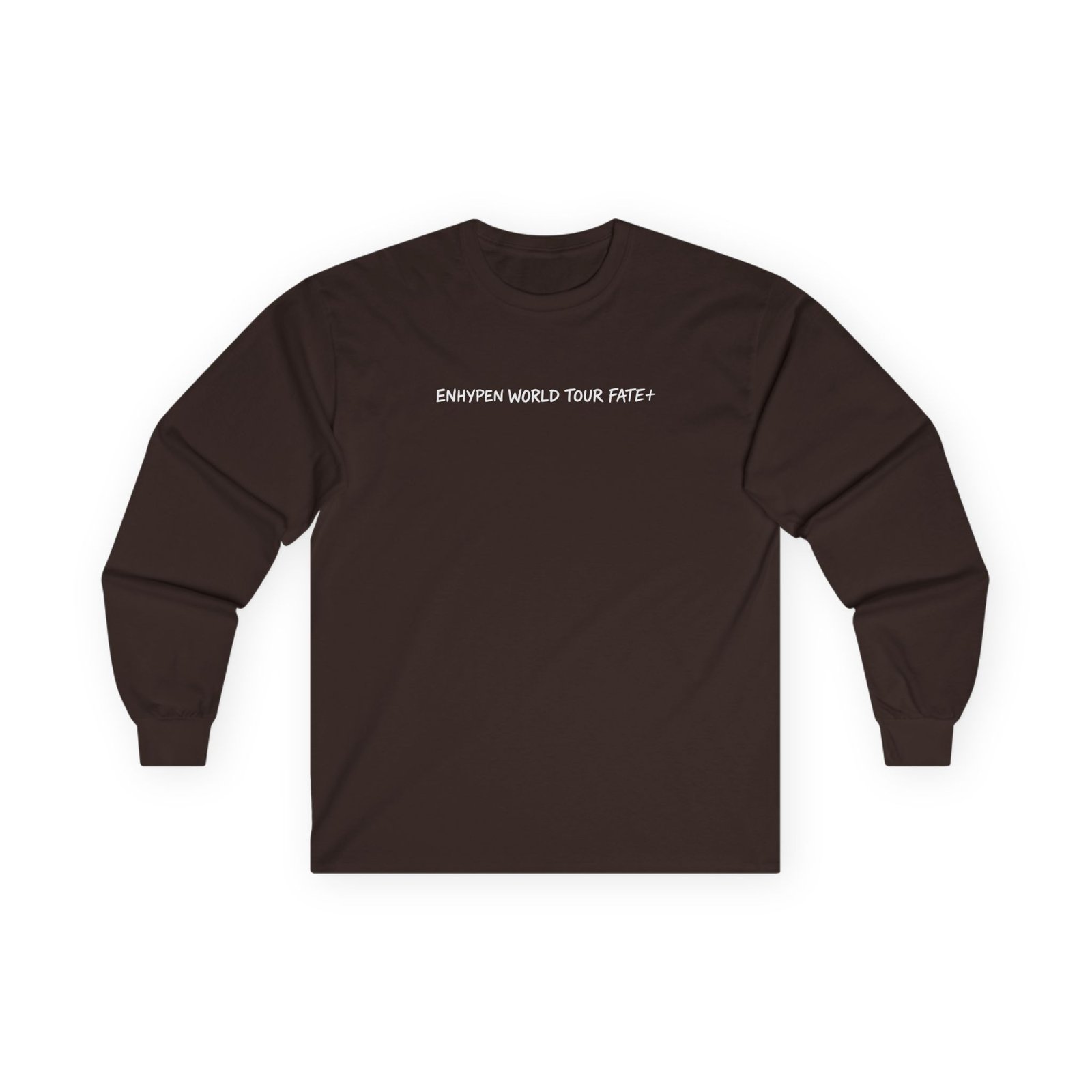 A bit more formal than a standard-issue t-shirt, the Enhypen Tour Routing ultra cotton long sleeve tee is a clear comfort winner. The sleeves also act as a nice frame. There are no side seams. The shoulders are taped for improved durability. This makes for a good fitting around the shoulders and neck. The cotton used for these shirts is environmentally friendly.
