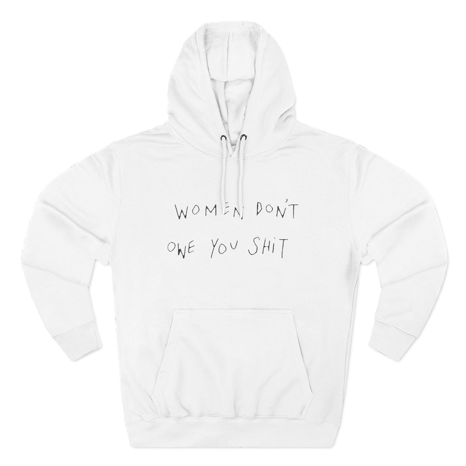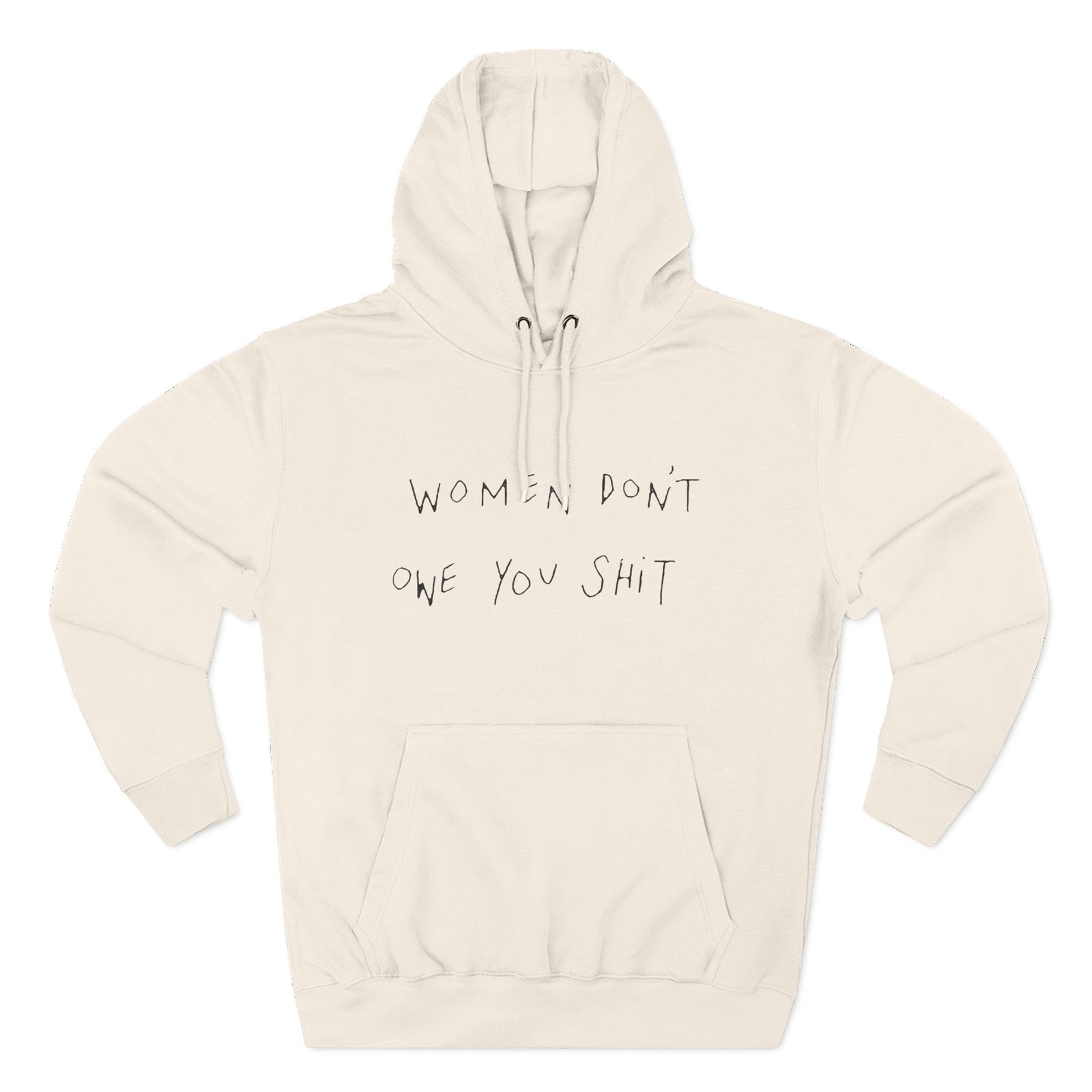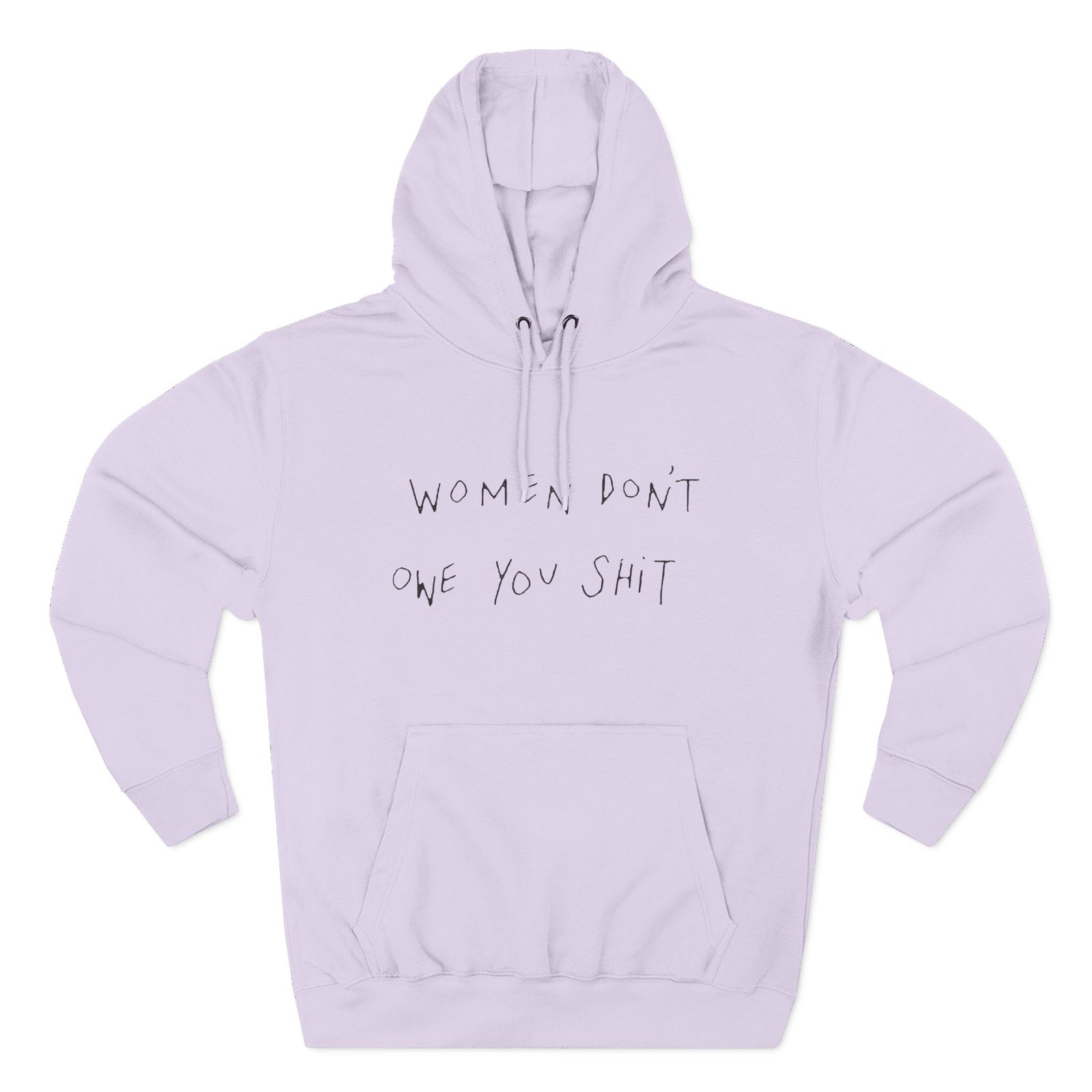 Beat the cold with this Evelyn Ha Women Don't Owe You Shit premium pullover hoodie that’s just the right layer of warm and cozy. Made with three-panel fleece lining, this pullover is double stitched for durability and roomy. Pick one in your favorite color to match your style.