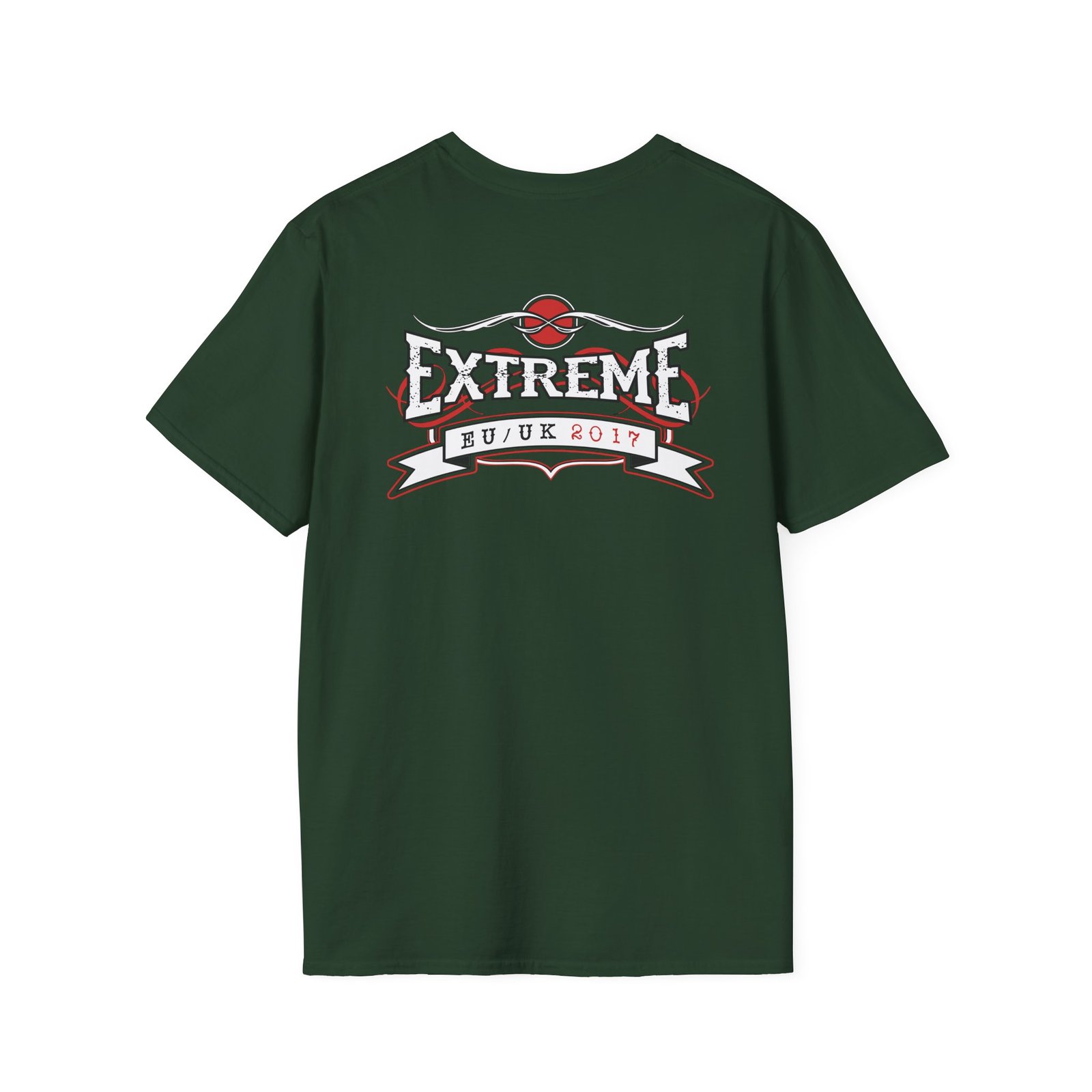 The Extreme Kid Ego Tour unisex soft-style t-shirt puts a new spin on casual comfort. Made from very soft materials, this tee is 100% cotton for solid colors. Heather colors and sports grey include polyester. The shoulders have twill tape for improved durability. There are no side seams. The collar is made with ribbed knitting to prevent curling damage.