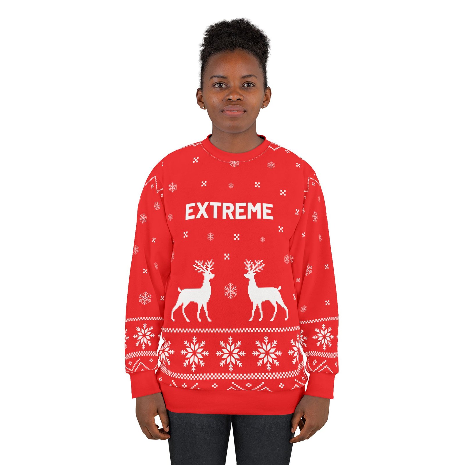 This all over print Extreme crewneck sweatshirt is the perfect example of cool. With quality all-over printing capabilities, you won’t be worried about white lines at the seams. This fleece is custom cut and sewn, featuring a crew neck and set-in sleeves to keep you warm.