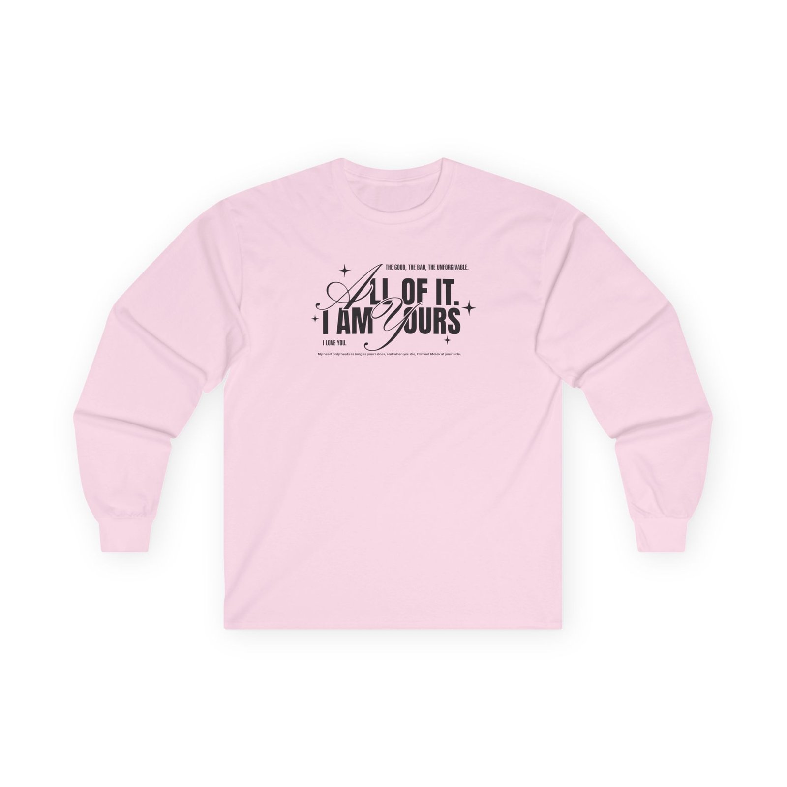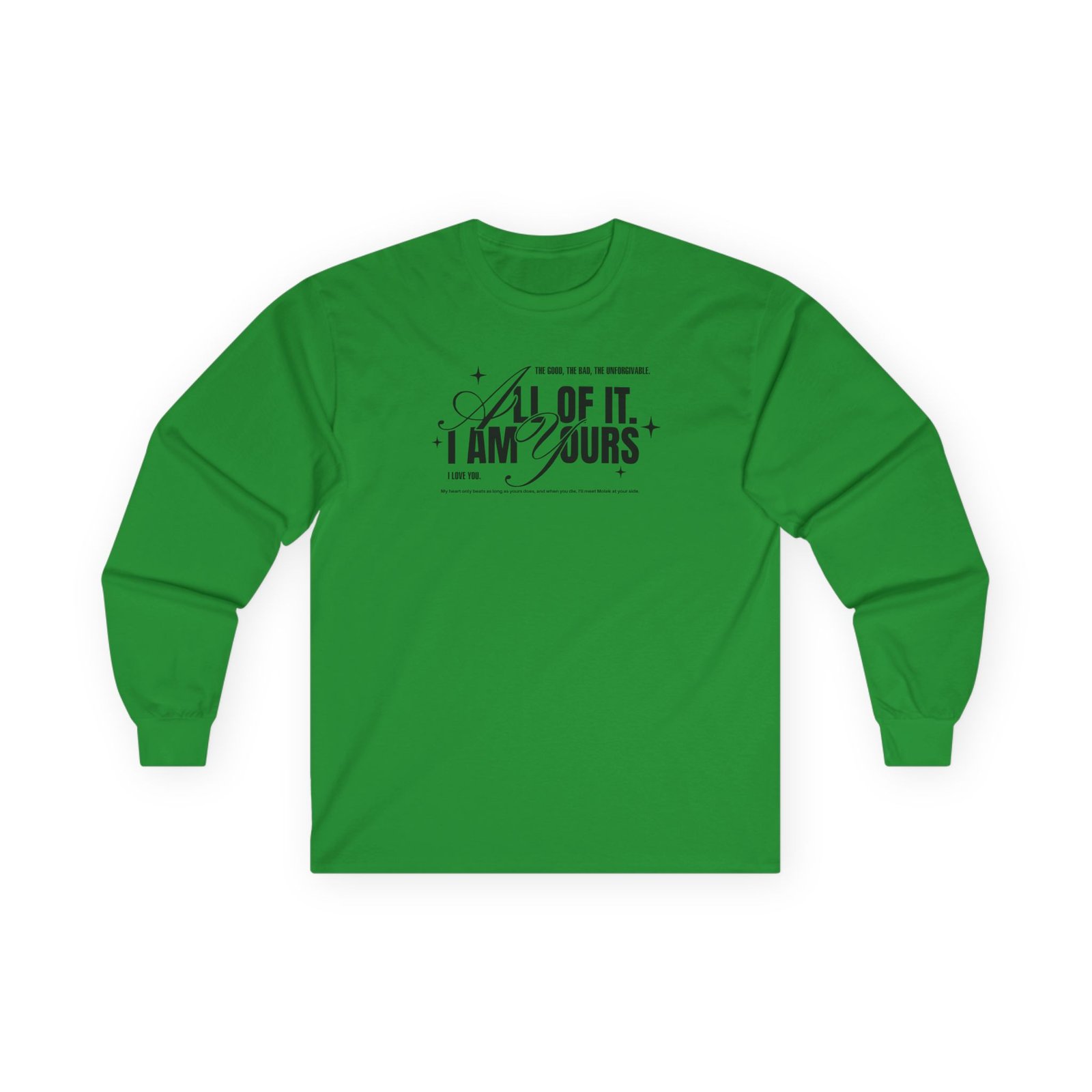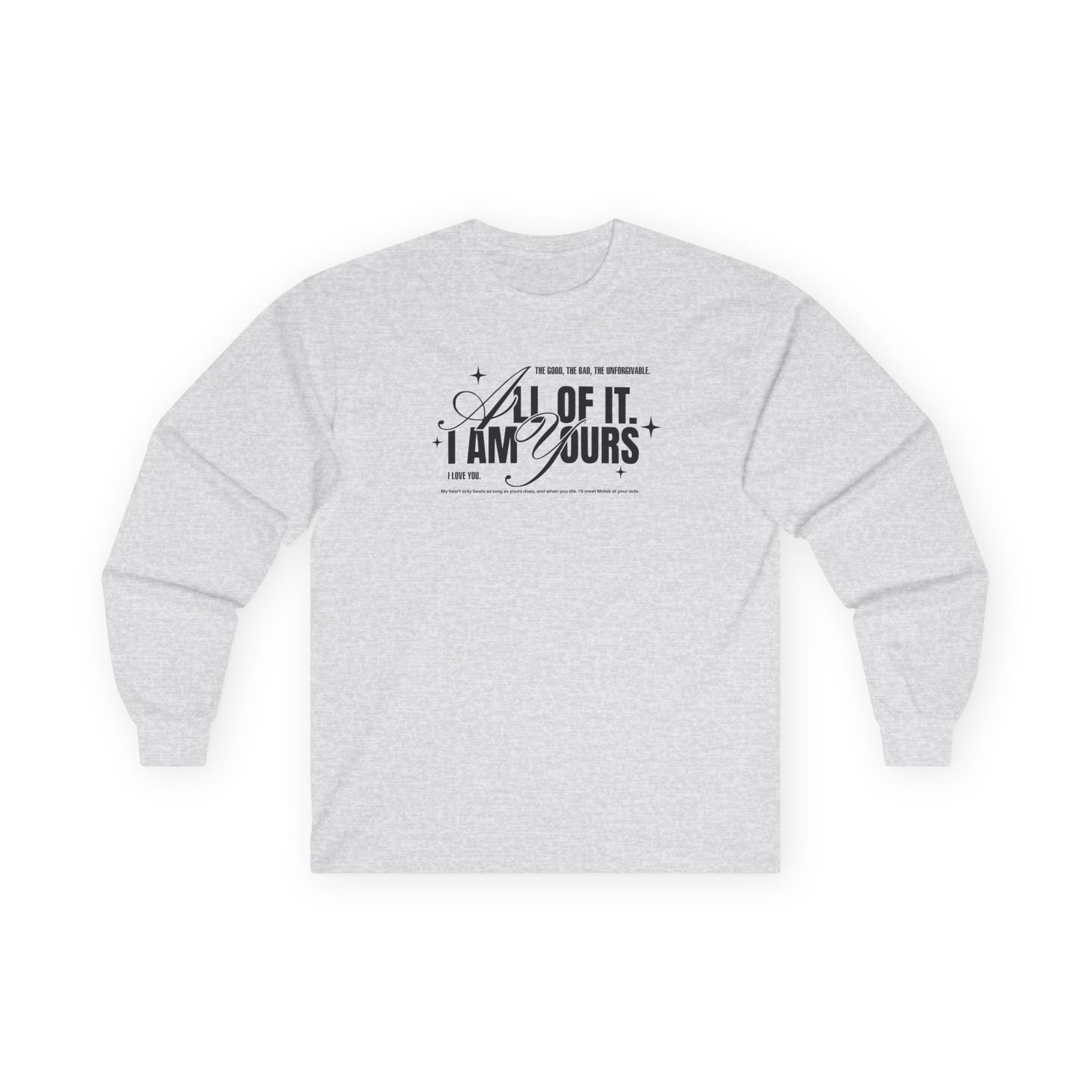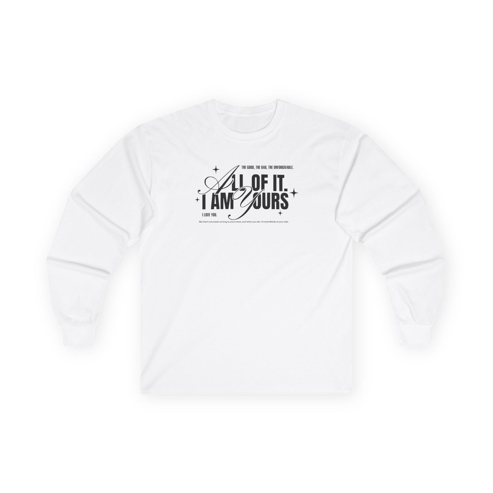 A bit more formal than a standard-issue t-shirt, the Fourth Wing Iam Yours ultra cotton long sleeve tee is a clear comfort winner. The sleeves also act as a nice frame. There are no side seams. The shoulders are taped for improved durability. This makes for a good fitting around the shoulders and neck. The cotton used for these shirts is environmentally friendly.