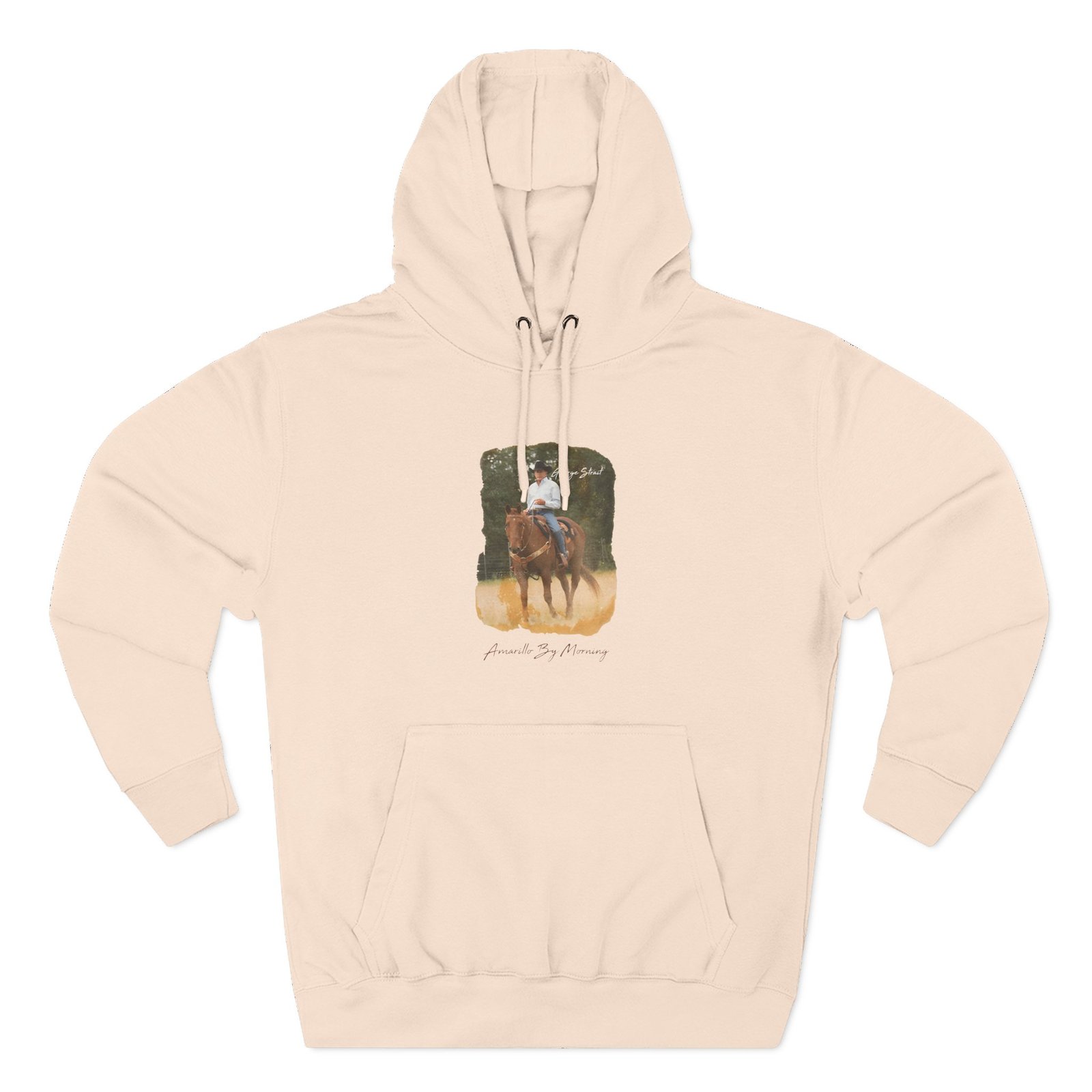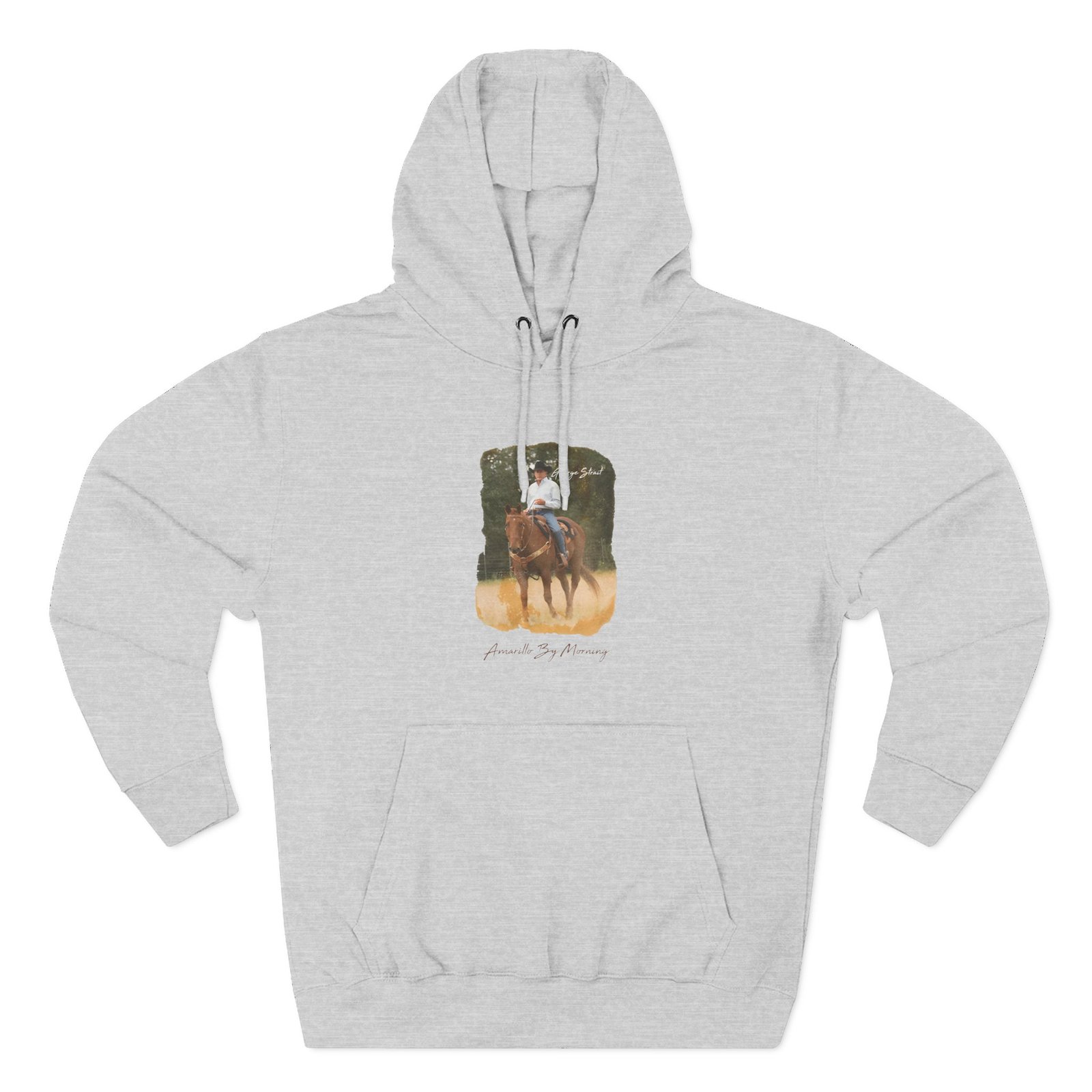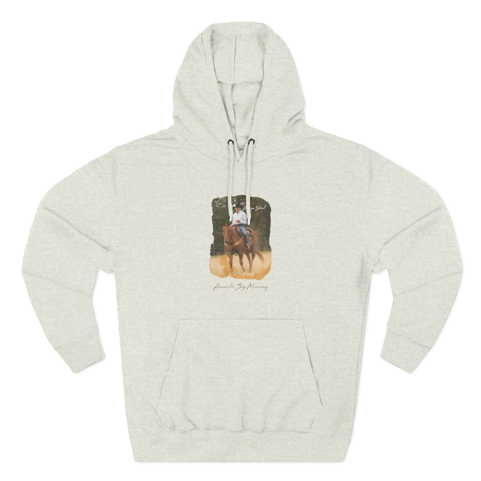 Beat the cold with this George Strait Amarillo by Morning premium pullover hoodie that’s just the right layer of warm and cozy. Made with three-panel fleece lining, this pullover is double stitched for durability and roomy. Pick one in your favorite color to match your style.