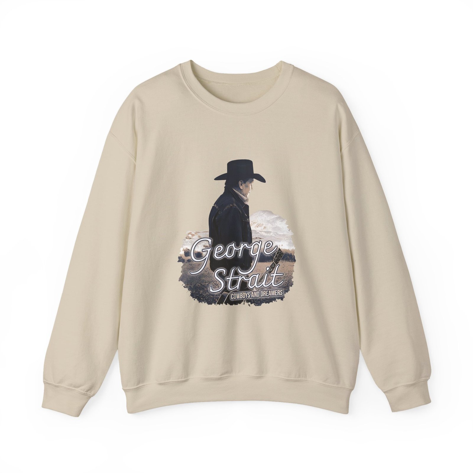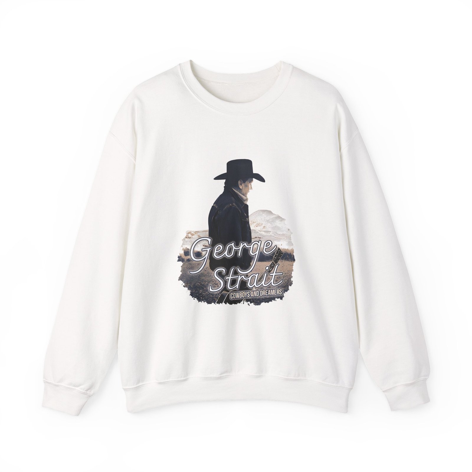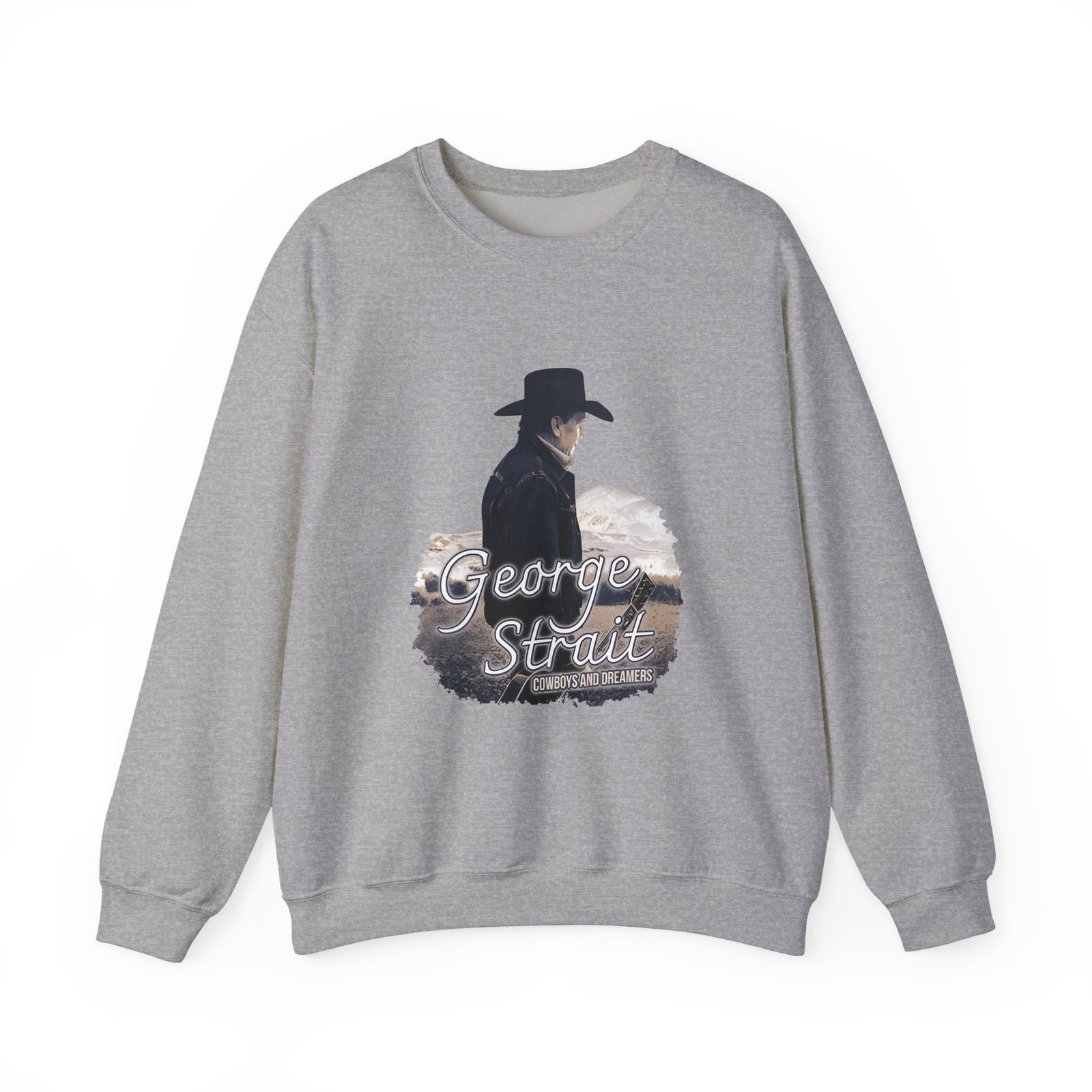 Ideal for any situation, a George Strait Cowboys and Dreamers unisex heavy blend crewneck sweatshirt is pure comfort. These garments are made from polyester and cotton. This combination helps designs come out looking fresh and beautiful. The collar is ribbed knit, so it retains its shape even after washing. There are no itchy side seams on these sweaters.