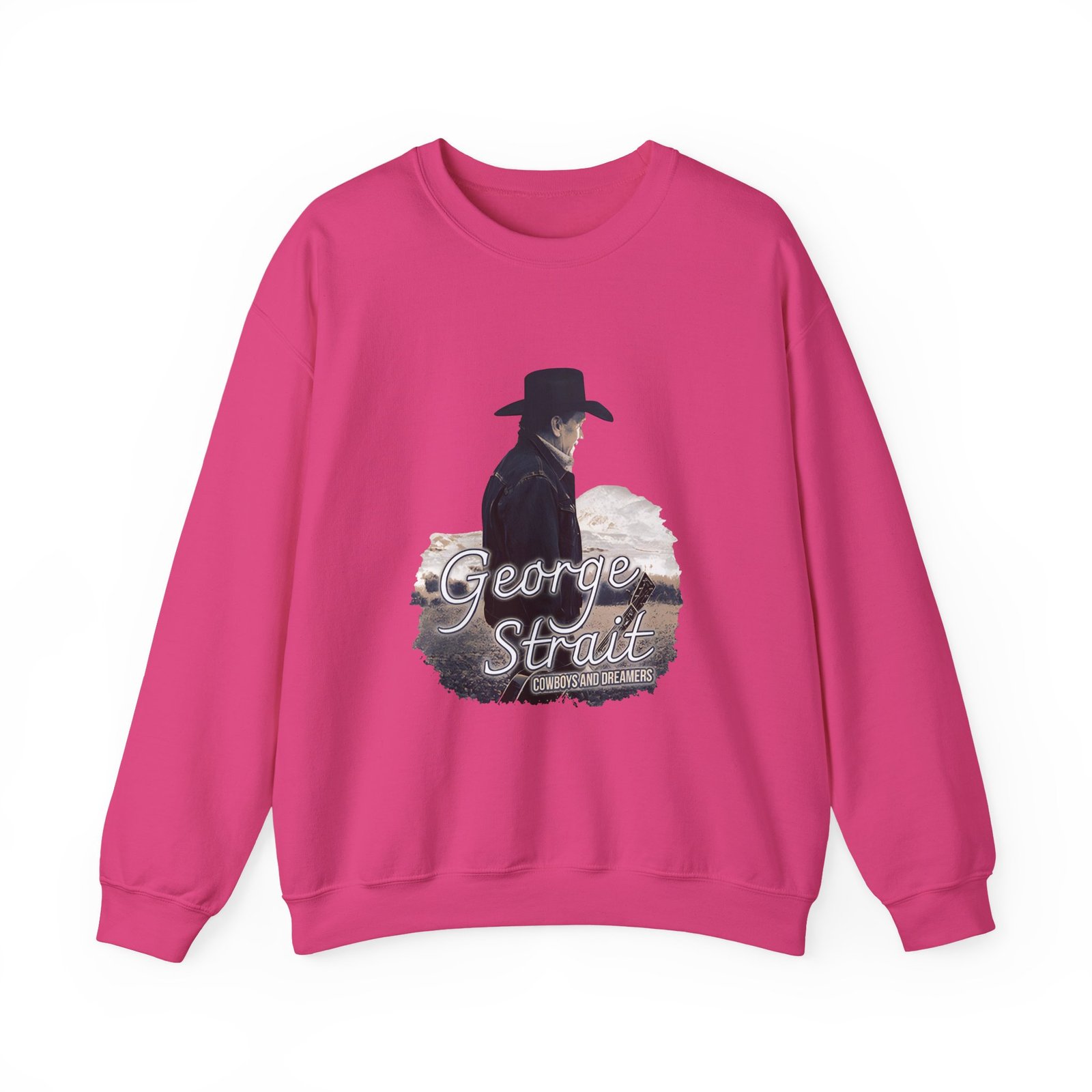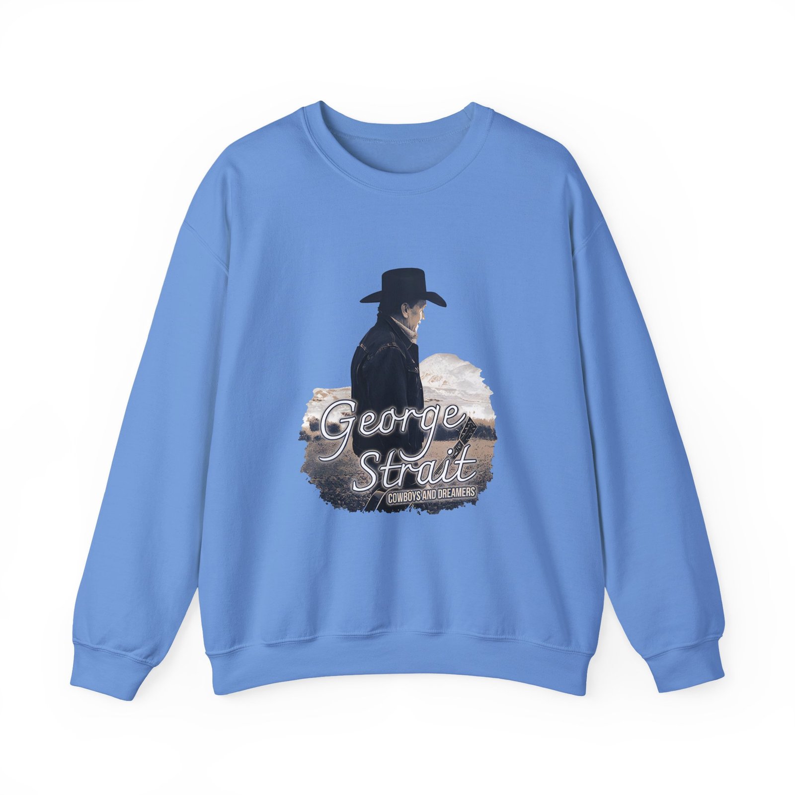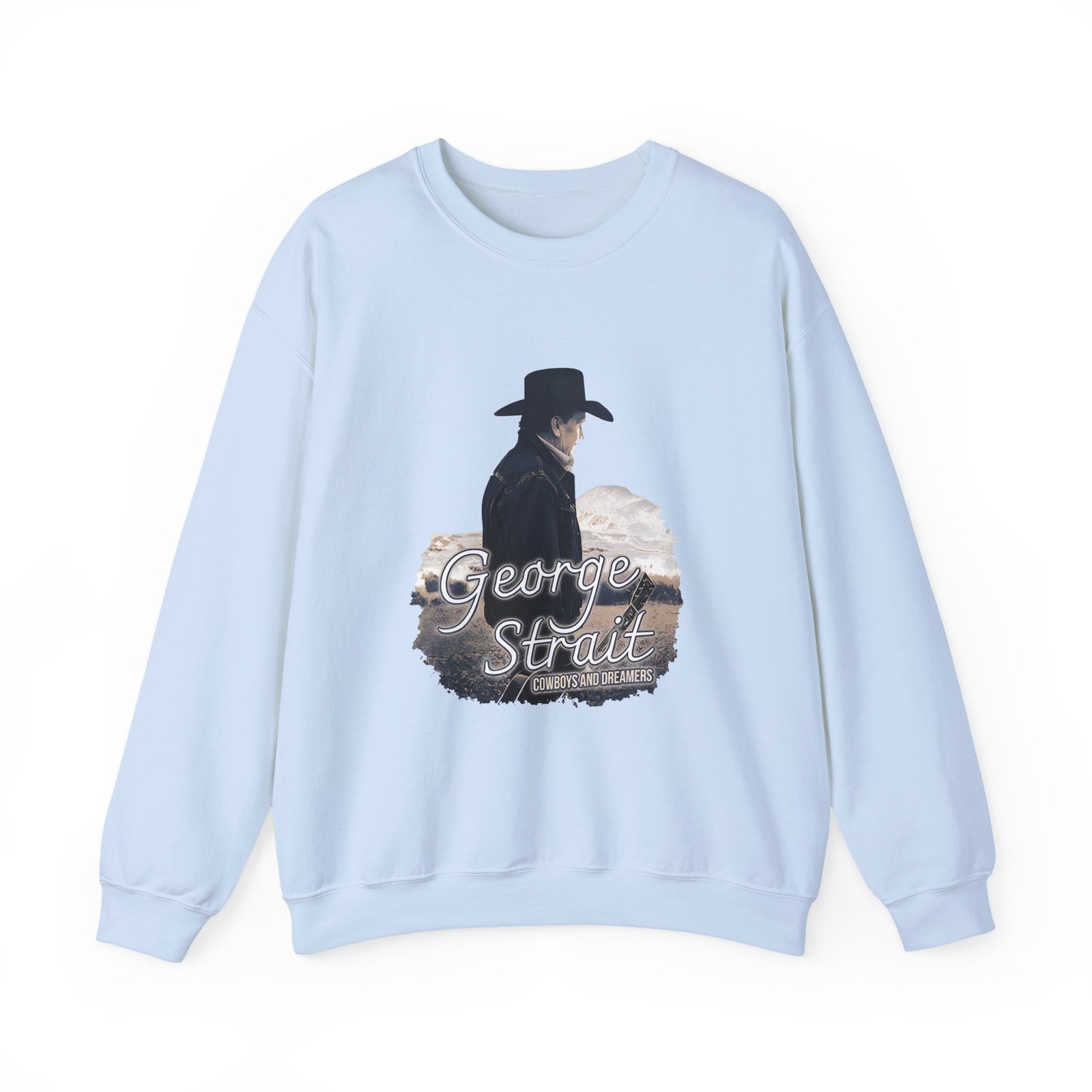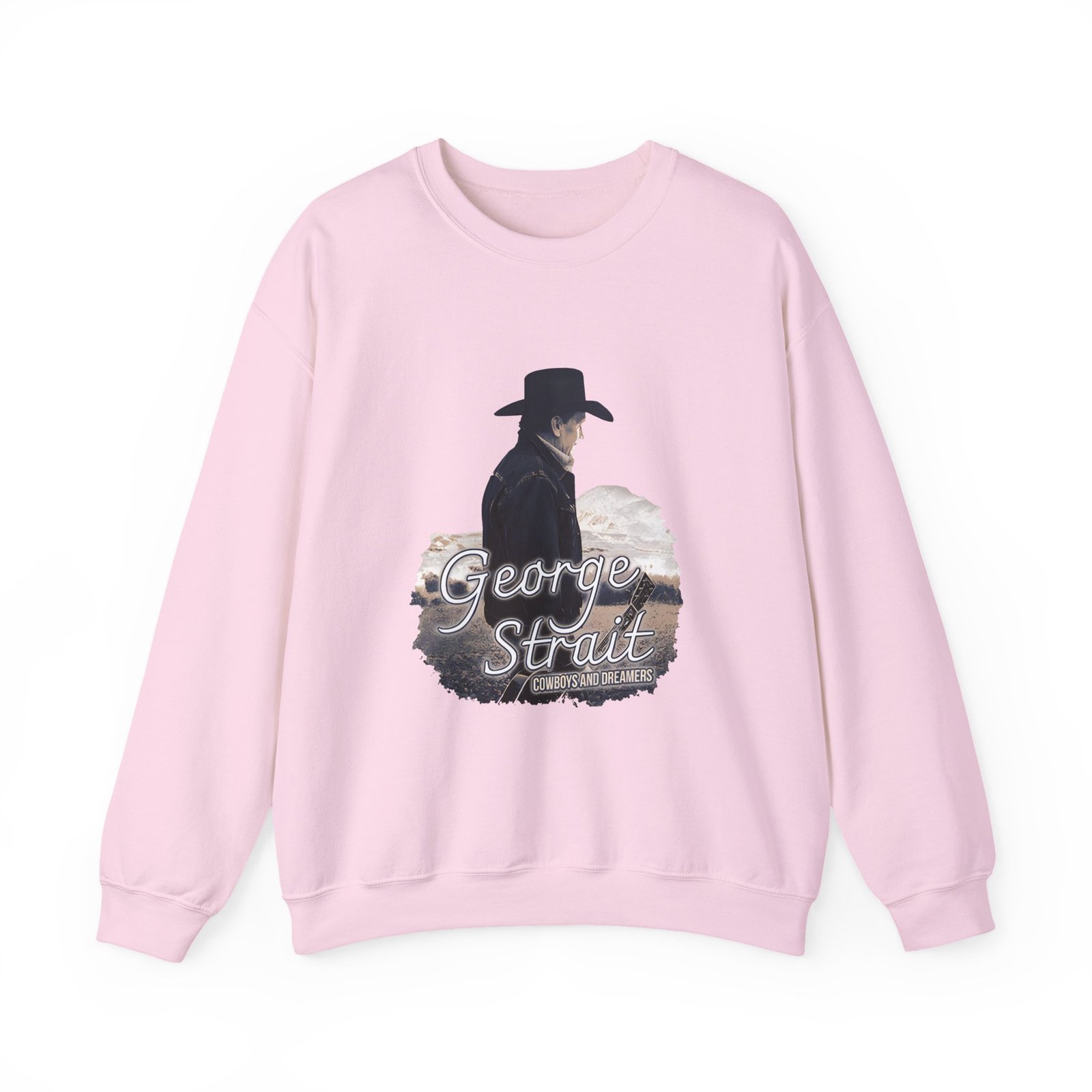 Ideal for any situation, a George Strait Cowboys and Dreamers unisex heavy blend crewneck sweatshirt is pure comfort. These garments are made from polyester and cotton. This combination helps designs come out looking fresh and beautiful. The collar is ribbed knit, so it retains its shape even after washing. There are no itchy side seams on these sweaters.