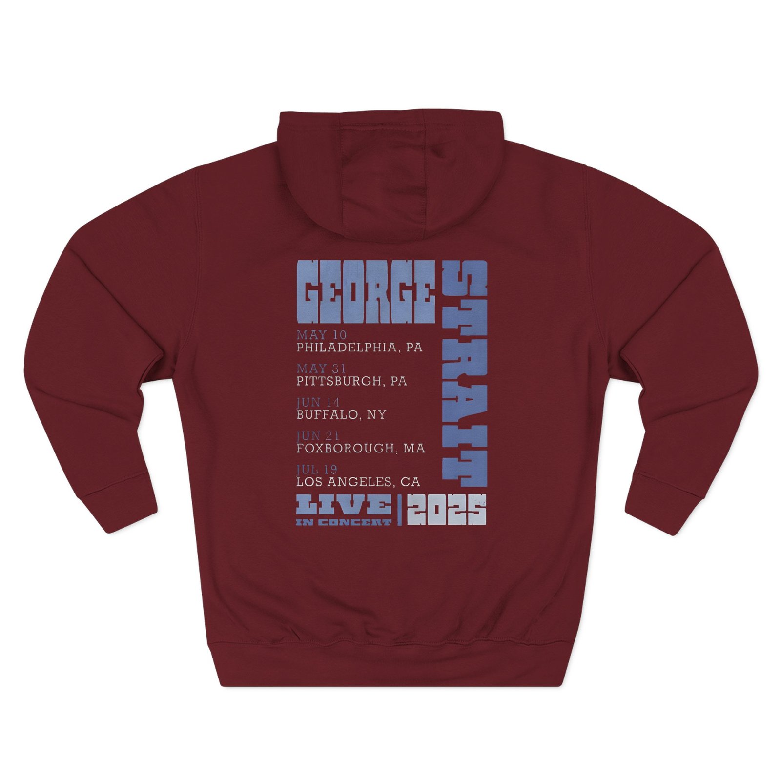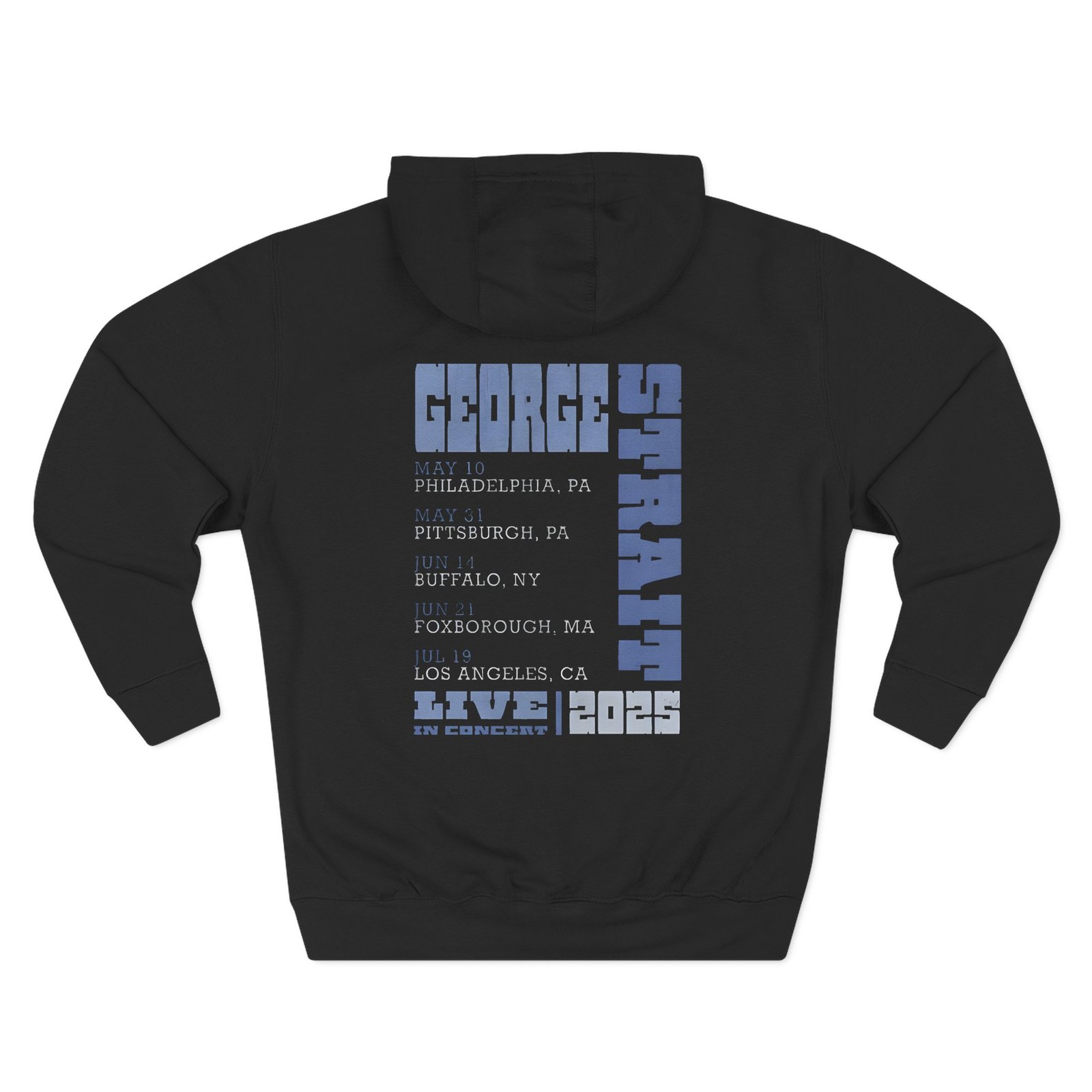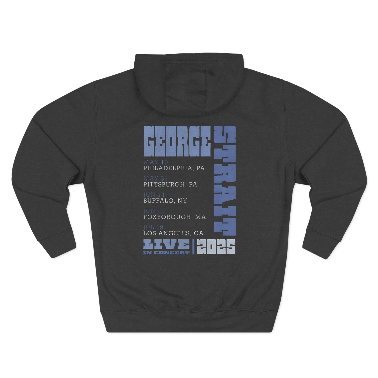 Beat the cold with this George Strait Tour premium pullover hoodie that’s just the right layer of warm and cozy. Made with three-panel fleece lining, this pullover is double stitched for durability and roomy. Pick one in your favorite color to match your style.