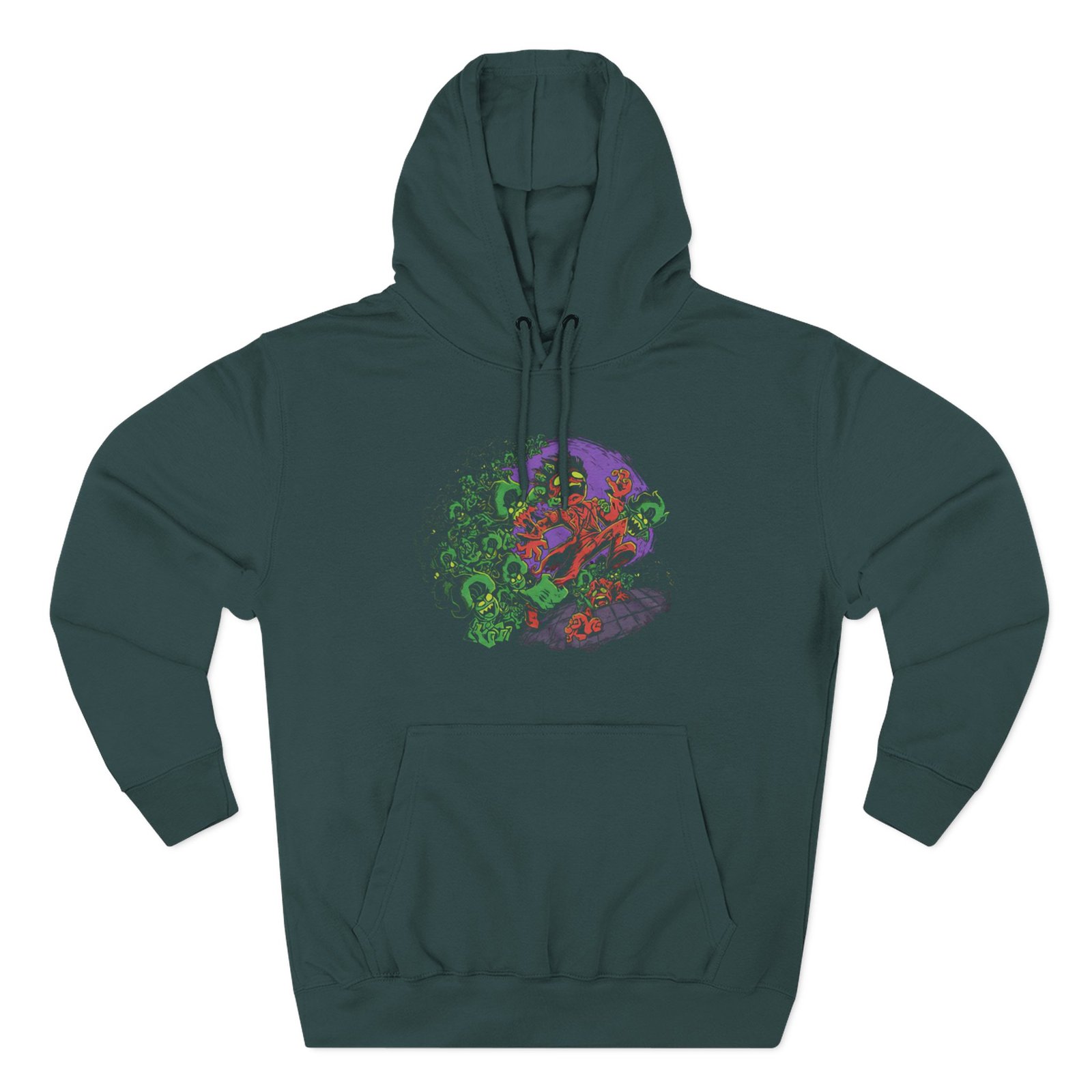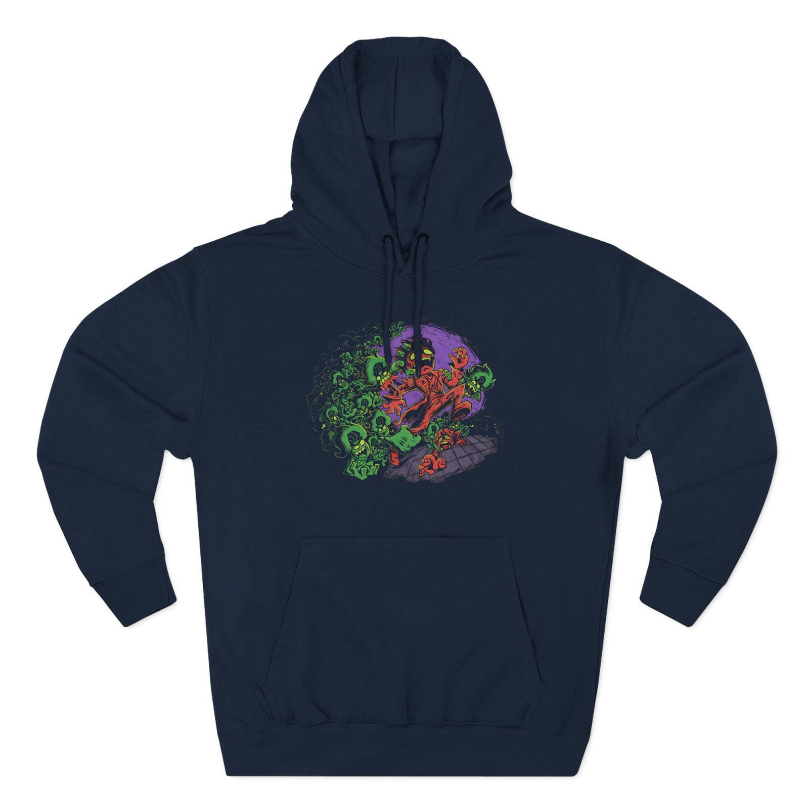 Beat the cold with this Haminations Gremlin Attack premium pullover hoodie that’s just the right layer of warm and cozy. Made with three-panel fleece lining, this pullover is double stitched for durability and roomy. Pick one in your favorite color to match your style.