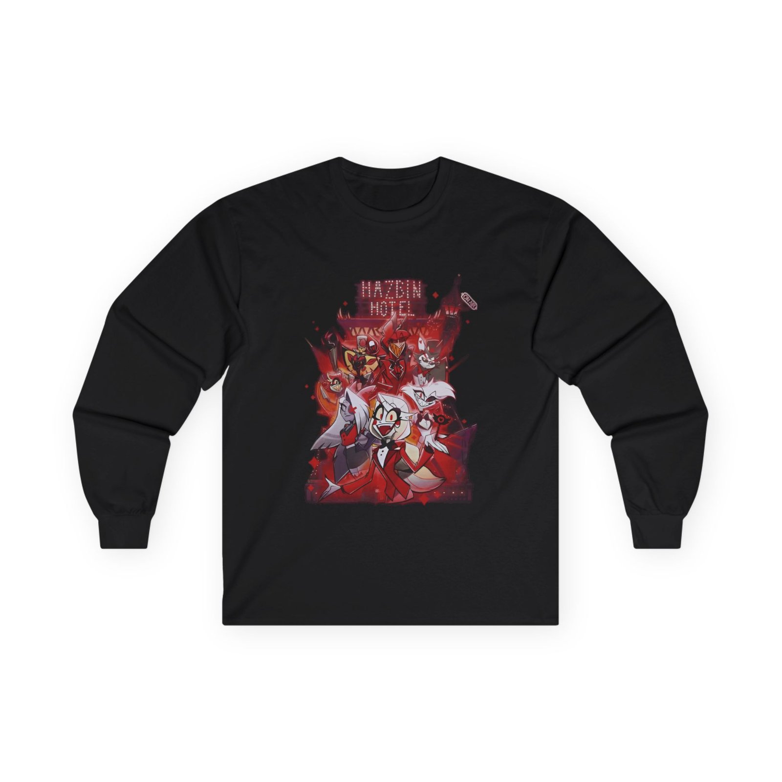 A bit more formal than a standard-issue t-shirt, the Hazbin Hotel Characters ultra cotton long sleeve tee is a clear comfort winner. The sleeves also act as a nice frame. There are no side seams. The shoulders are taped for improved durability. This makes for a good fitting around the shoulders and neck. The cotton used for these shirts is environmentally friendly.