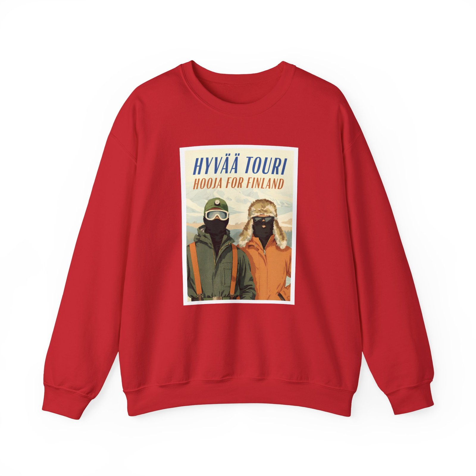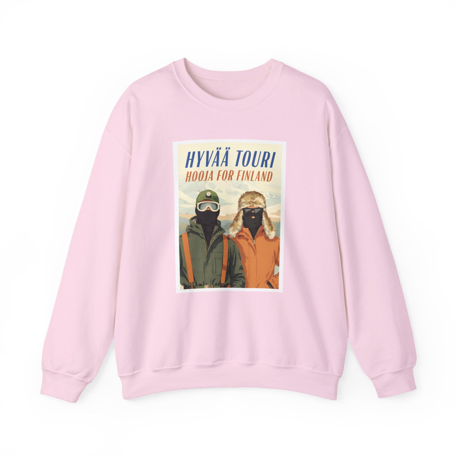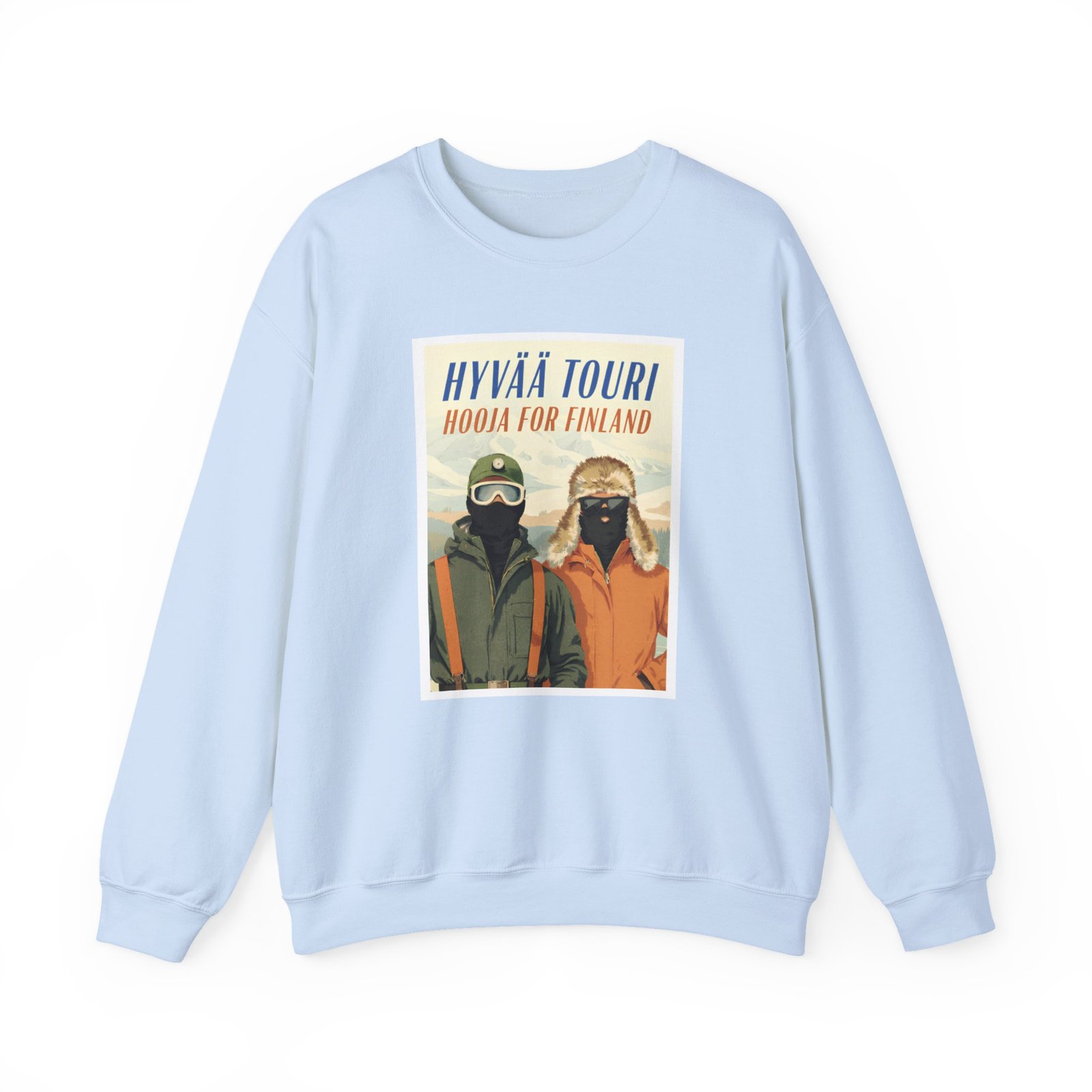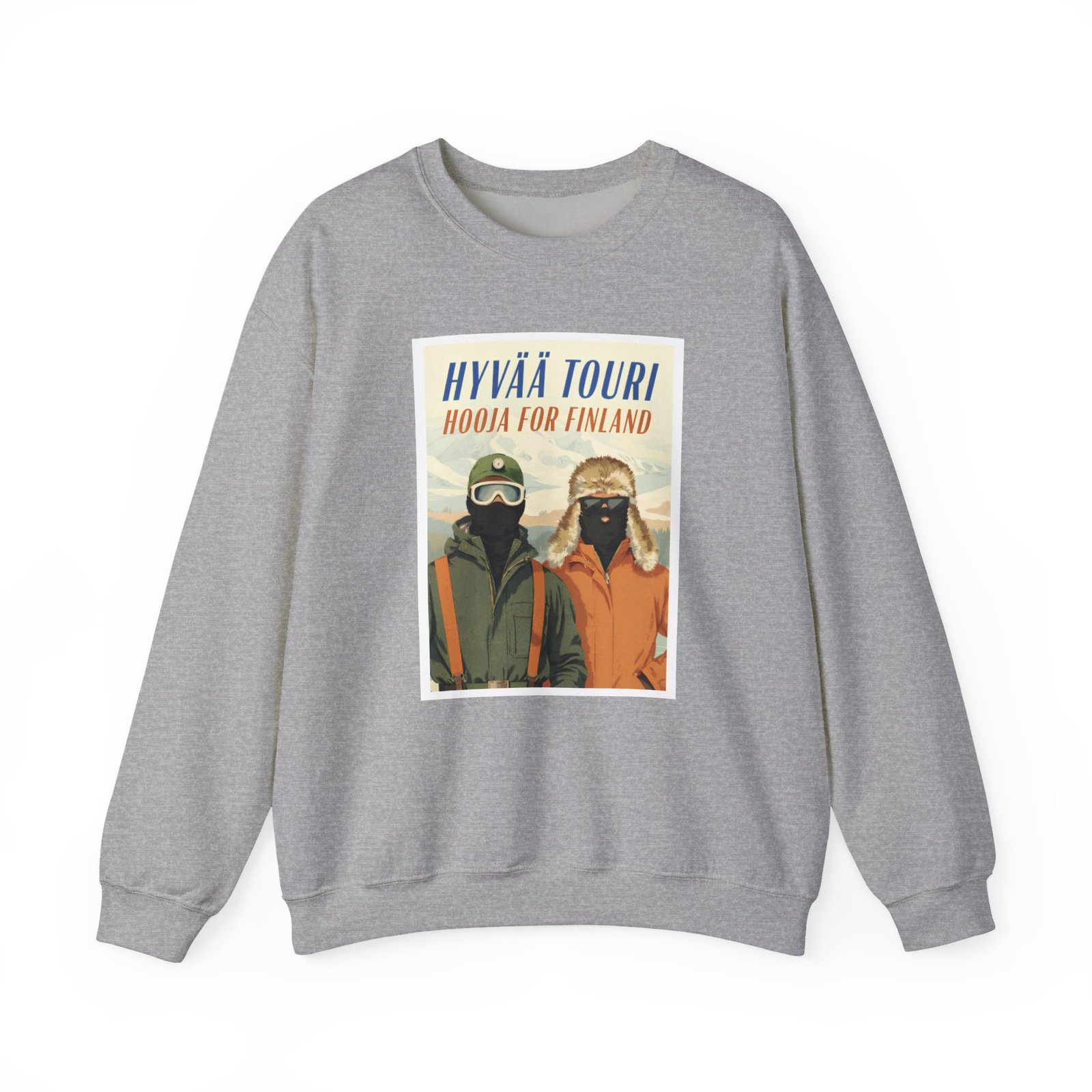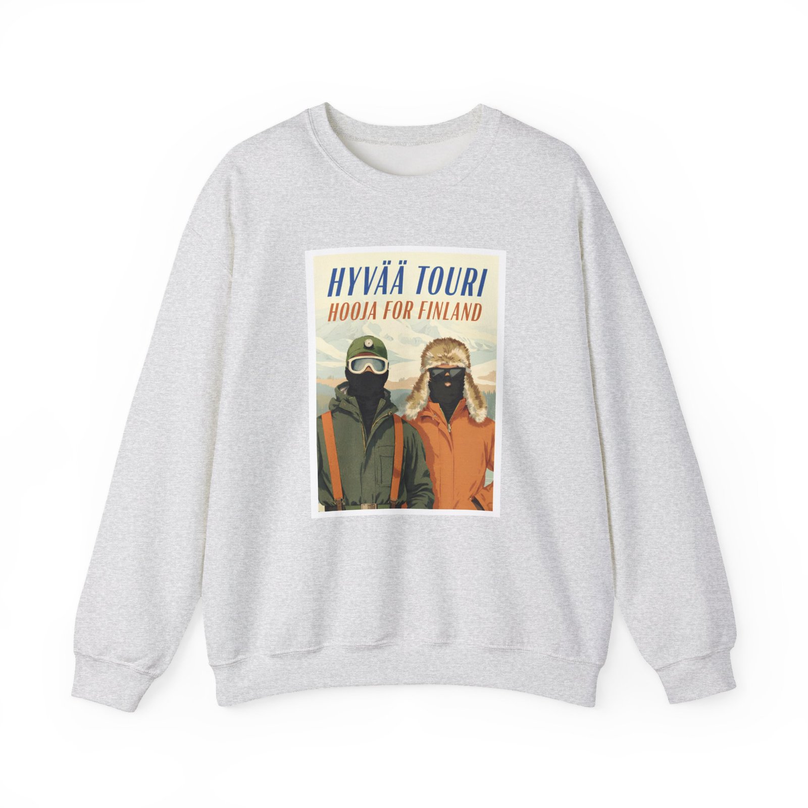 Ideal for any situation, a Hooja Hyvää Touri unisex heavy blend crewneck sweatshirt is pure comfort. These garments are made from polyester and cotton. This combination helps designs come out looking fresh and beautiful. The collar is ribbed knit, so it retains its shape even after washing. There are no itchy side seams on these sweaters.