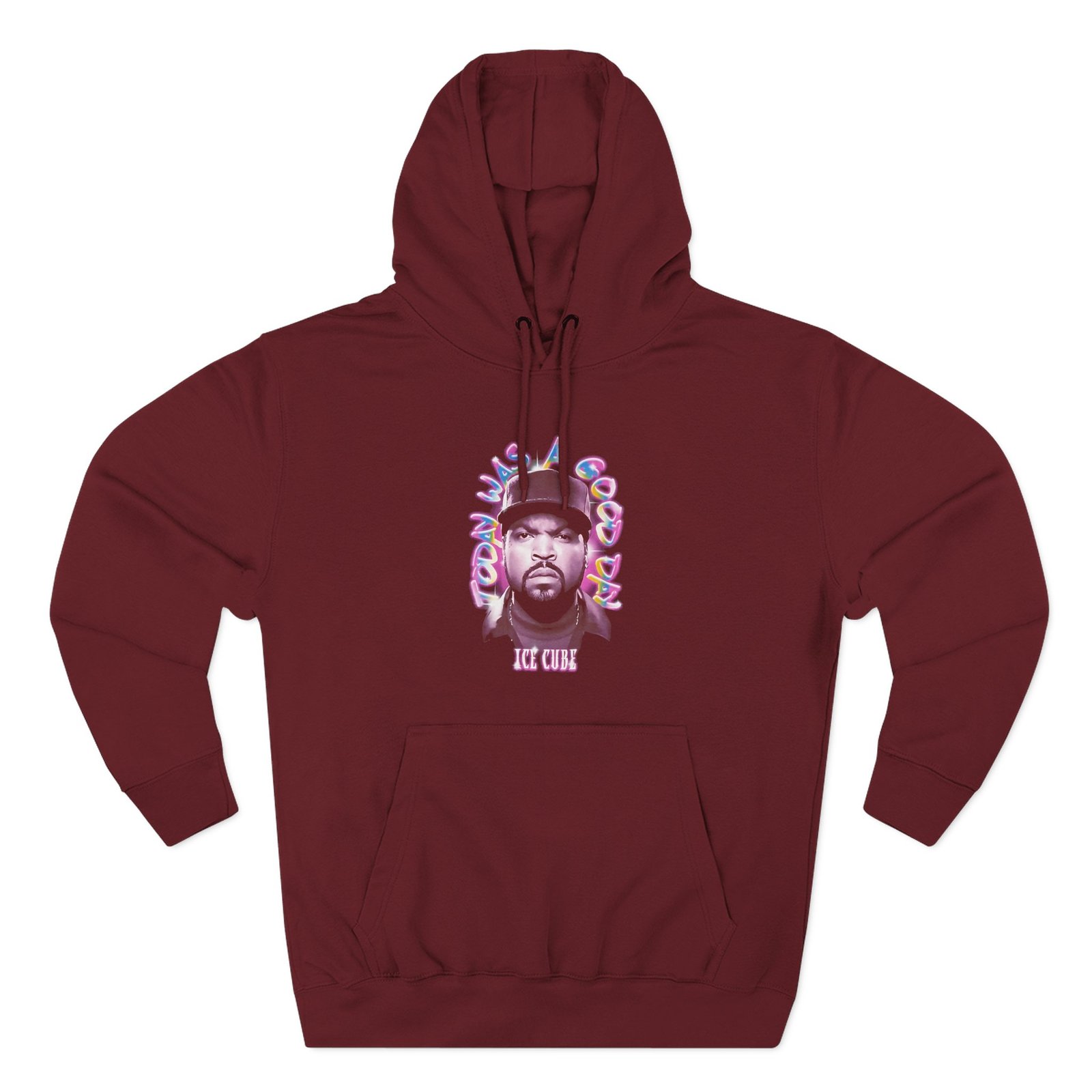 Beat the cold with this Ice Cube Airbrush Portrait premium pullover hoodie that’s just the right layer of warm and cozy. Made with three-panel fleece lining, this pullover is double stitched for durability and roomy. Pick one in your favorite color to match your style.