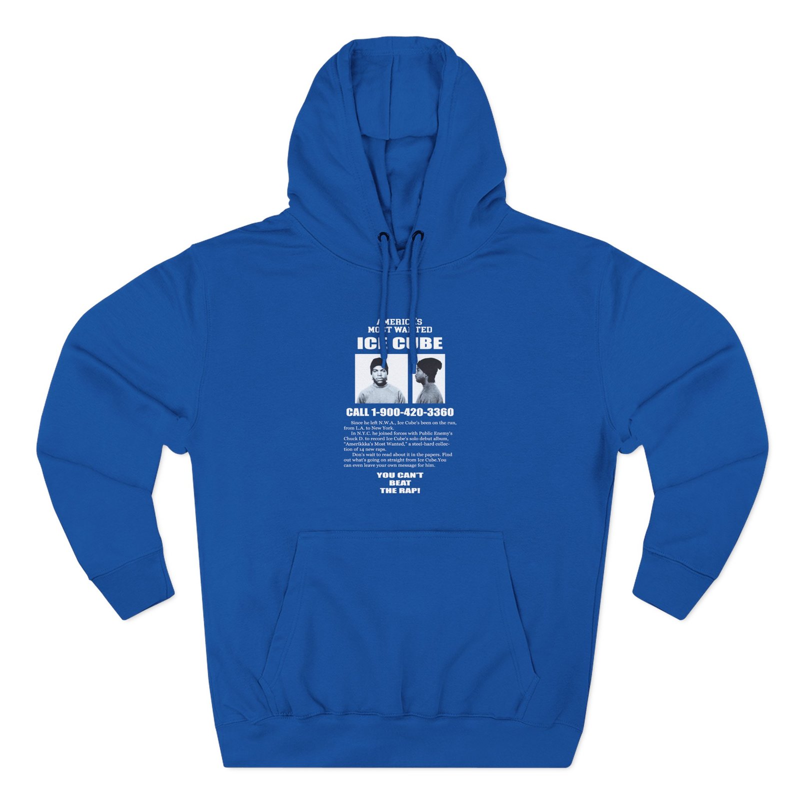 Beat the cold with this Ice Cube America's Most Wanted premium pullover hoodie that’s just the right layer of warm and cozy. Made with three-panel fleece lining, this pullover is double stitched for durability and roomy. Pick one in your favorite color to match your style.