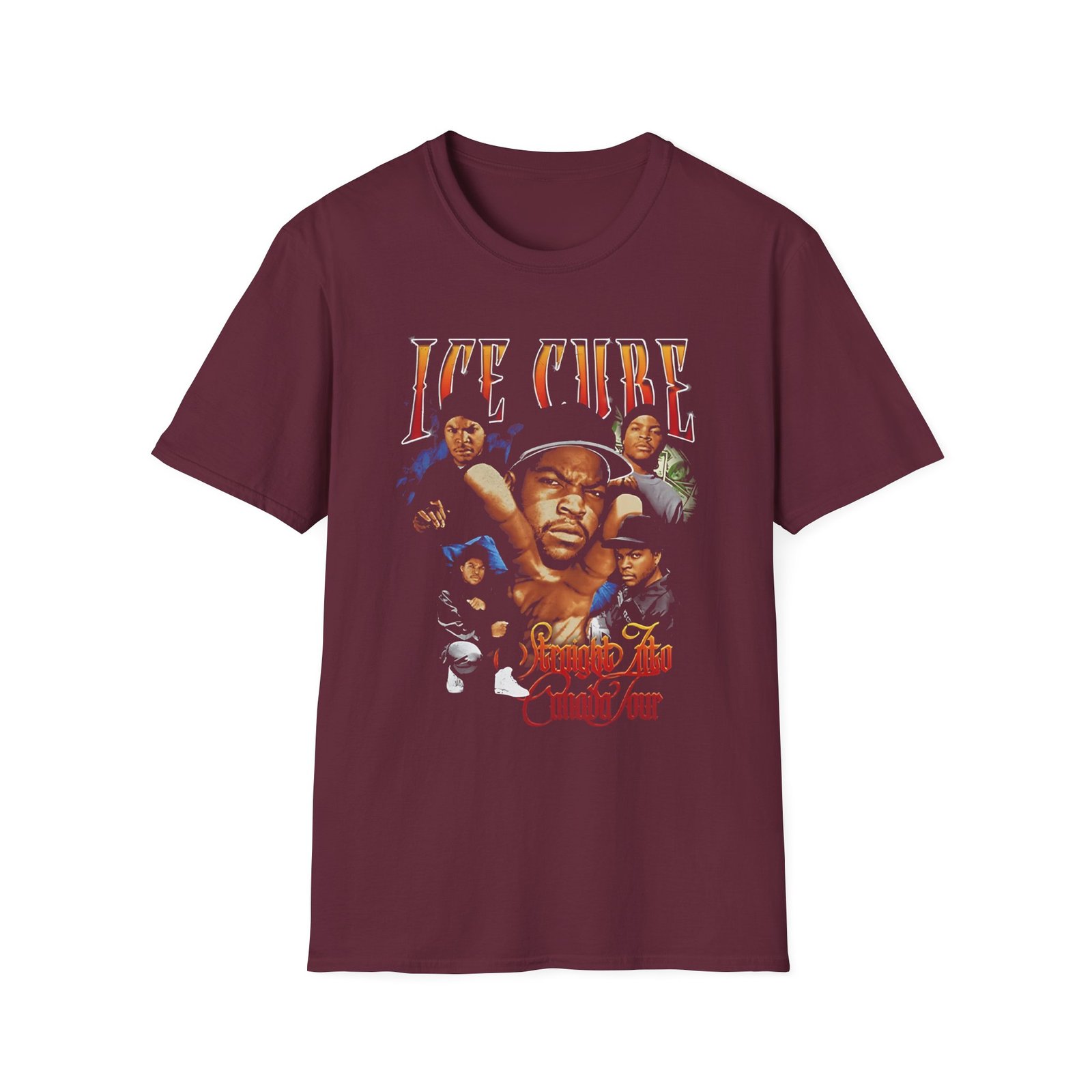 The Ice Cube Straight Into Canada unisex soft-style t-shirt puts a new spin on casual comfort. Made from very soft materials, this tee is 100% cotton for solid colors. Heather colors and sports grey include polyester. The shoulders have twill tape for improved durability. There are no side seams. The collar is made with ribbed knitting to prevent curling damage.