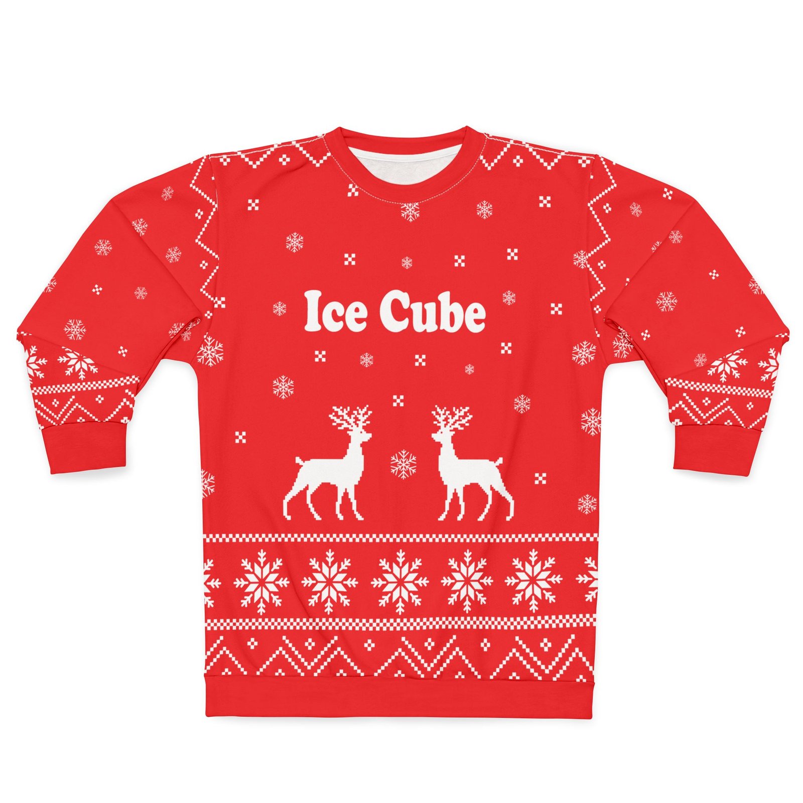 This all over print Ice Cube crewneck sweatshirt is the perfect example of cool. With quality all-over printing capabilities, you won’t be worried about white lines at the seams. This fleece is custom cut and sewn, featuring a crew neck and set-in sleeves to keep you warm.
