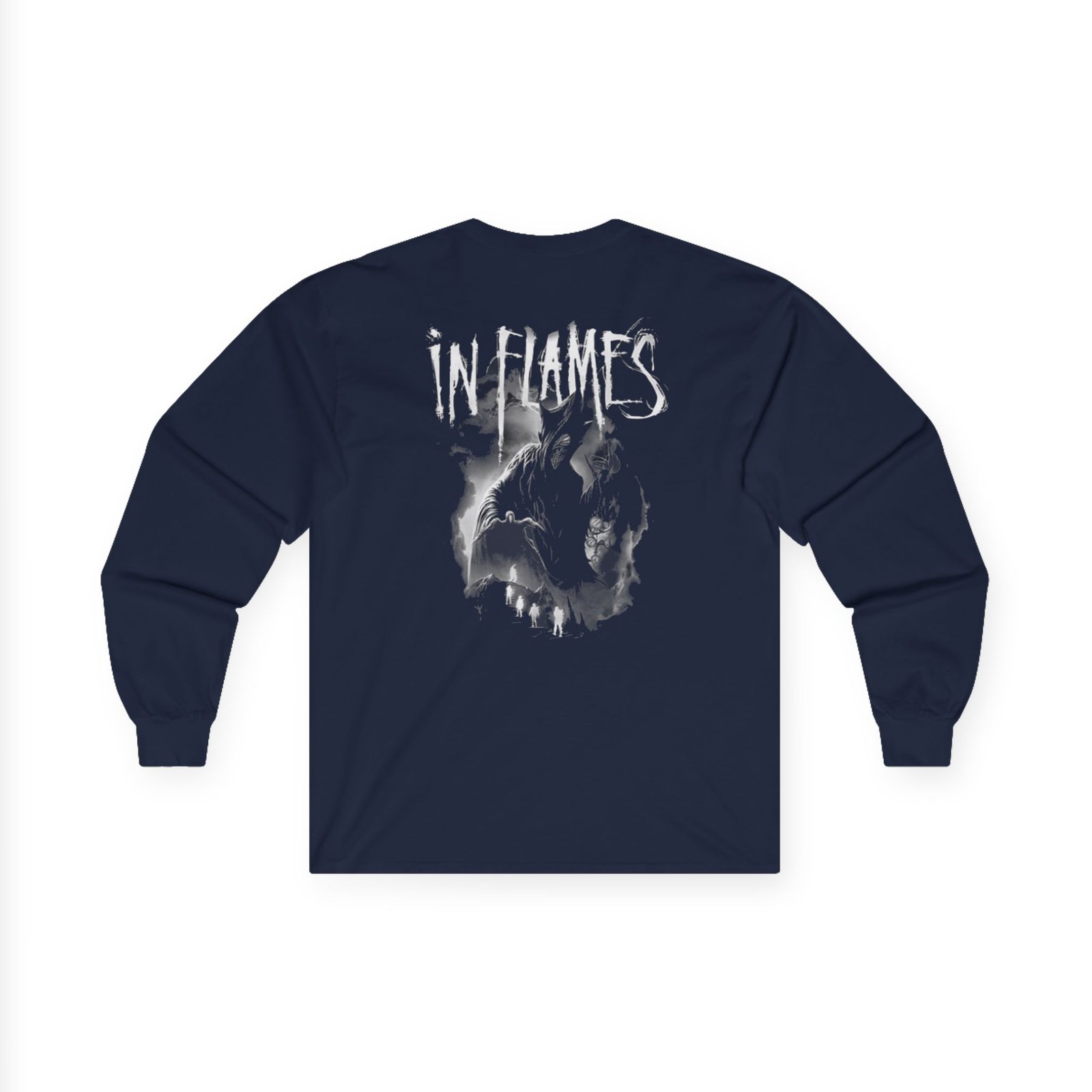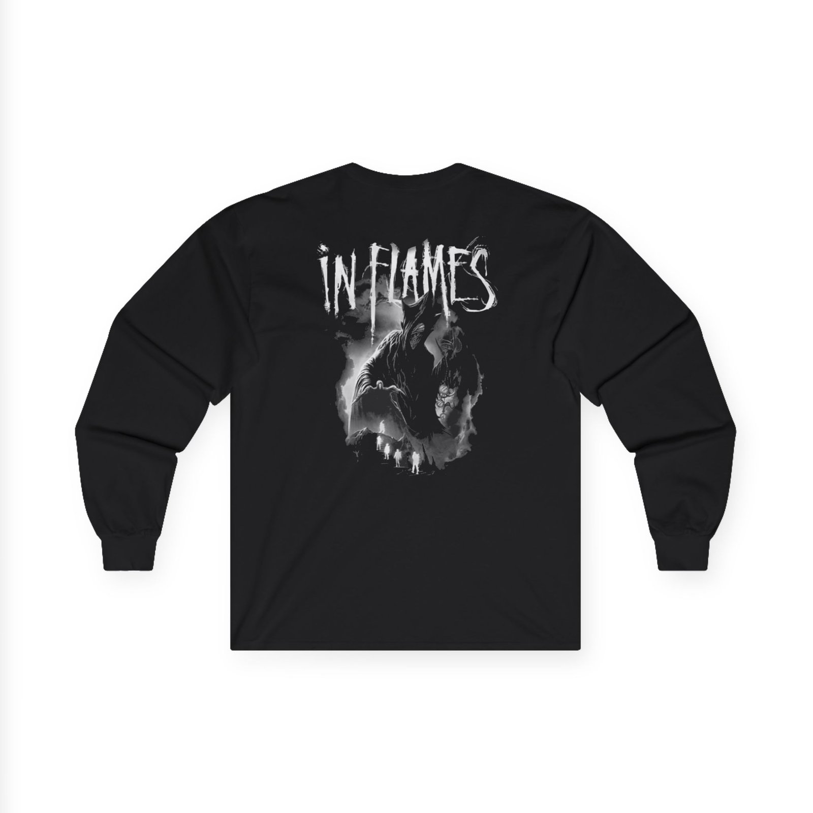 A bit more formal than a standard-issue t-shirt, the In Flames Foregone Cover ultra cotton long sleeve tee is a clear comfort winner. The sleeves also act as a nice frame. There are no side seams. The shoulders are taped for improved durability. This makes for a good fitting around the shoulders and neck. The cotton used for these shirts is environmentally friendly.