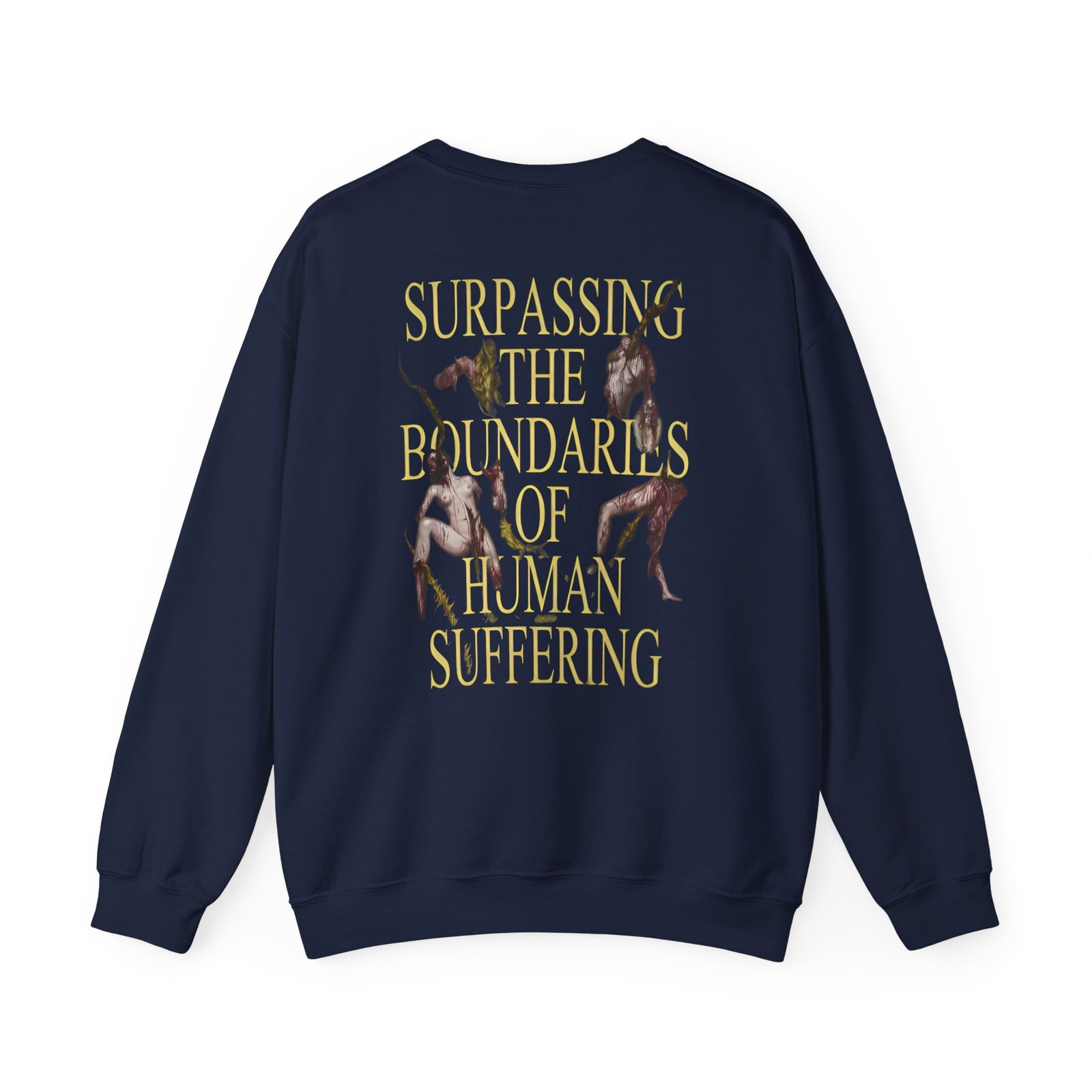 Ideal for any situation, a Ingested Surpassing the Boundaries unisex heavy blend crewneck sweatshirt is pure comfort. These garments are made from polyester and cotton. This combination helps designs come out looking fresh and beautiful. The collar is ribbed knit, so it retains its shape even after washing. There are no itchy side seams on these sweaters.