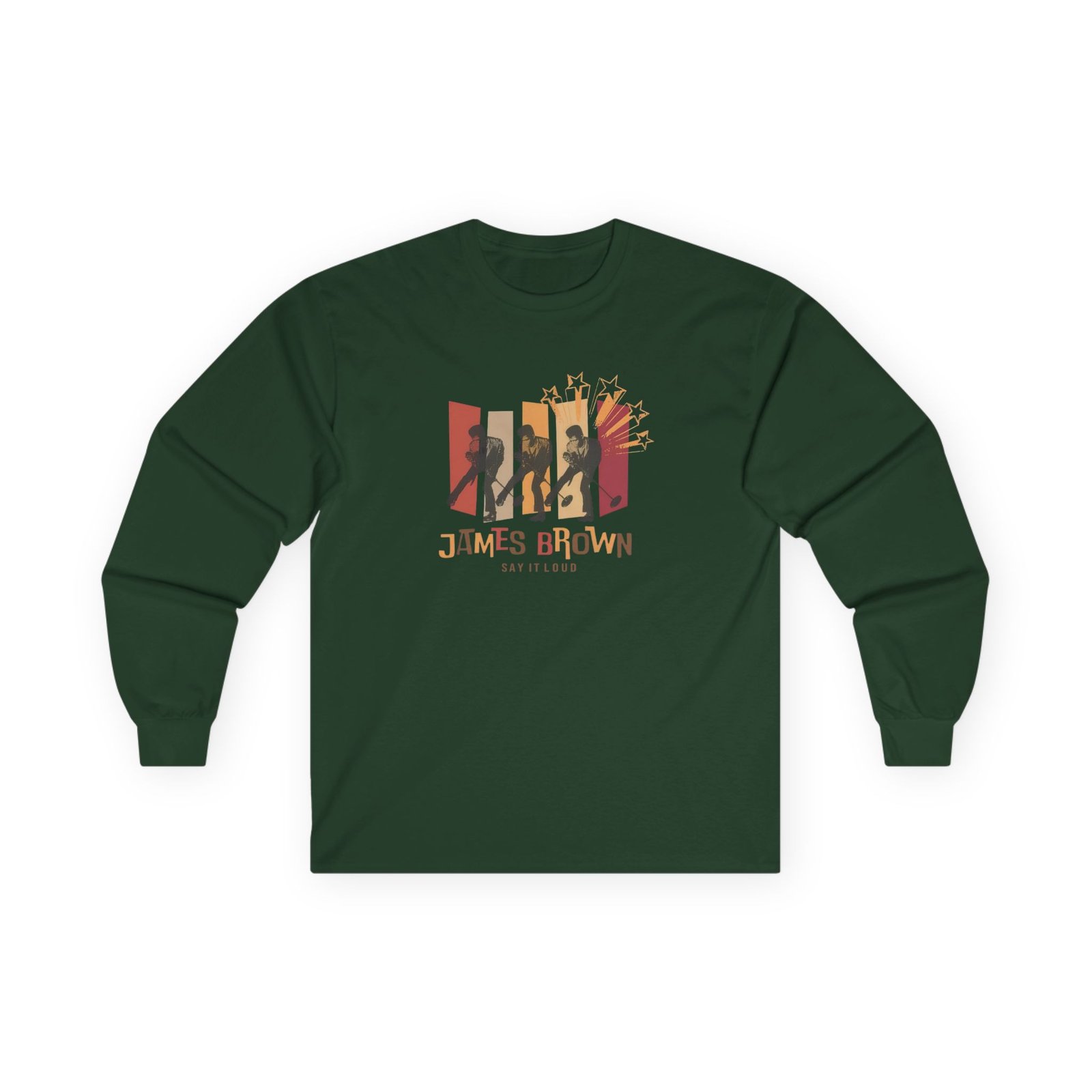 A bit more formal than a standard-issue t-shirt, the James Brown Say It Loud Crooner ultra cotton long sleeve tee is a clear comfort winner. The sleeves also act as a nice frame. There are no side seams. The shoulders are taped for improved durability. This makes for a good fitting around the shoulders and neck. The cotton used for these shirts is environmentally friendly.