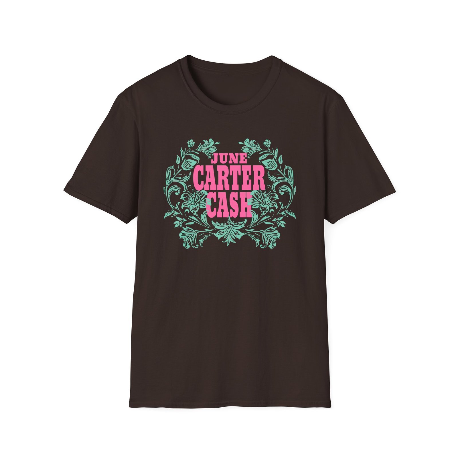 The Johnny Cash June Carter Cash Logo unisex soft-style t-shirt puts a new spin on casual comfort. Made from very soft materials, this tee is 100% cotton for solid colors. Heather colors and sports grey include polyester. The shoulders have twill tape for improved durability. There are no side seams. The collar is made with ribbed knitting to prevent curling damage.