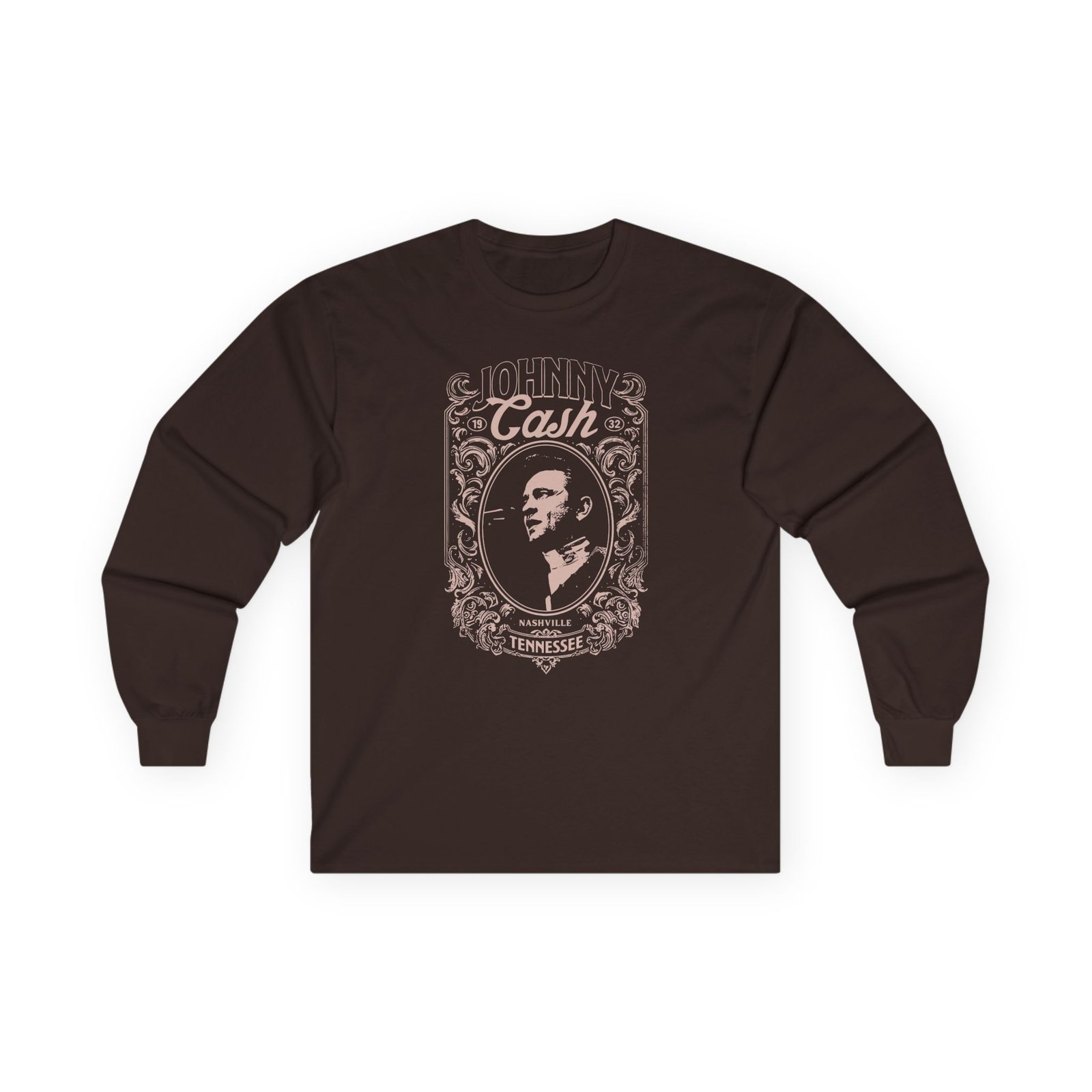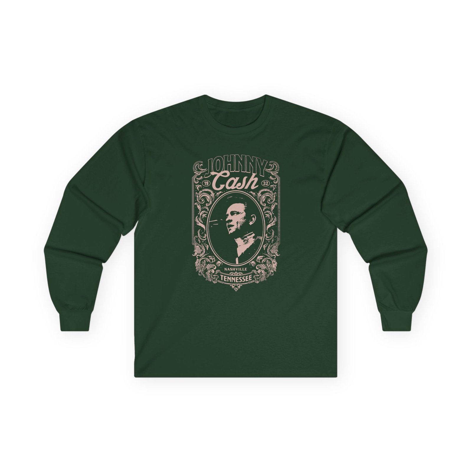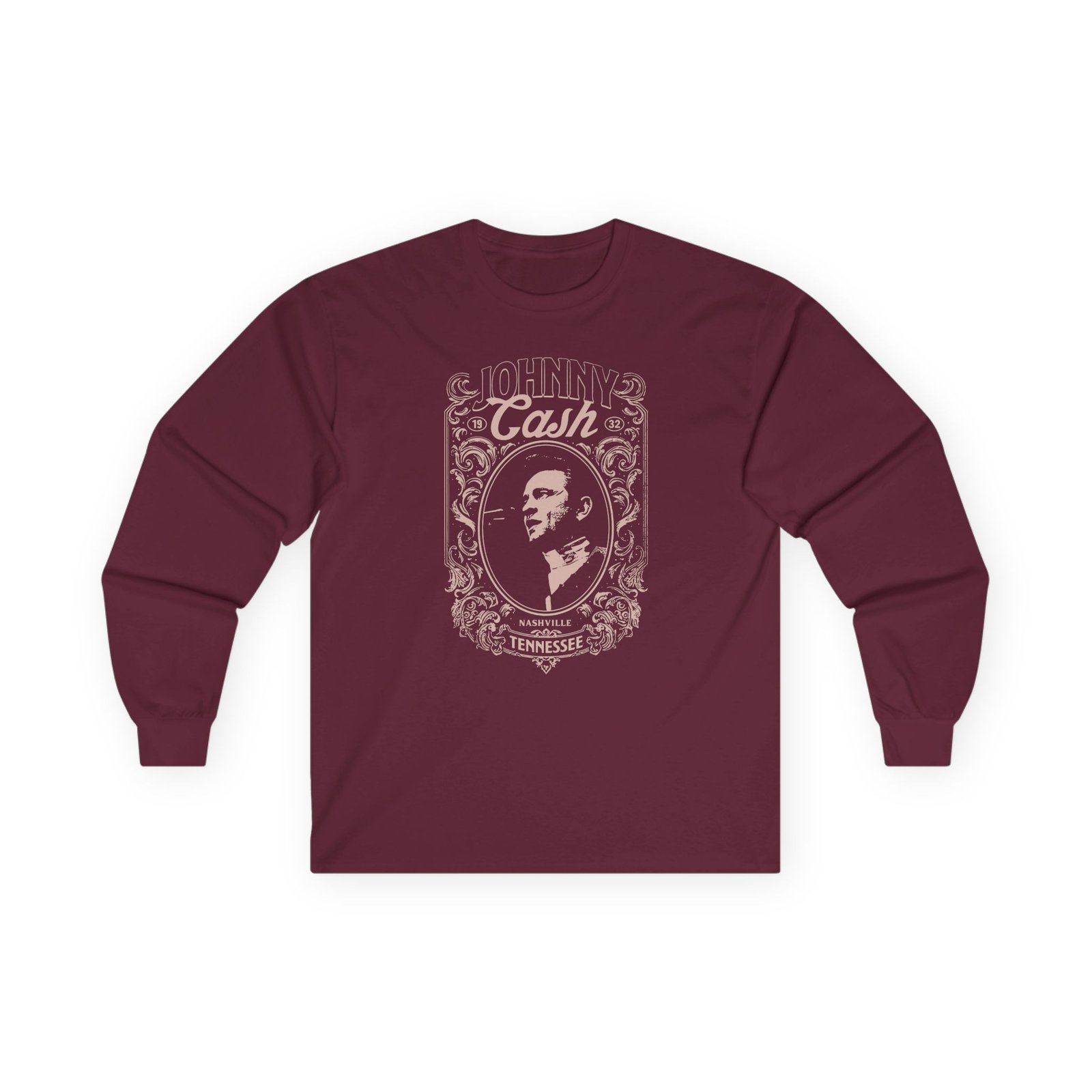 A bit more formal than a standard-issue t-shirt, the Johnny Cash Nashville Portrait ultra cotton long sleeve tee is a clear comfort winner. The sleeves also act as a nice frame. There are no side seams. The shoulders are taped for improved durability. This makes for a good fitting around the shoulders and neck. The cotton used for these shirts is environmentally friendly.