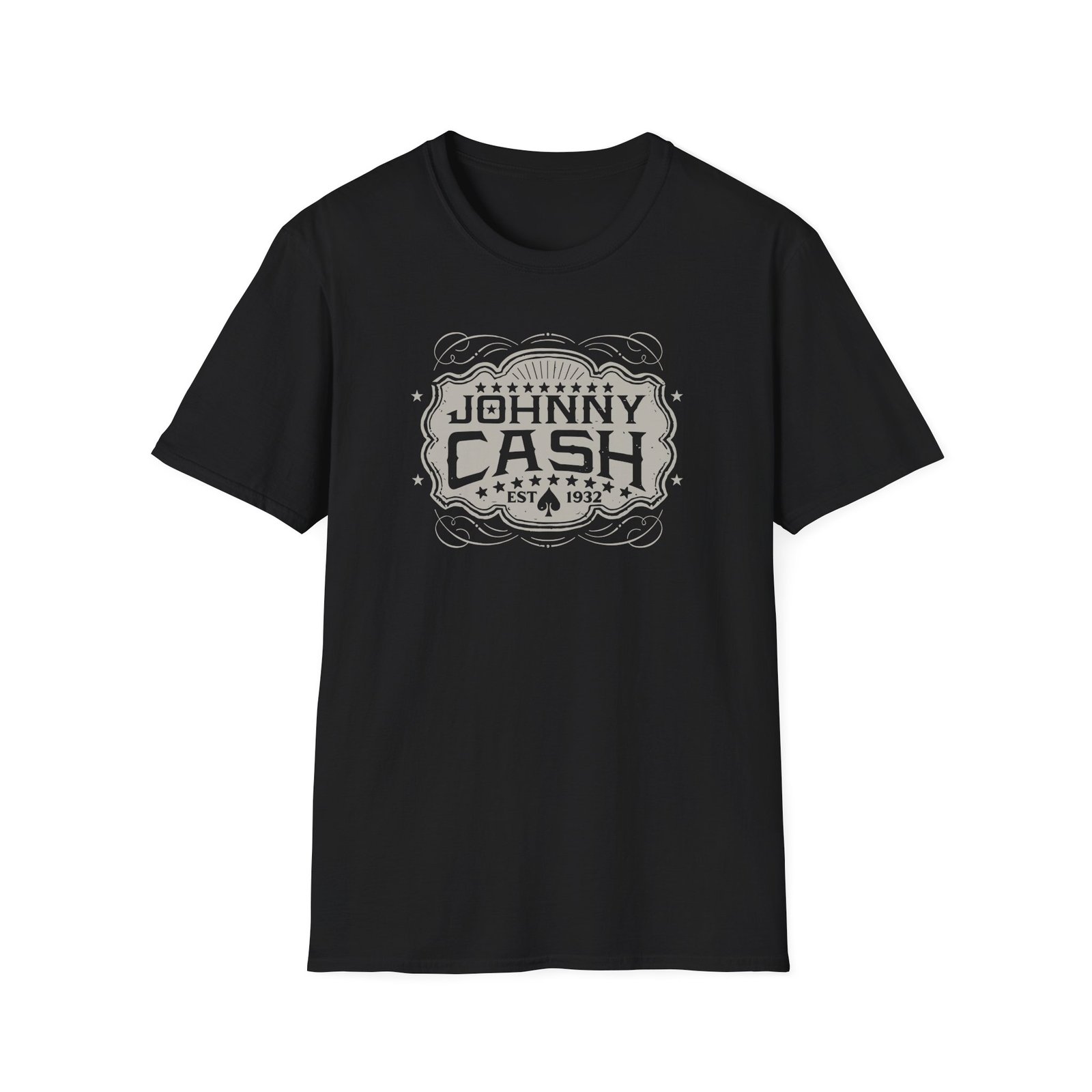 The Johnny Cash unisex soft-style t-shirt puts a new spin on casual comfort. Made from very soft materials, this tee is 100% cotton for solid colors. Heather colors and sports grey include polyester. The shoulders have twill tape for improved durability. There are no side seams. The collar is made with ribbed knitting to prevent curling damage.