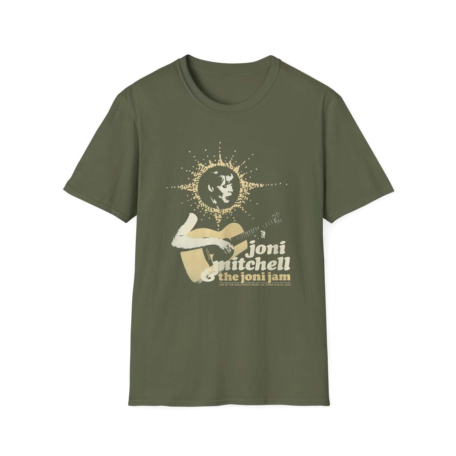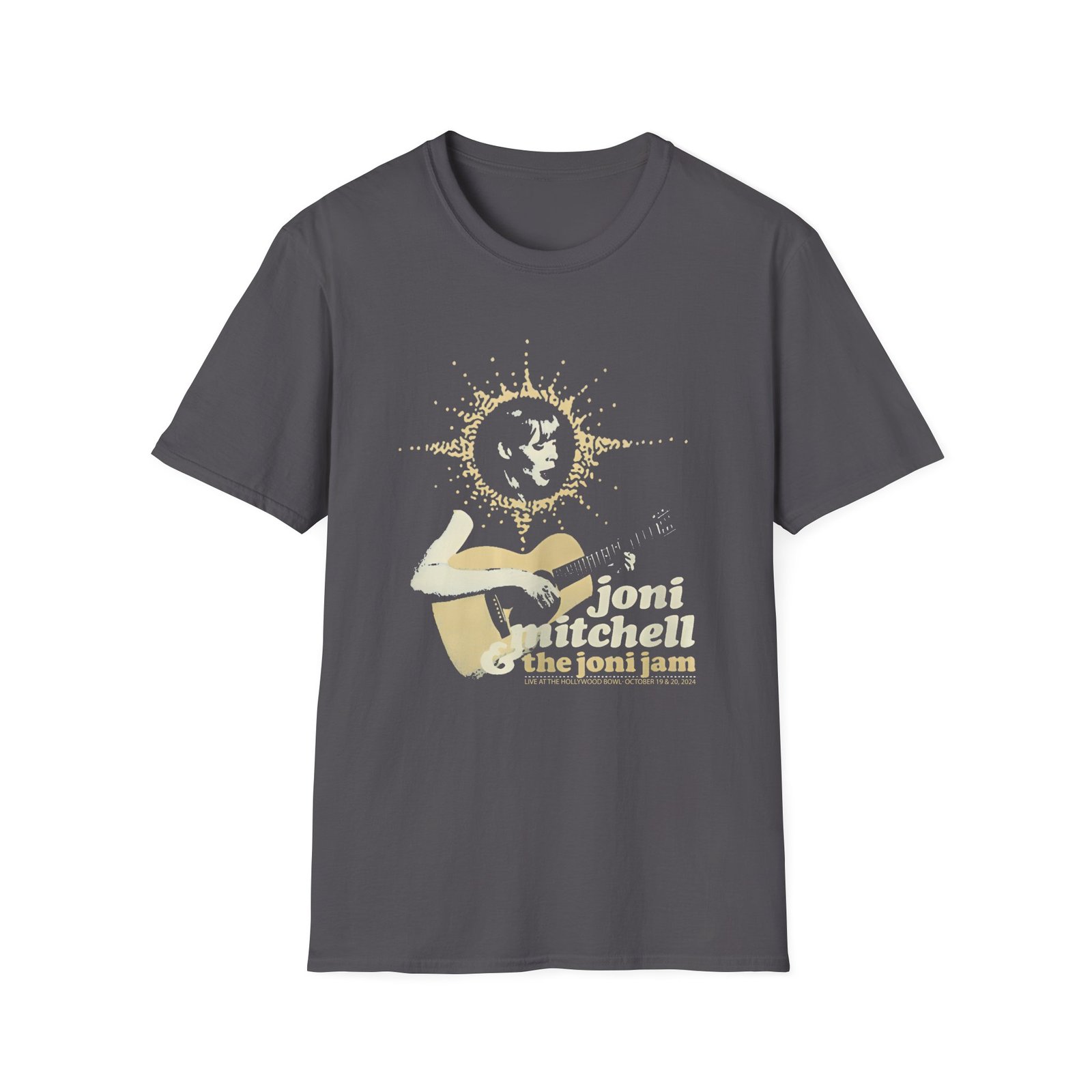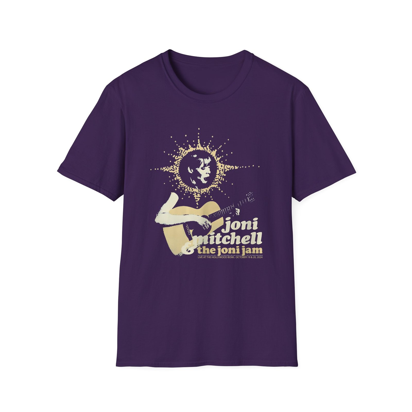 The Joni Mitchell Halo Joni unisex soft-style t-shirt puts a new spin on casual comfort. Made from very soft materials, this tee is 100% cotton for solid colors. Heather colors and sports grey include polyester. The shoulders have twill tape for improved durability. There are no side seams. The collar is made with ribbed knitting to prevent curling damage.