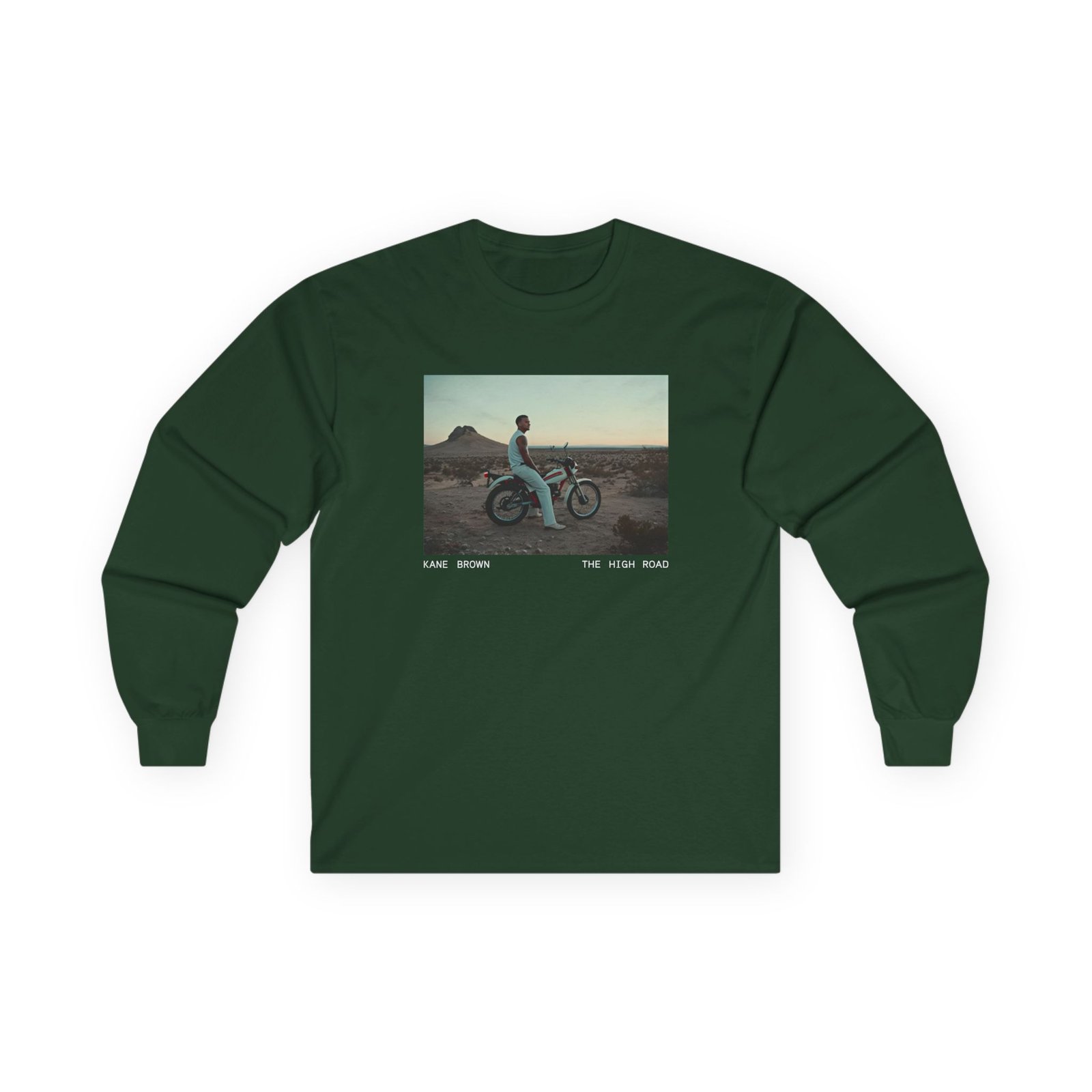 A bit more formal than a standard-issue t-shirt, the Kane Brown The High Road ultra cotton long sleeve tee is a clear comfort winner. The sleeves also act as a nice frame. There are no side seams. The shoulders are taped for improved durability. This makes for a good fitting around the shoulders and neck. The cotton used for these shirts is environmentally friendly.