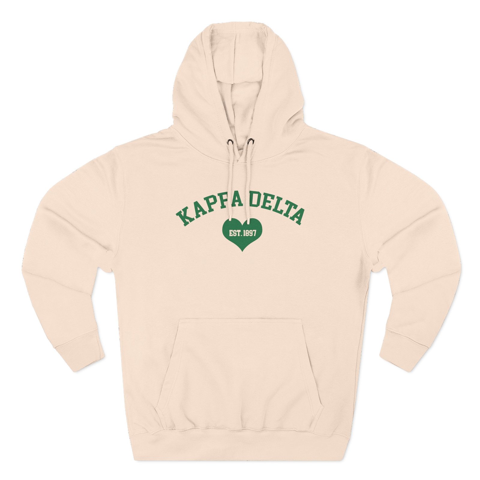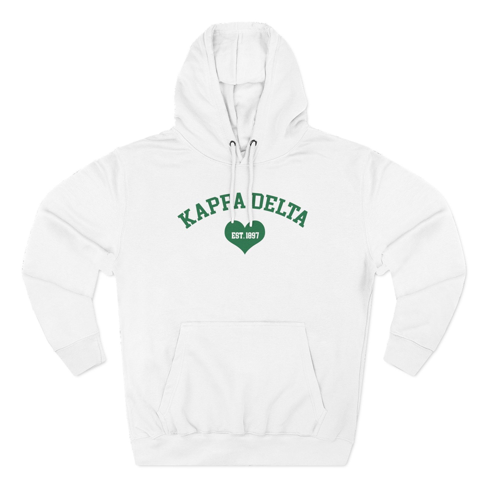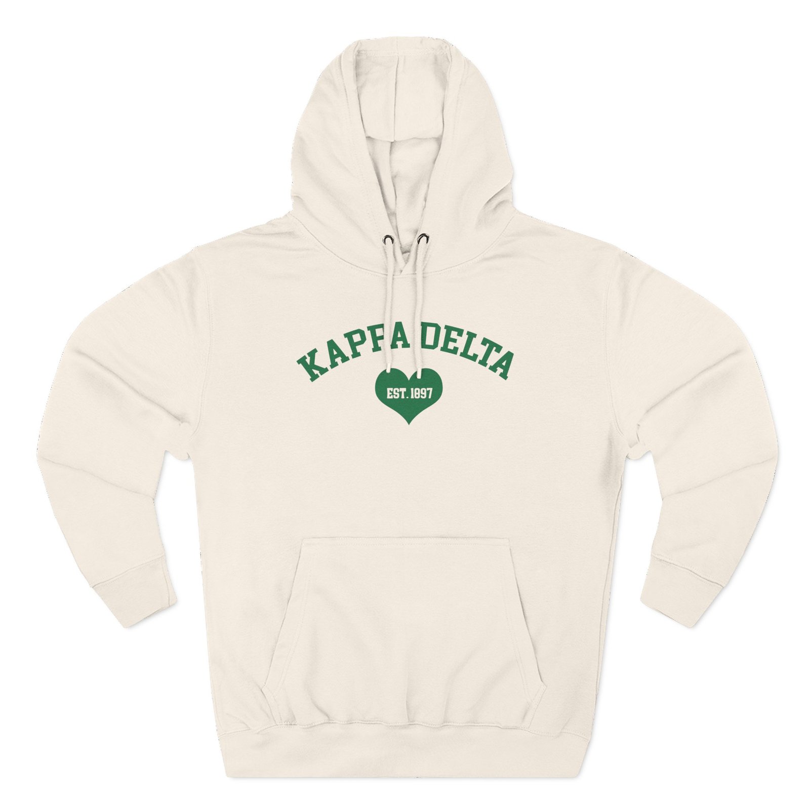 Beat the cold with this Kappa Delta premium pullover hoodie that’s just the right layer of warm and cozy. Made with three-panel fleece lining, this pullover is double stitched for durability and roomy. Pick one in your favorite color to match your style.