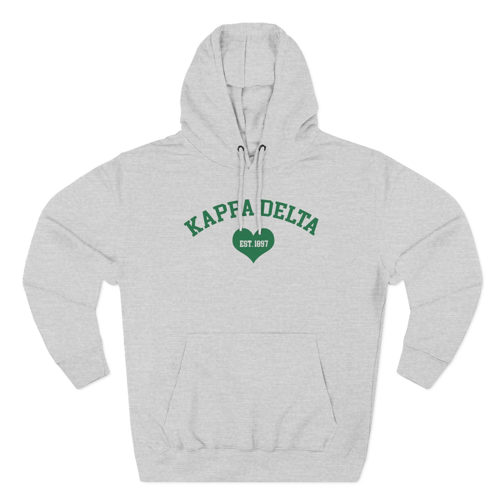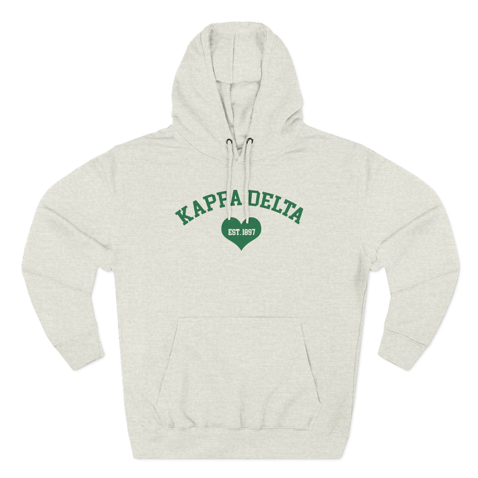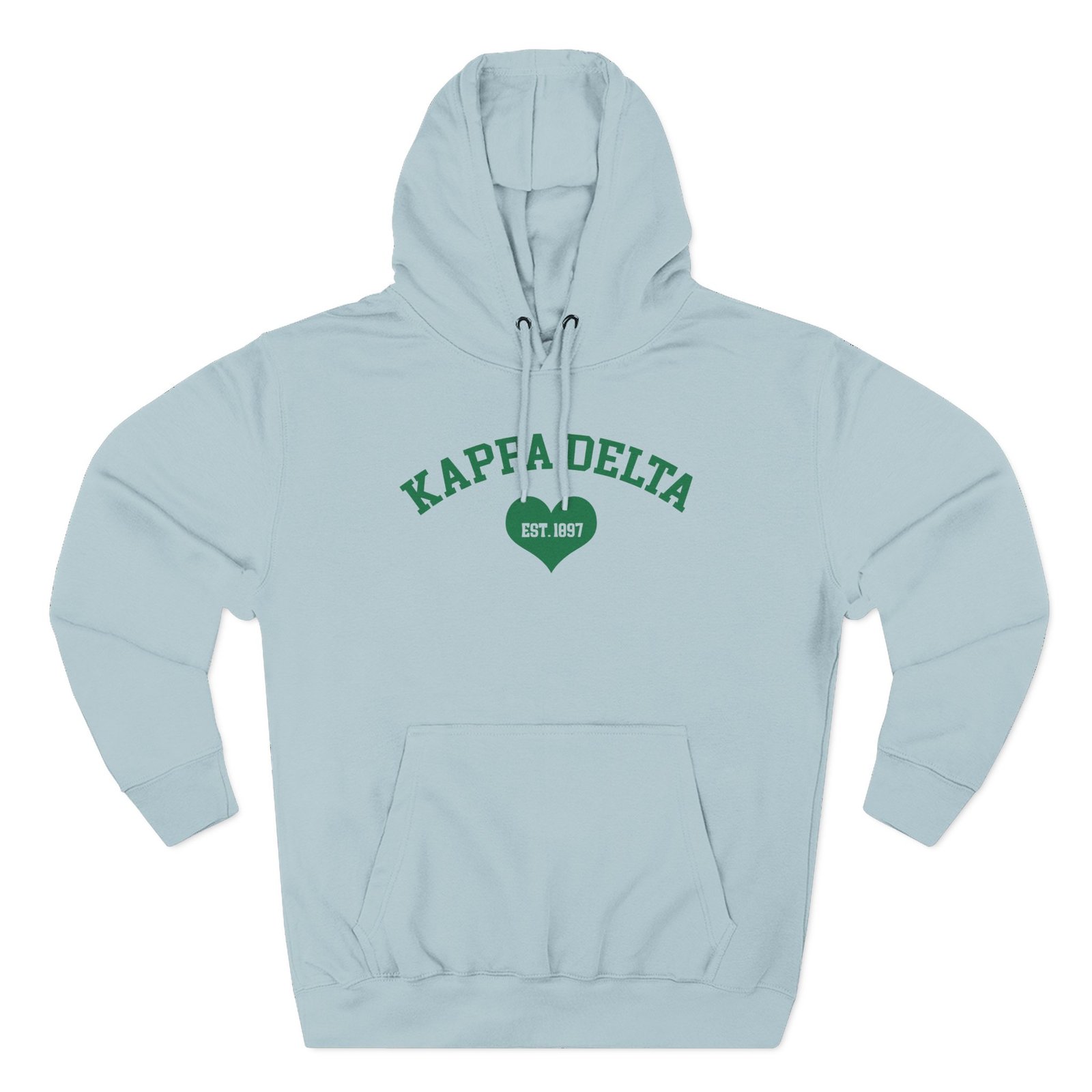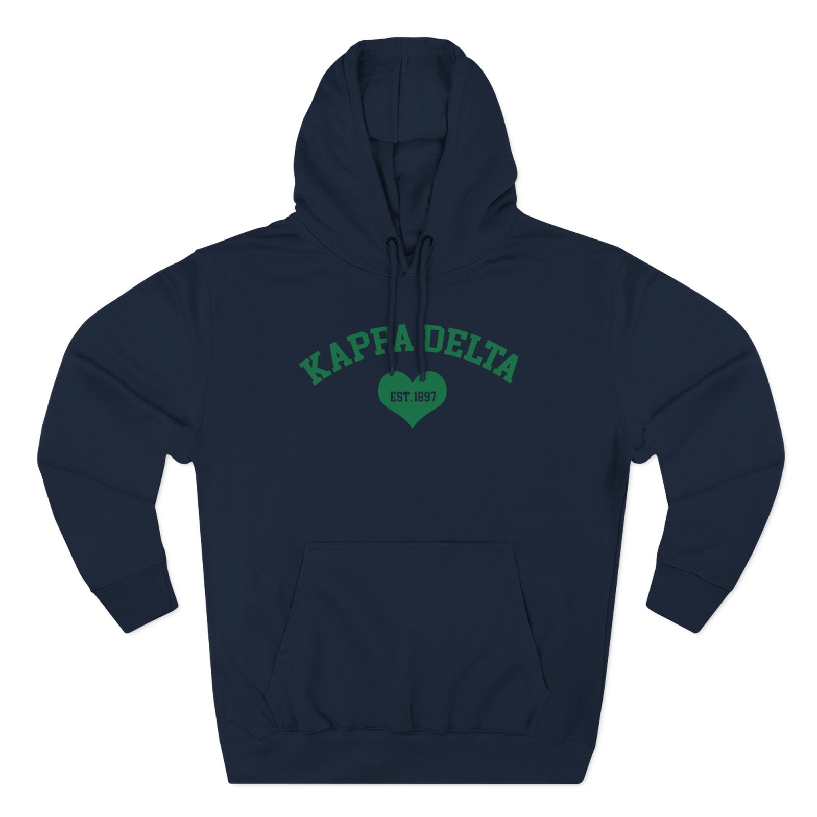 Beat the cold with this Kappa Delta premium pullover hoodie that’s just the right layer of warm and cozy. Made with three-panel fleece lining, this pullover is double stitched for durability and roomy. Pick one in your favorite color to match your style.
