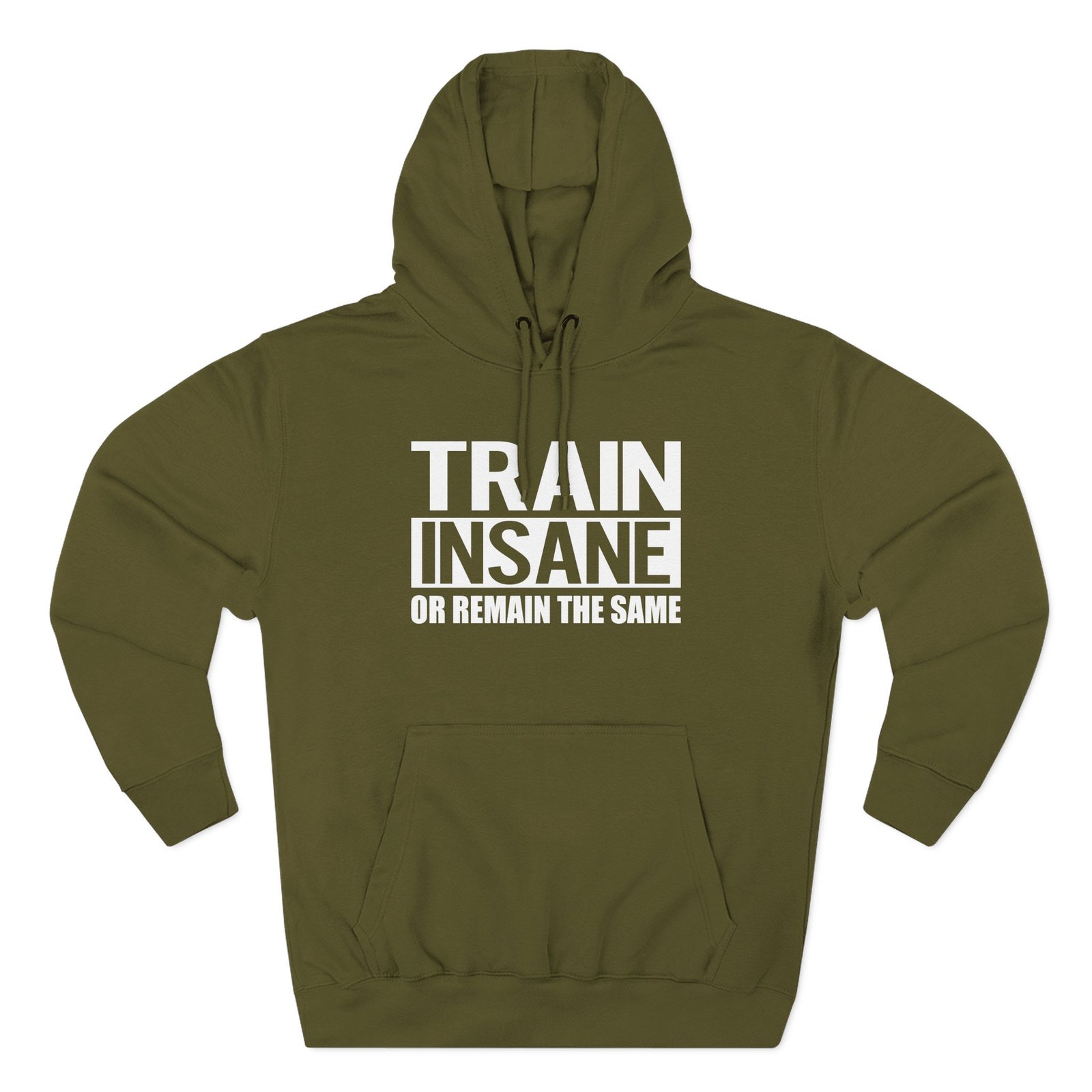 Beat the cold with this Karlos Benda Train Insane or Remain the Same premium pullover hoodie that’s just the right layer of warm and cozy. Made with three-panel fleece lining, this pullover is double stitched for durability and roomy. Pick one in your favorite color to match your style.